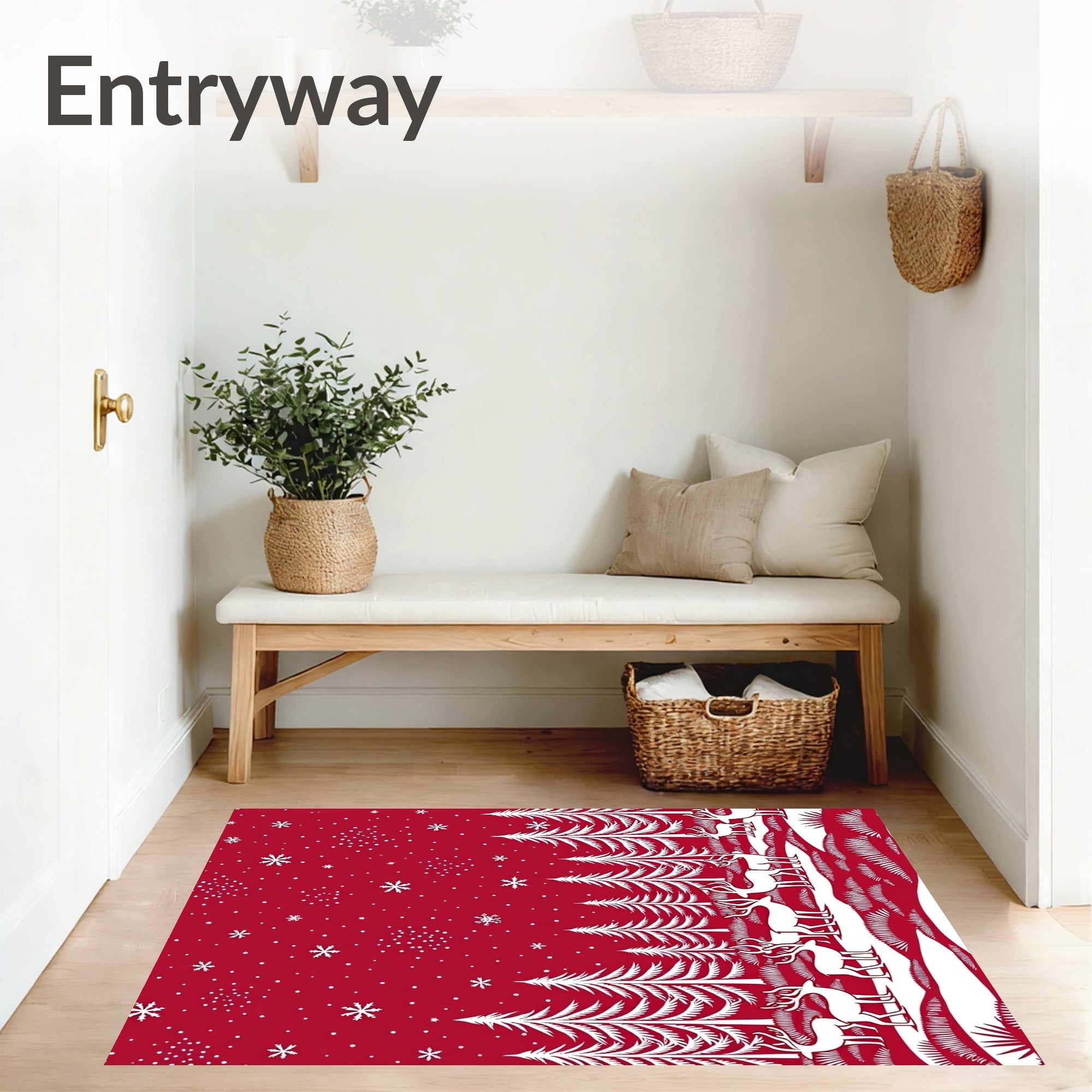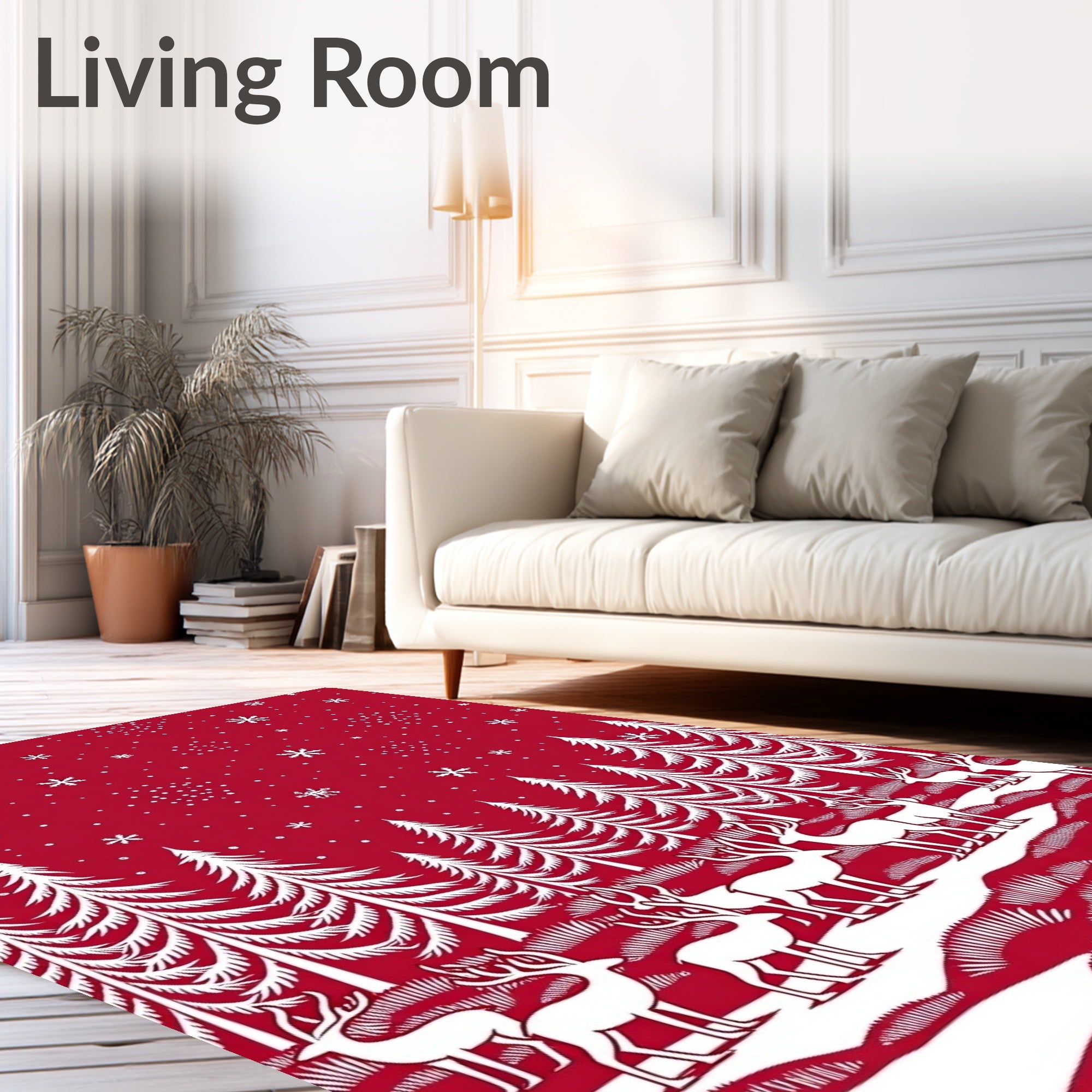 Ultra Soft Area Rug, Non Slip, Stain Resistant, Washable Area Rugs for Living Room, Bedroom, North Pole Woodland Creature Seasonal Accent(Red) Overview: