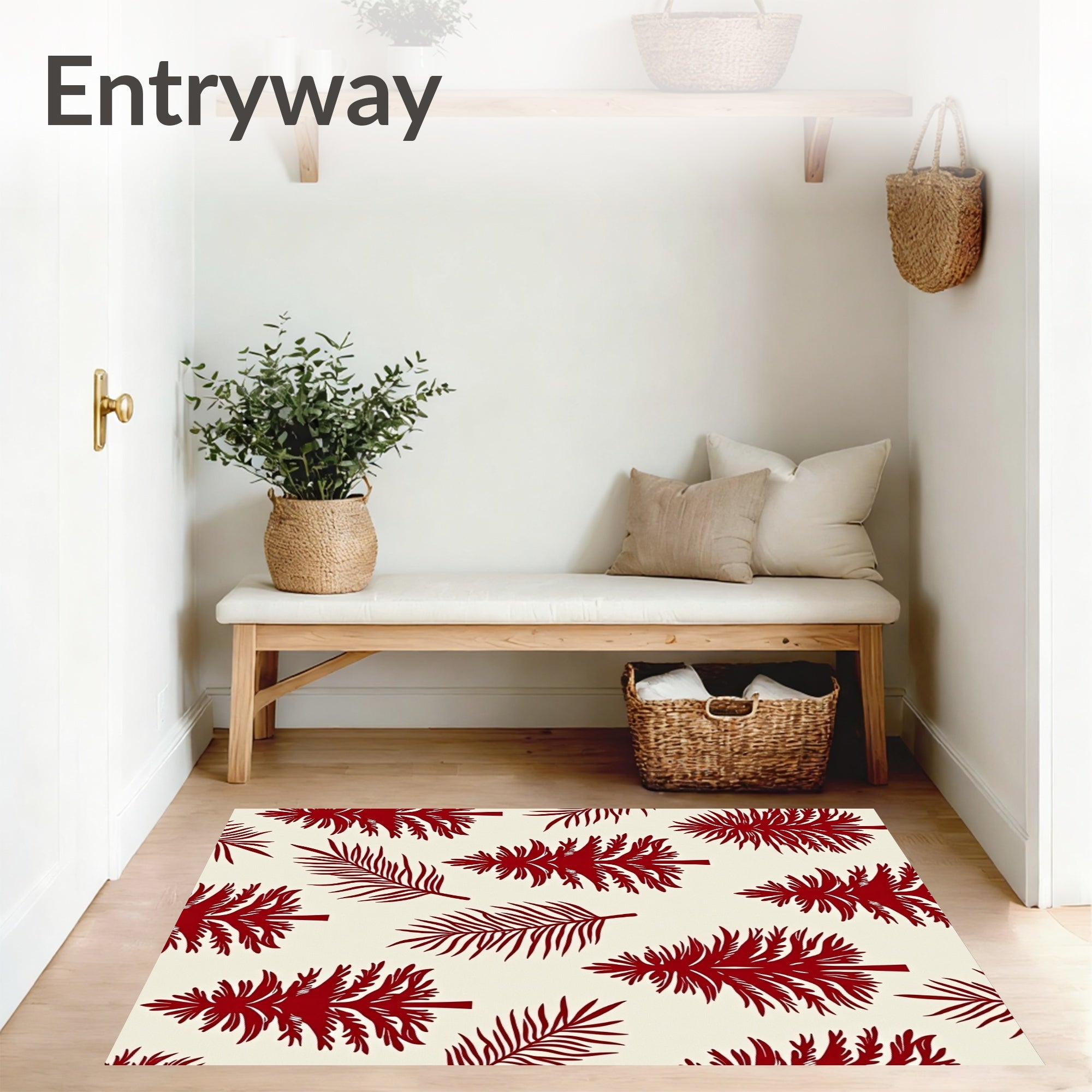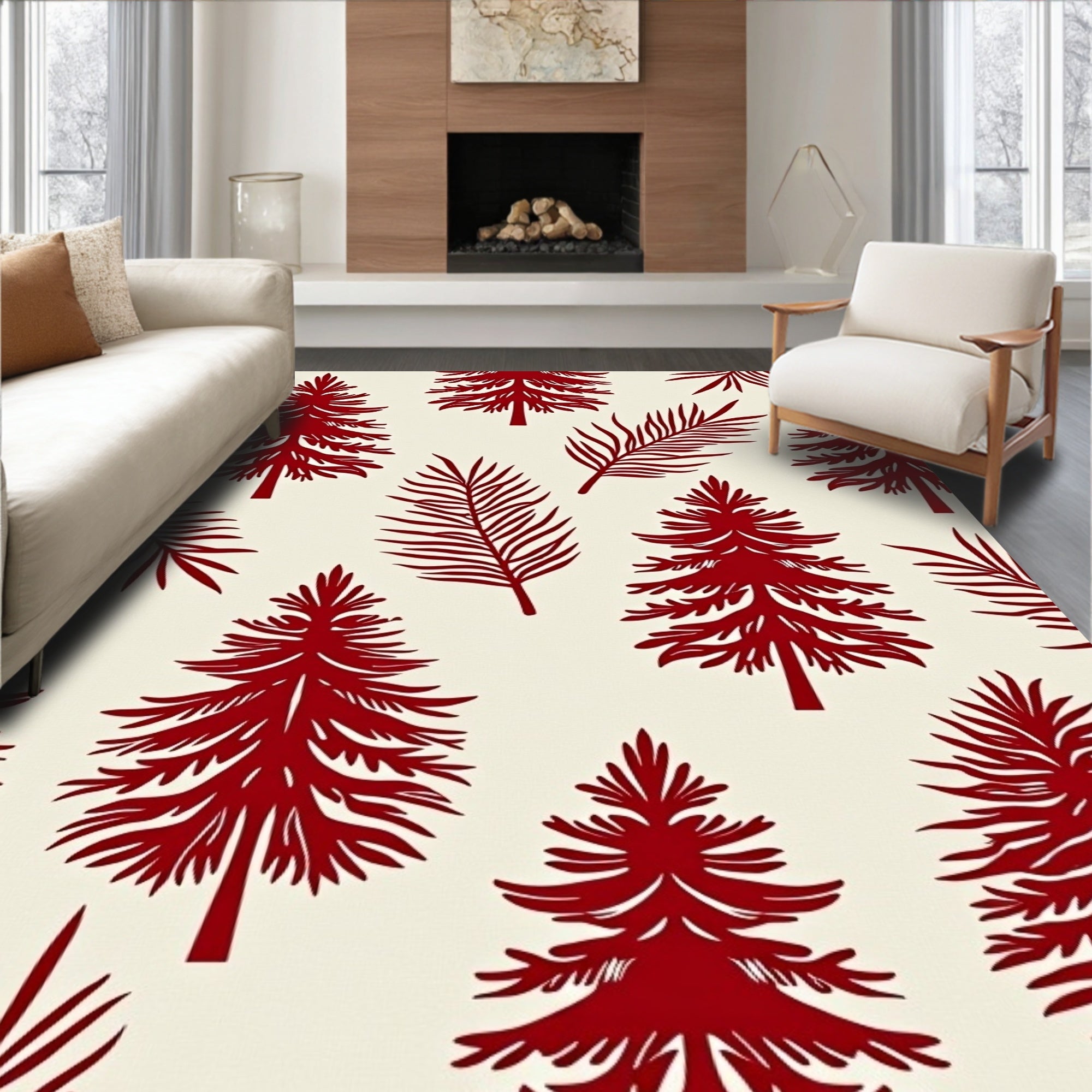 Ultra Soft Area Rug, Non Slip, Stain Resistant, Washable Area Rugs for Living Room, Bedroom, North Winter Celebration Pathway Adornment(Red) Overview:
