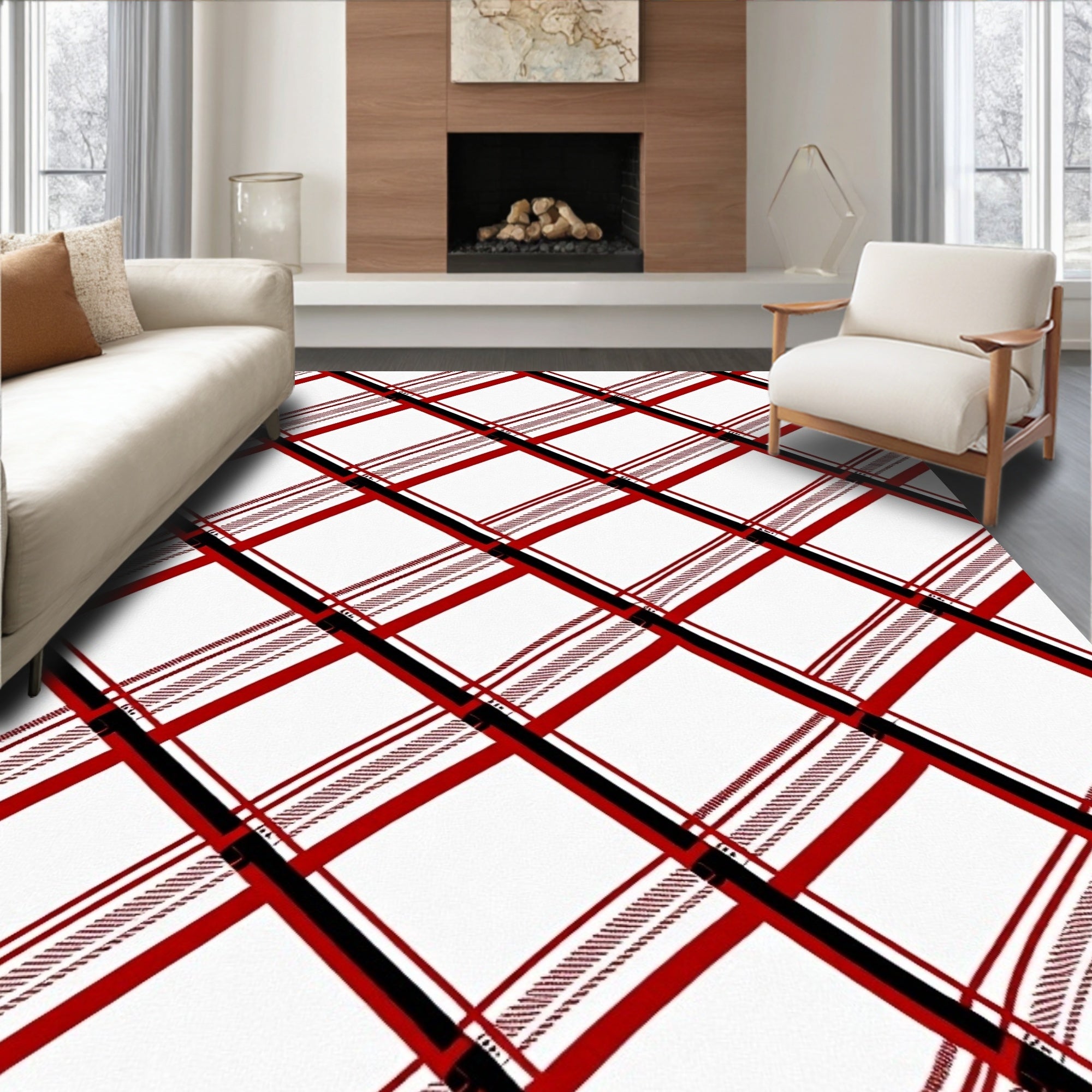 Ultra Soft Area Rug, Non Slip, Stain Resistant, Washable Area Rugs for Living Room, Bedroom, North Woods Cabin Plaid(Red) Overview: