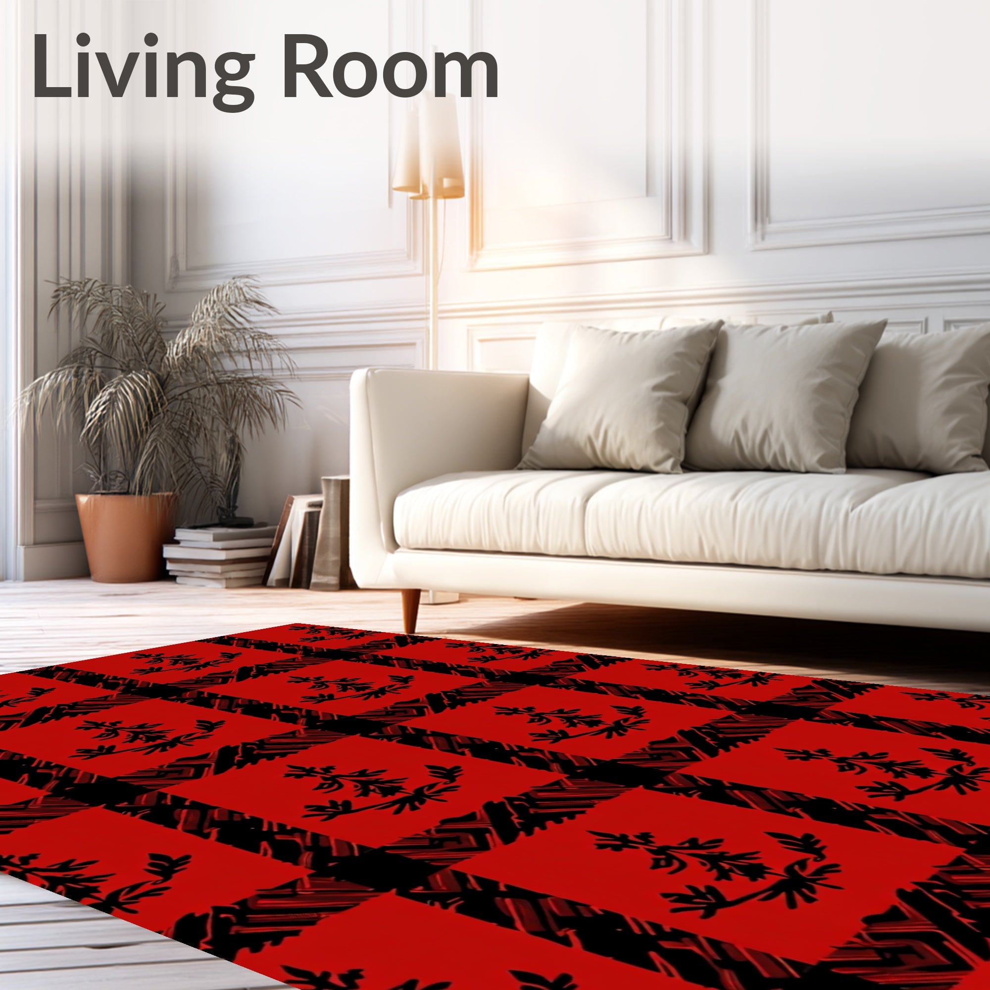 Ultra Soft Area Rug, Non Slip, Stain Resistant, Washable Area Rugs for Living Room, Bedroom, North Woods Lumberjack Plaid Seasonal Welcome Statement(Red) Overview: