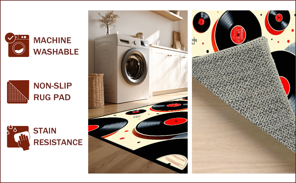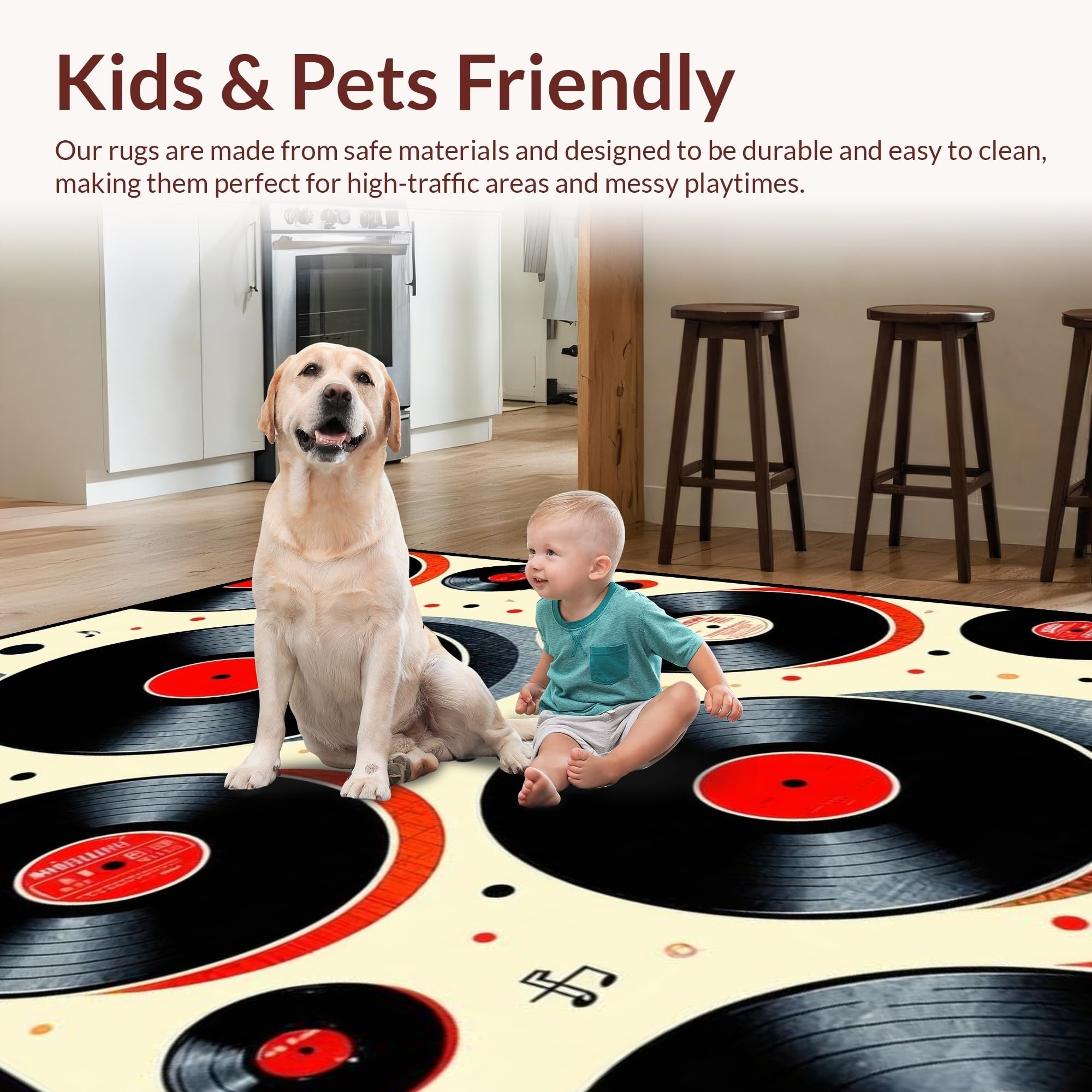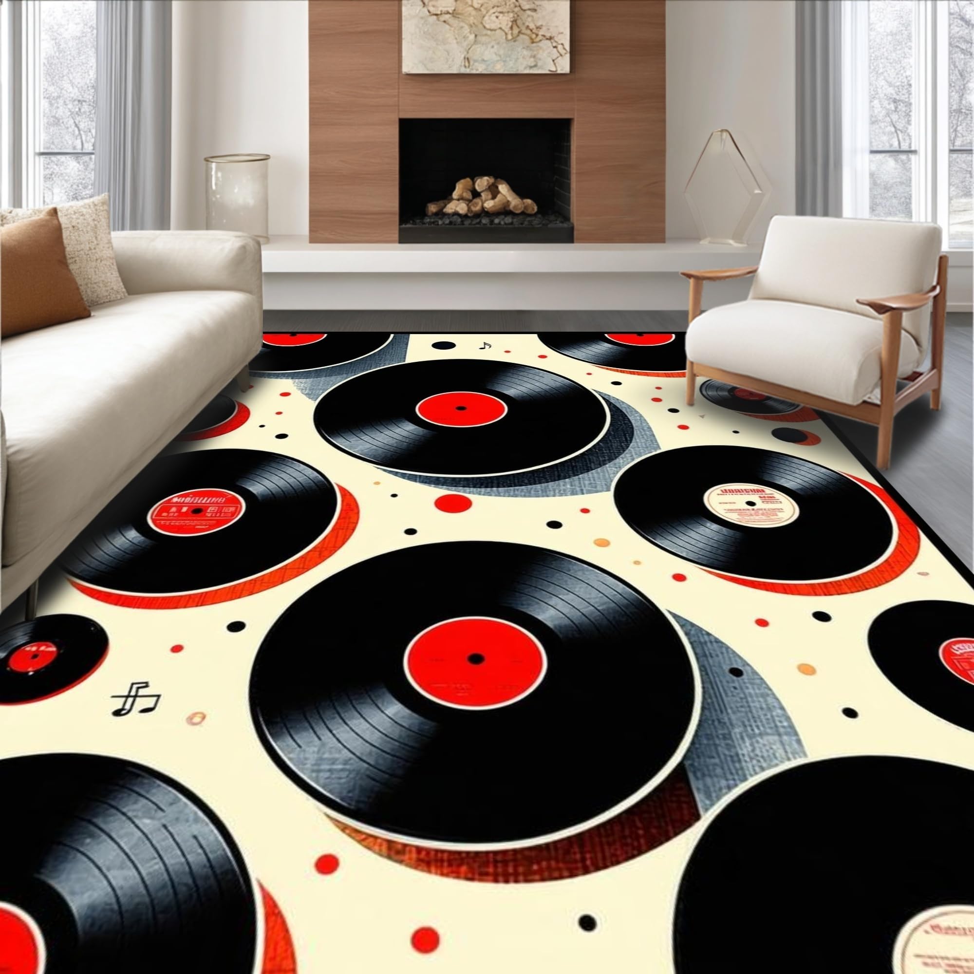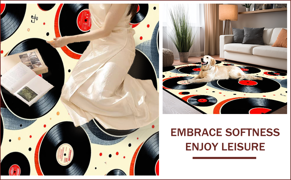 Ultra Soft Area Rug, Non Slip, Stain Resistant, Washable Area Rugs for Living Room, Bedroom, Nostalgic 80s Music Aesthetic(Black) Overview: