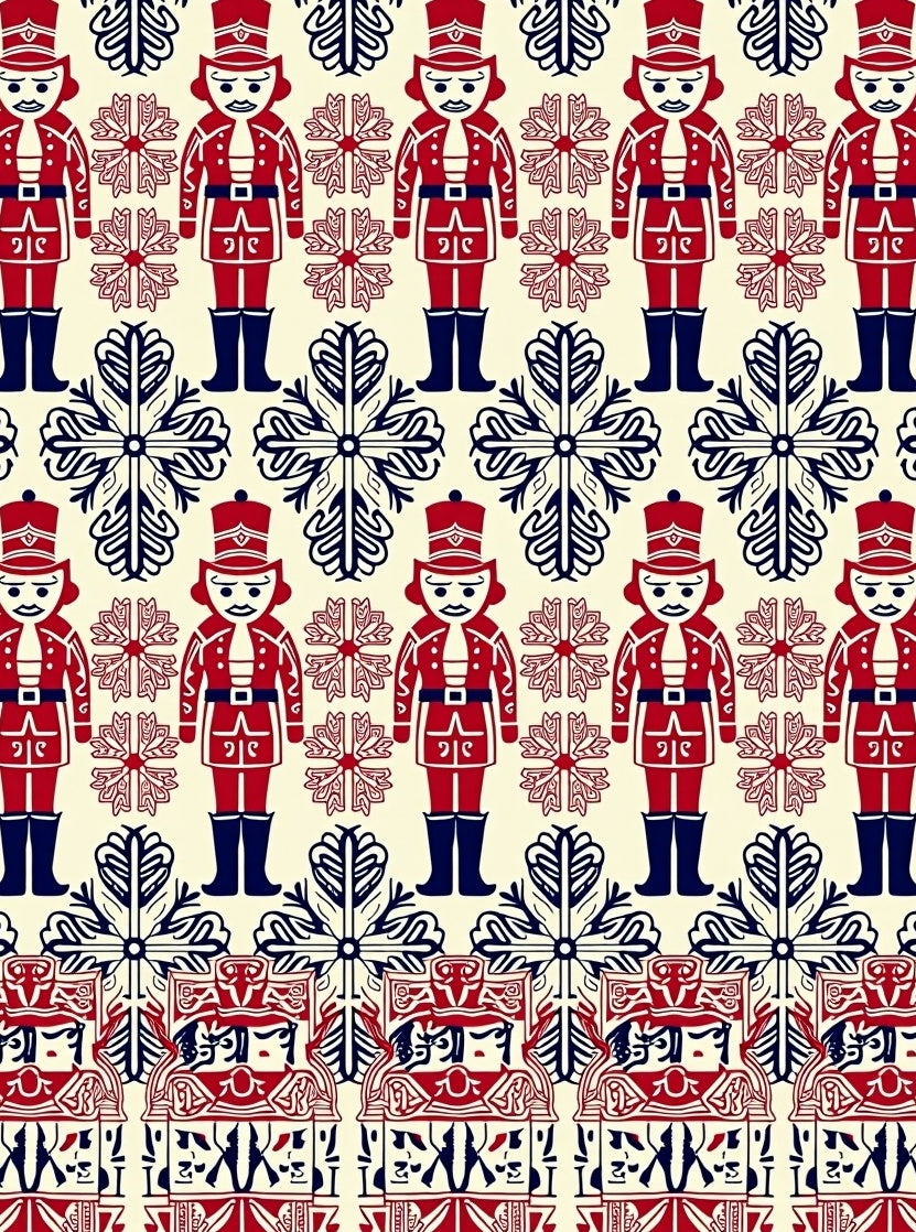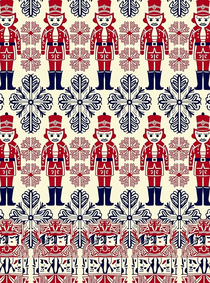 Nutcracker Wonderland with Interlocking Snowflake and Festive Soldier Designs(Red)