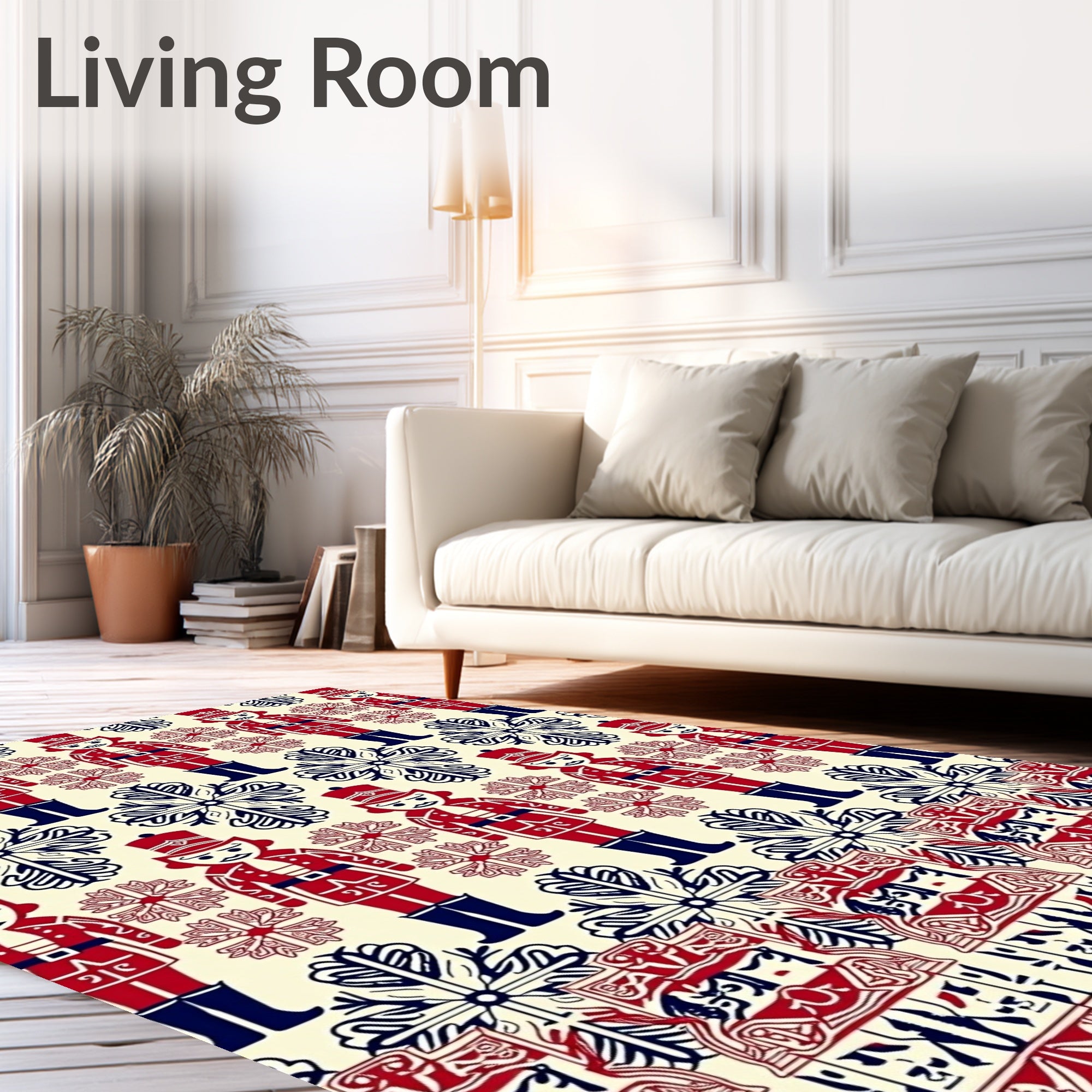 Ultra Soft Area Rug, Non Slip, Stain Resistant, Washable Area Rugs for Living Room, Bedroom, Nutcracker Wonderland with Interlocking Snowflake and Festive Soldier Designs(Red) Overview: