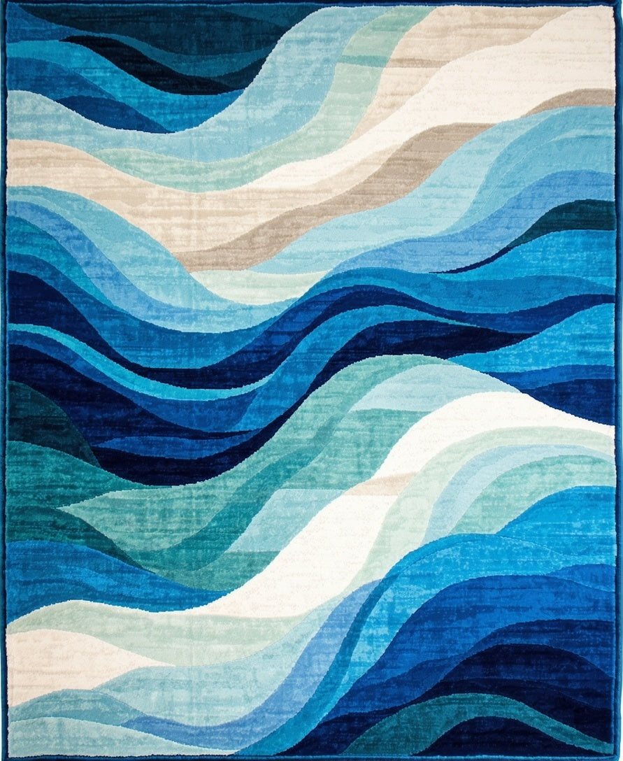 Ocean Breeze Area Rug with Fluid Wave Design and Deep Blue Accents(Blue)