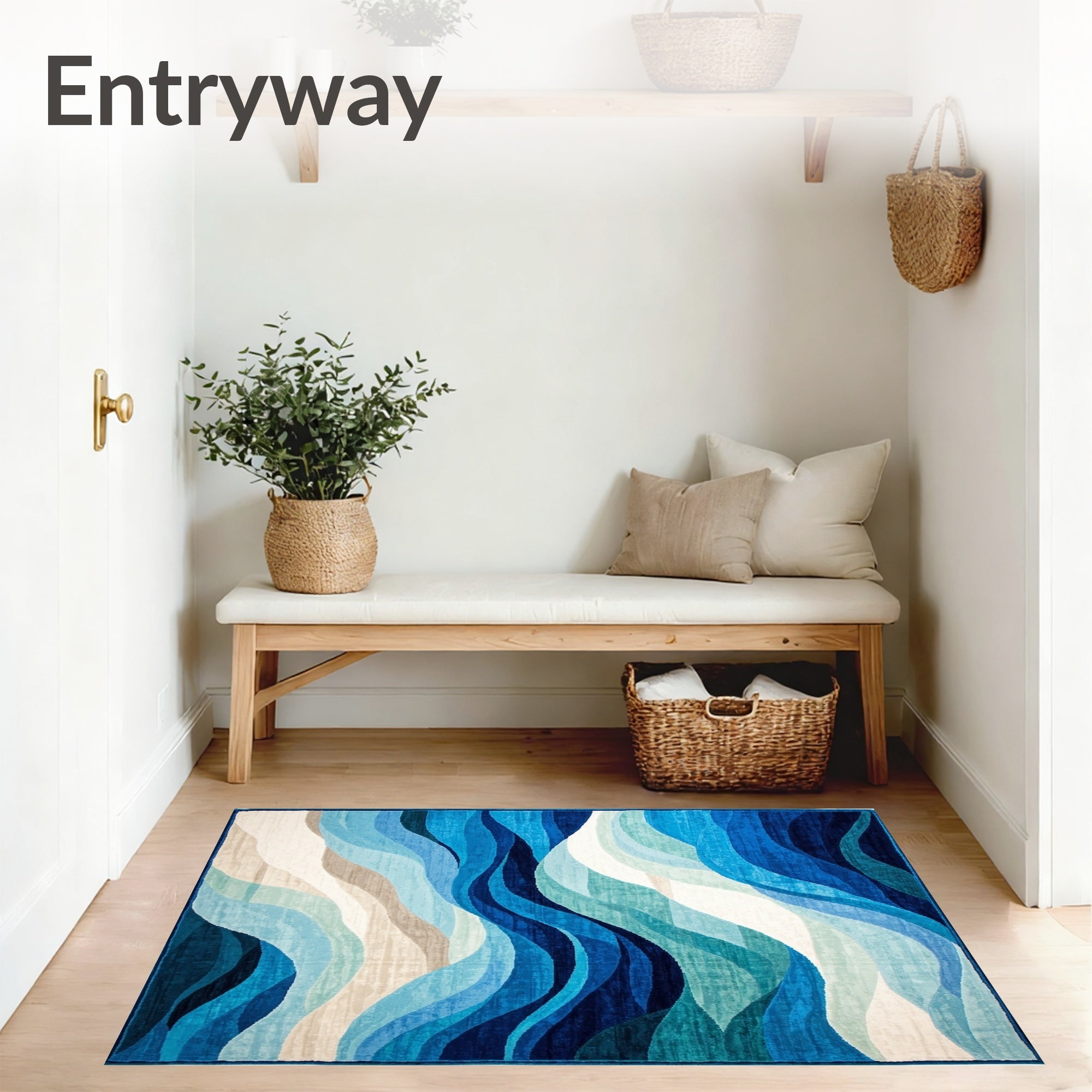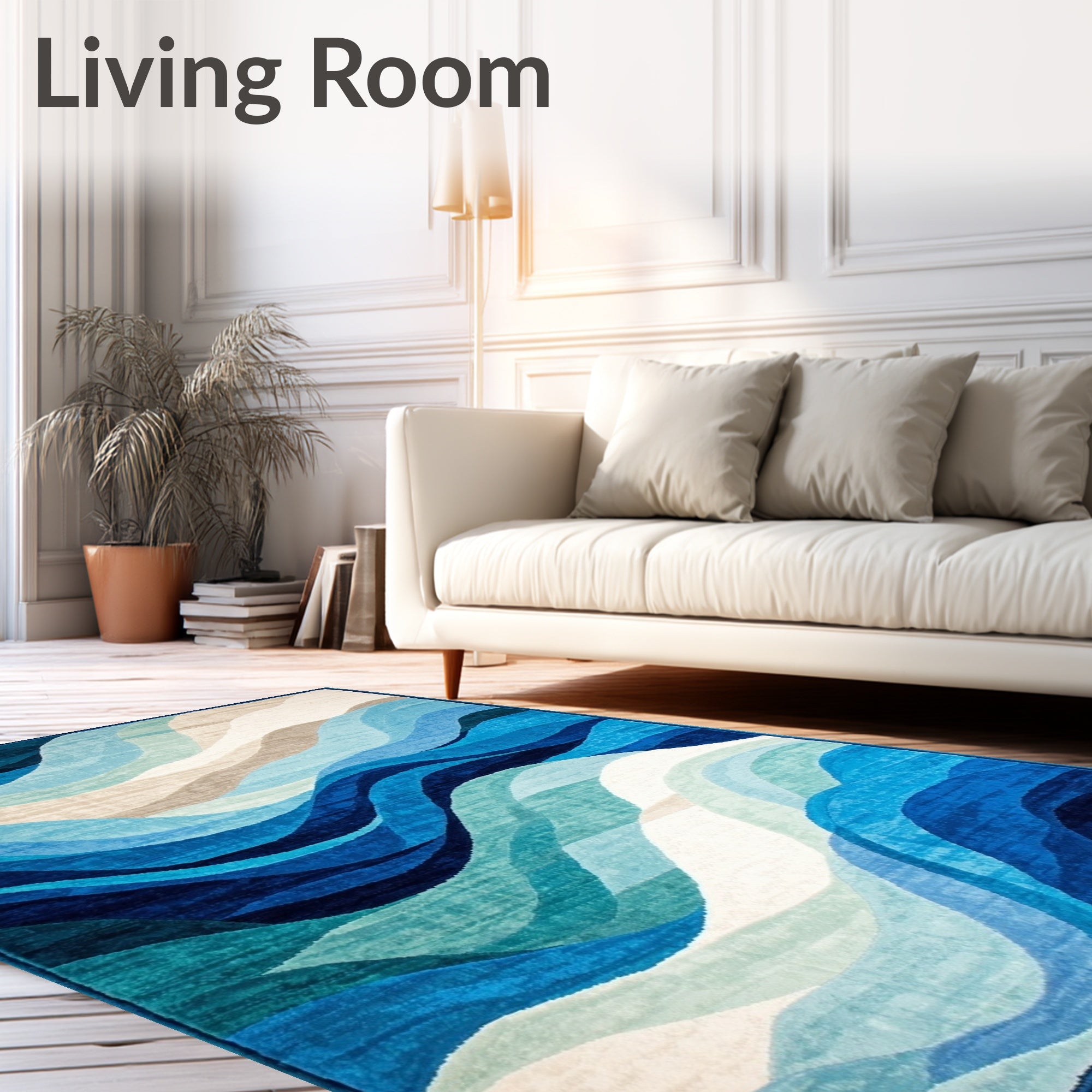 Ultra Soft Area Rug, Non Slip, Stain Resistant, Washable Area Rugs for Living Room, Bedroom, Ocean Breeze Area Rug with Fluid Wave Design and Deep Blue Accents(Blue) Overview: