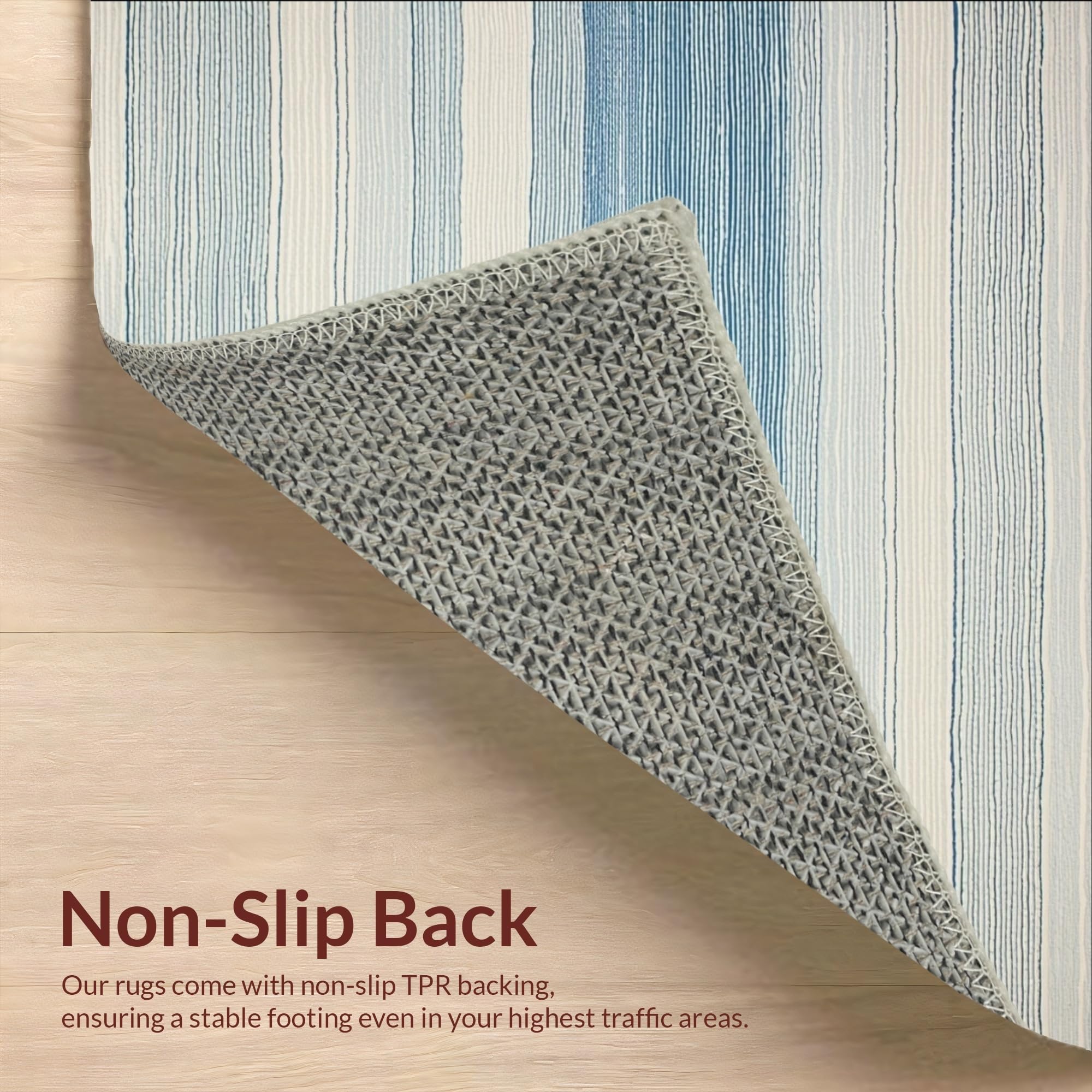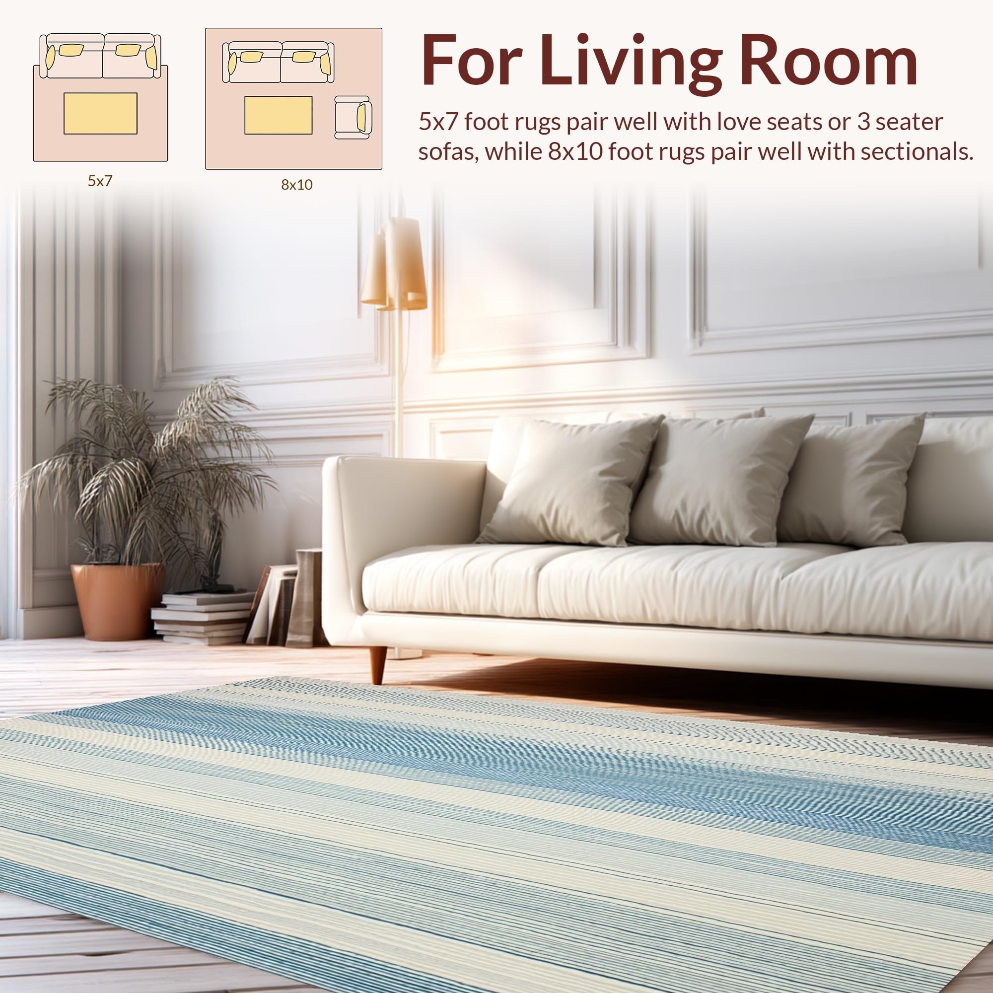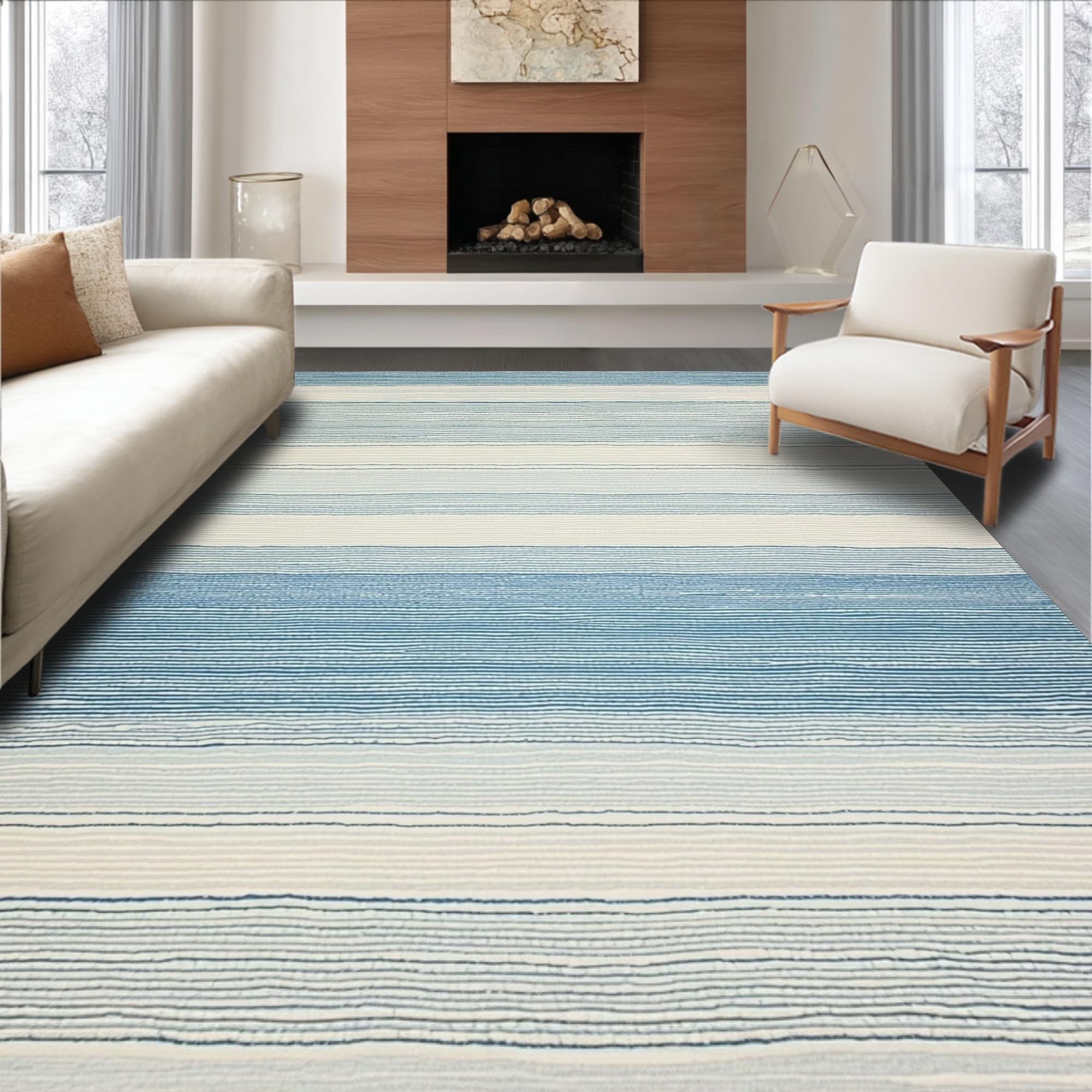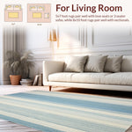 Ultra Soft Area Rug, Non Slip, Stain Resistant, Washable Area Rugs for Living Room, Bedroom, Ocean Breeze Striped Patio Easy Care Design(Blue) Overview: