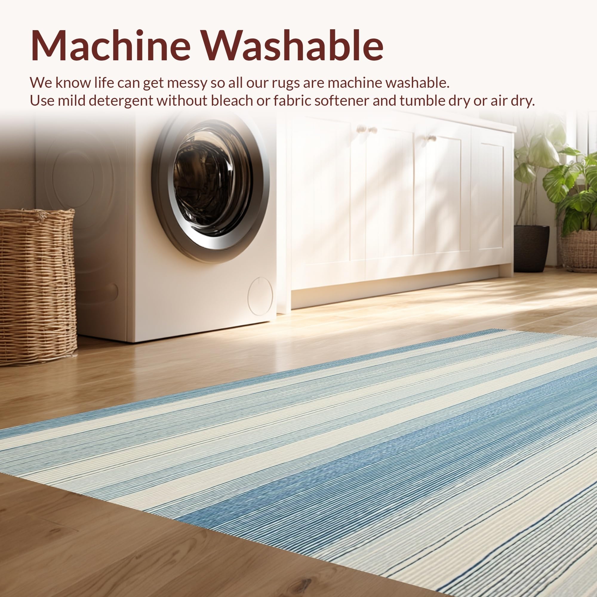 - Machine Washable: Our rugs can be easily thrown in the wash machine.