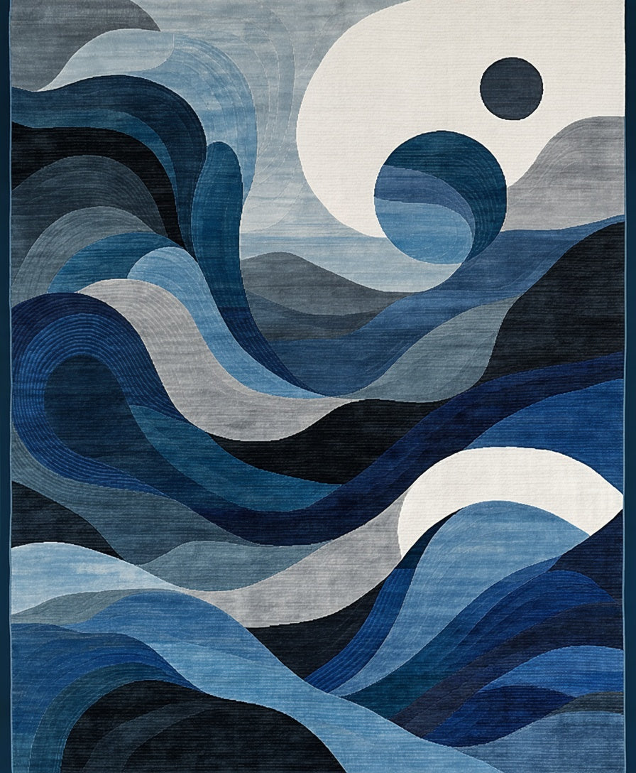 Ocean Current Abstract Rug Charcoal Navy Blue(Blue)