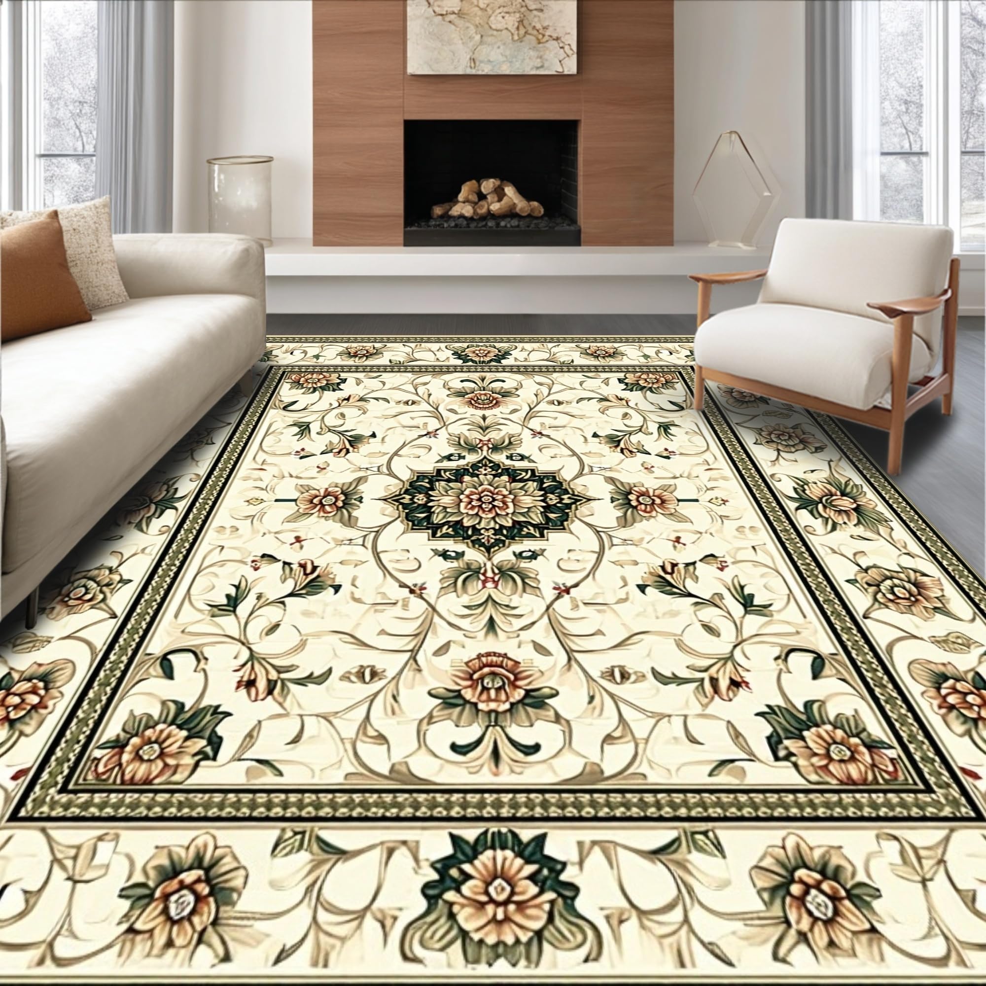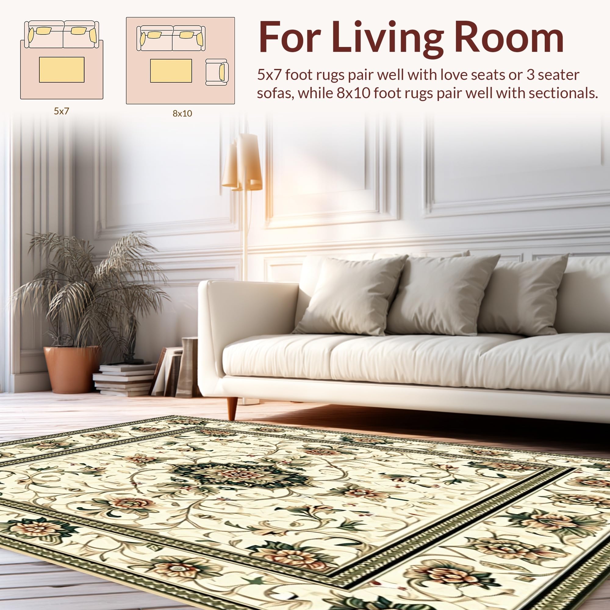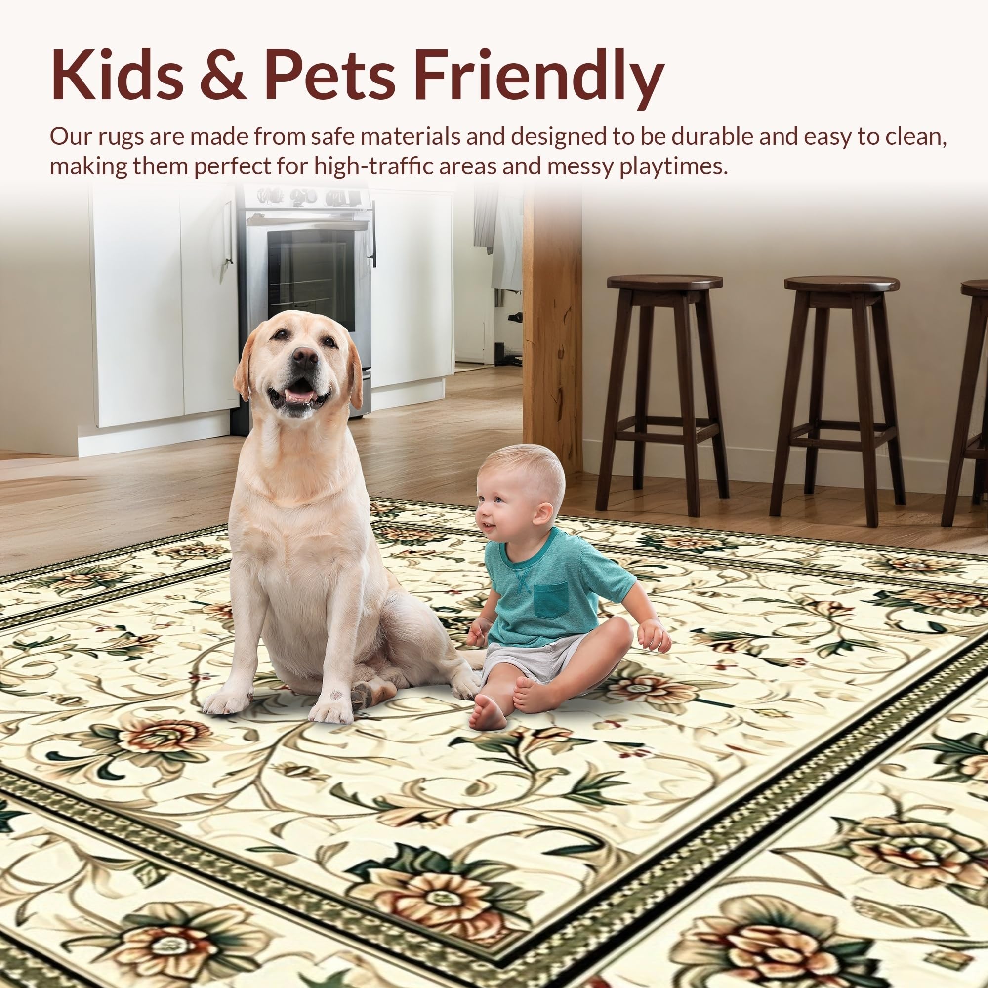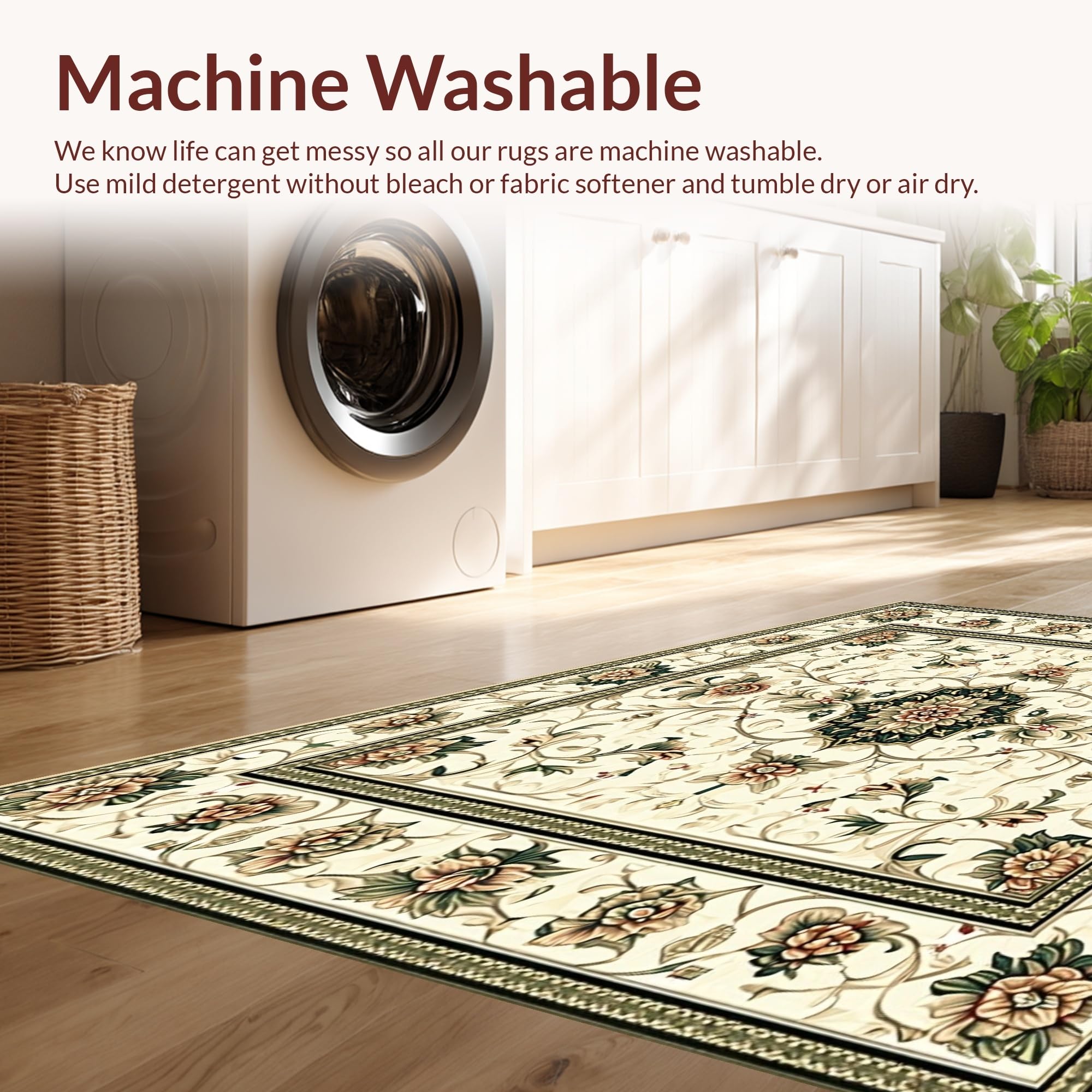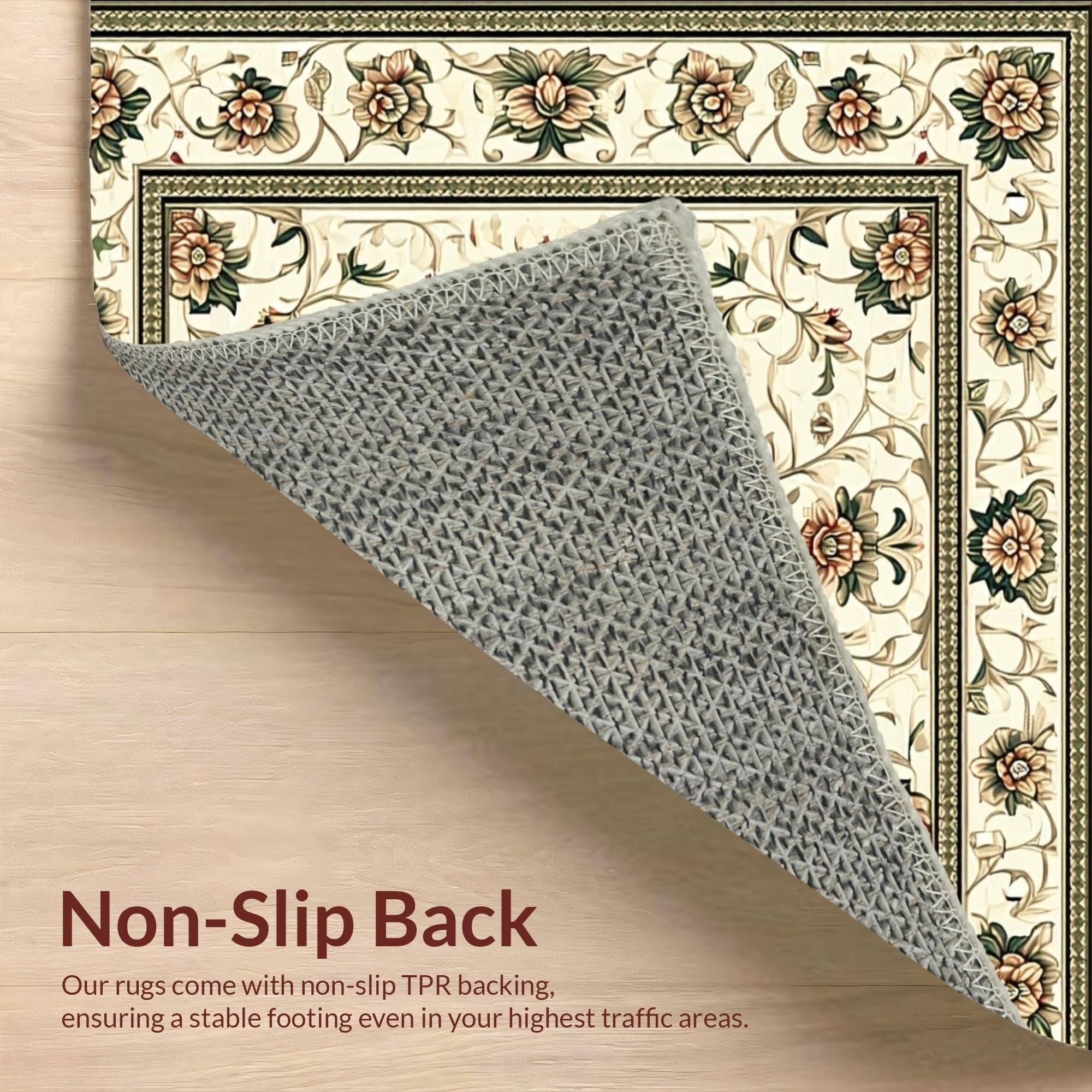 Ultra Soft Area Rug, Non Slip, Stain Resistant, Washable Area Rugs for Living Room, Bedroom, Olive and Beige with Timeless Decorative Floral(Beige) Overview: