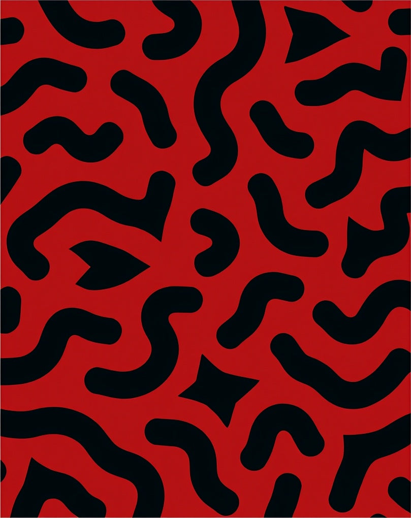 Opulent Abstract Animal Inspired Design with Rich Crimson and Ebony Tones(Red)