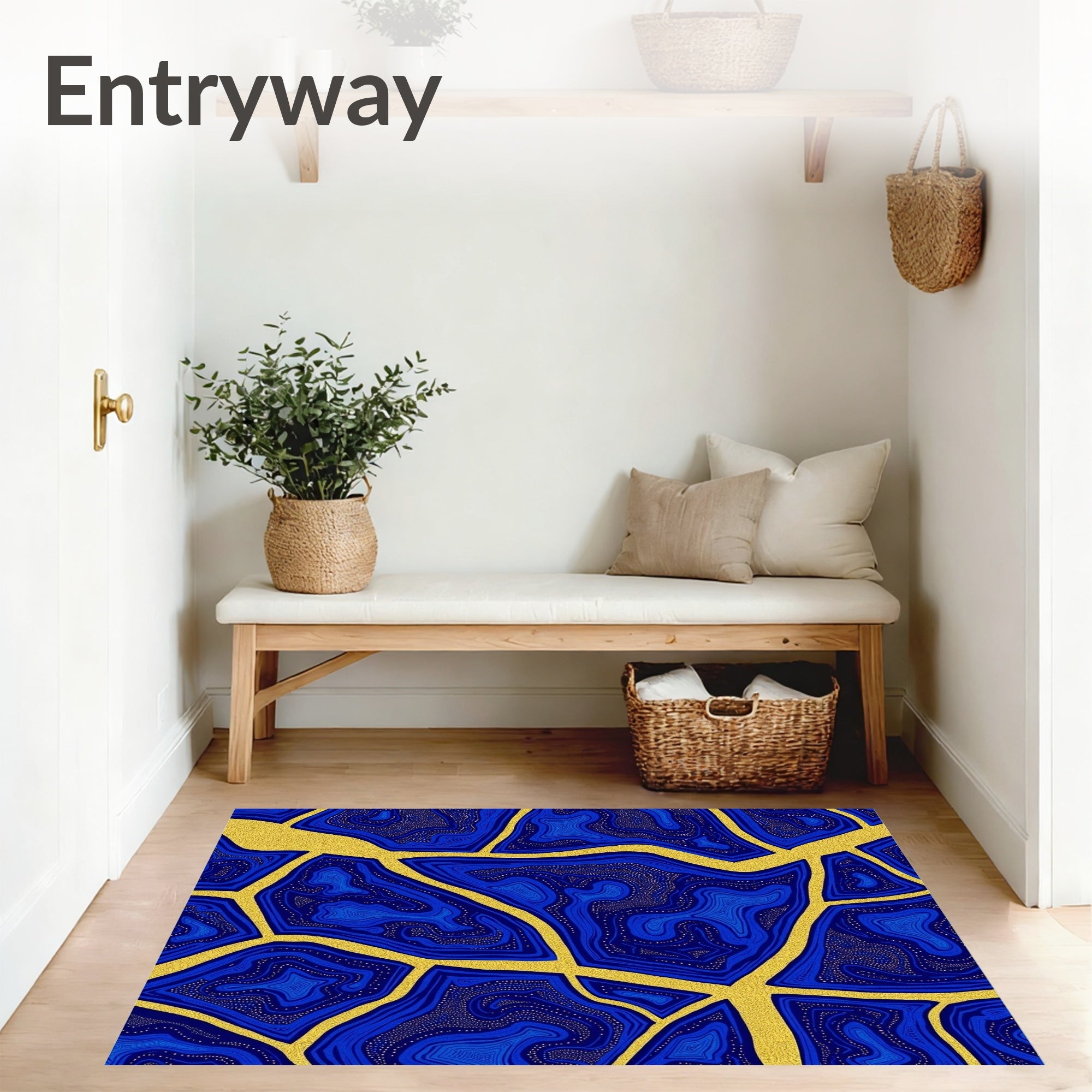 Ultra Soft Area Rug, Non Slip, Stain Resistant, Washable Area Rugs for Living Room, Bedroom, Opulent Crystalline Formation Abstract Art Design Accent(Blue) Overview: