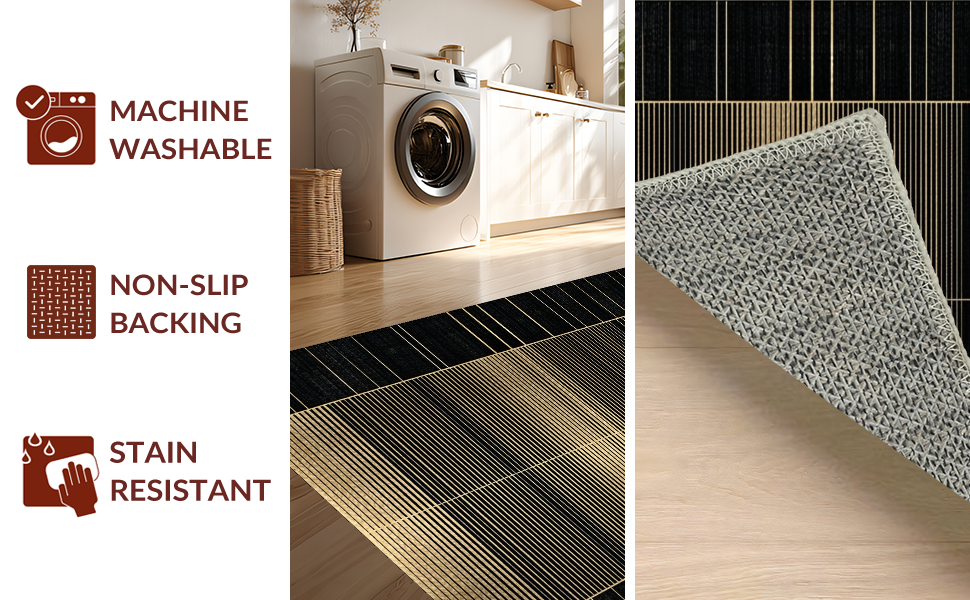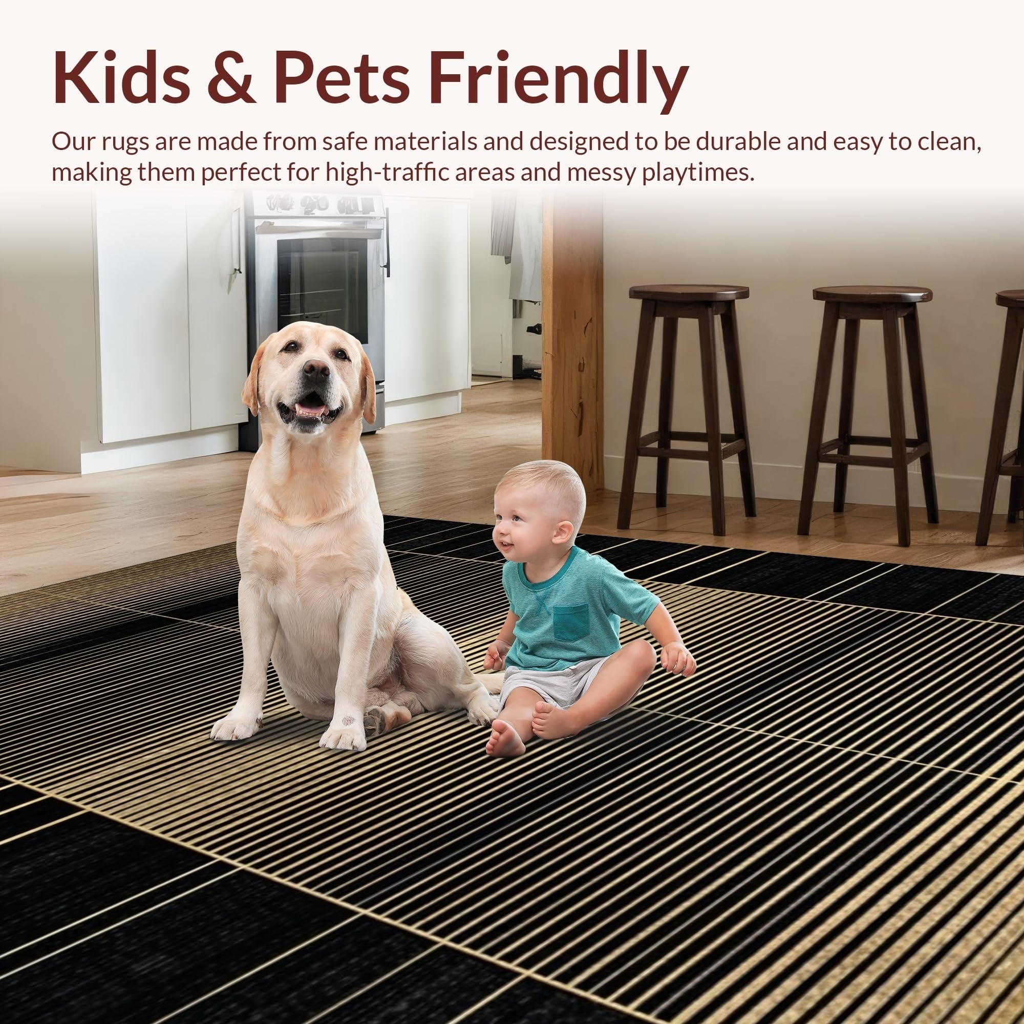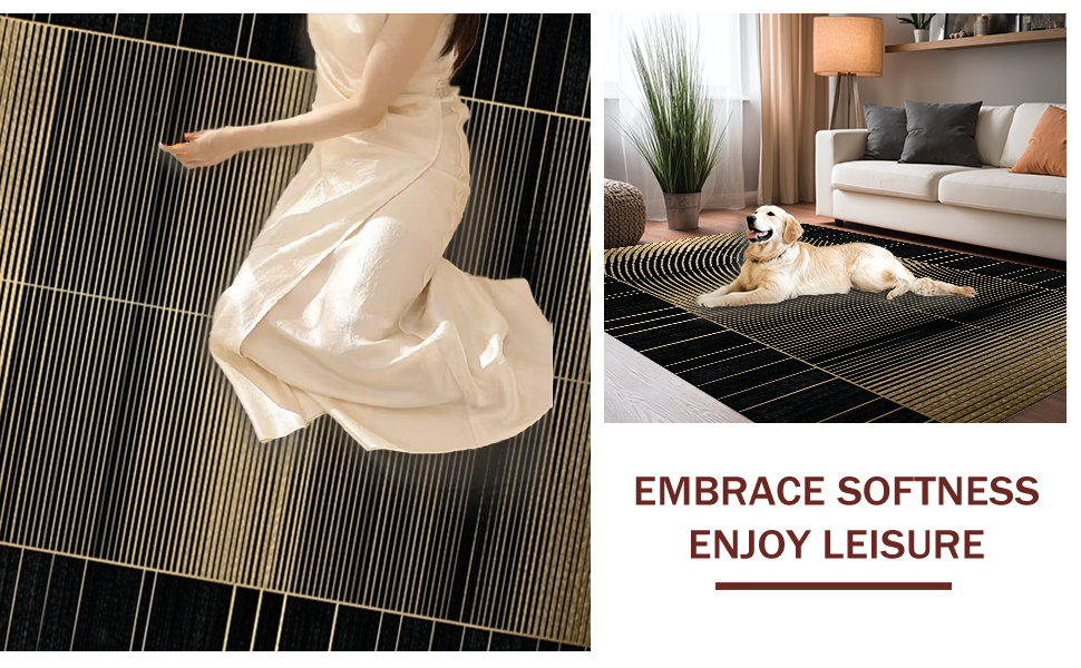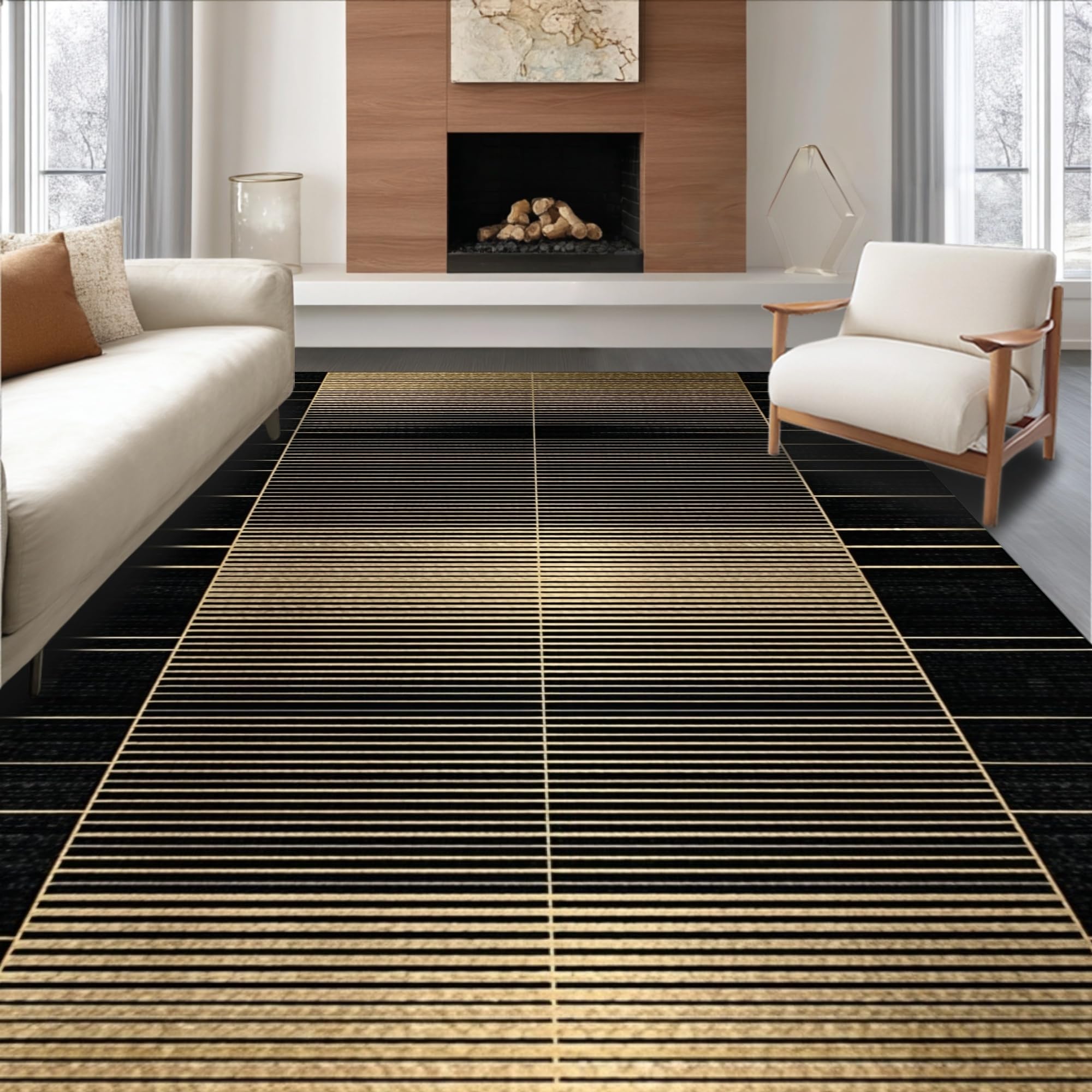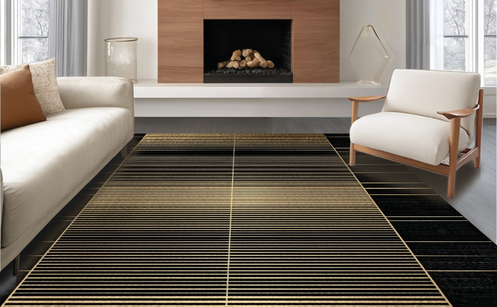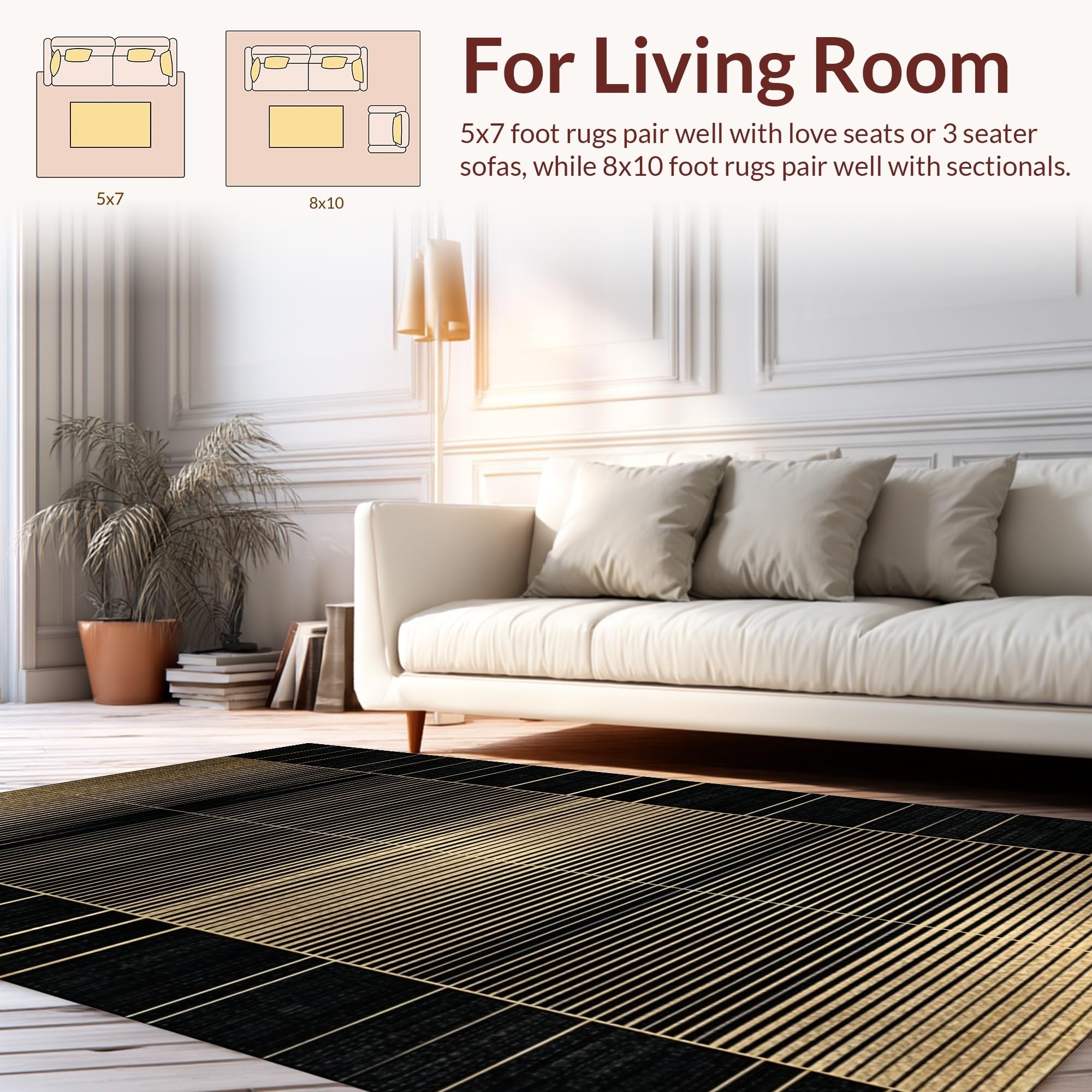 Ultra Soft Area Rug, Non Slip, Stain Resistant, Washable Area Rugs for Living Room, Bedroom, Opulent Gold-Infused Organic Aesthetic(Black) Overview: