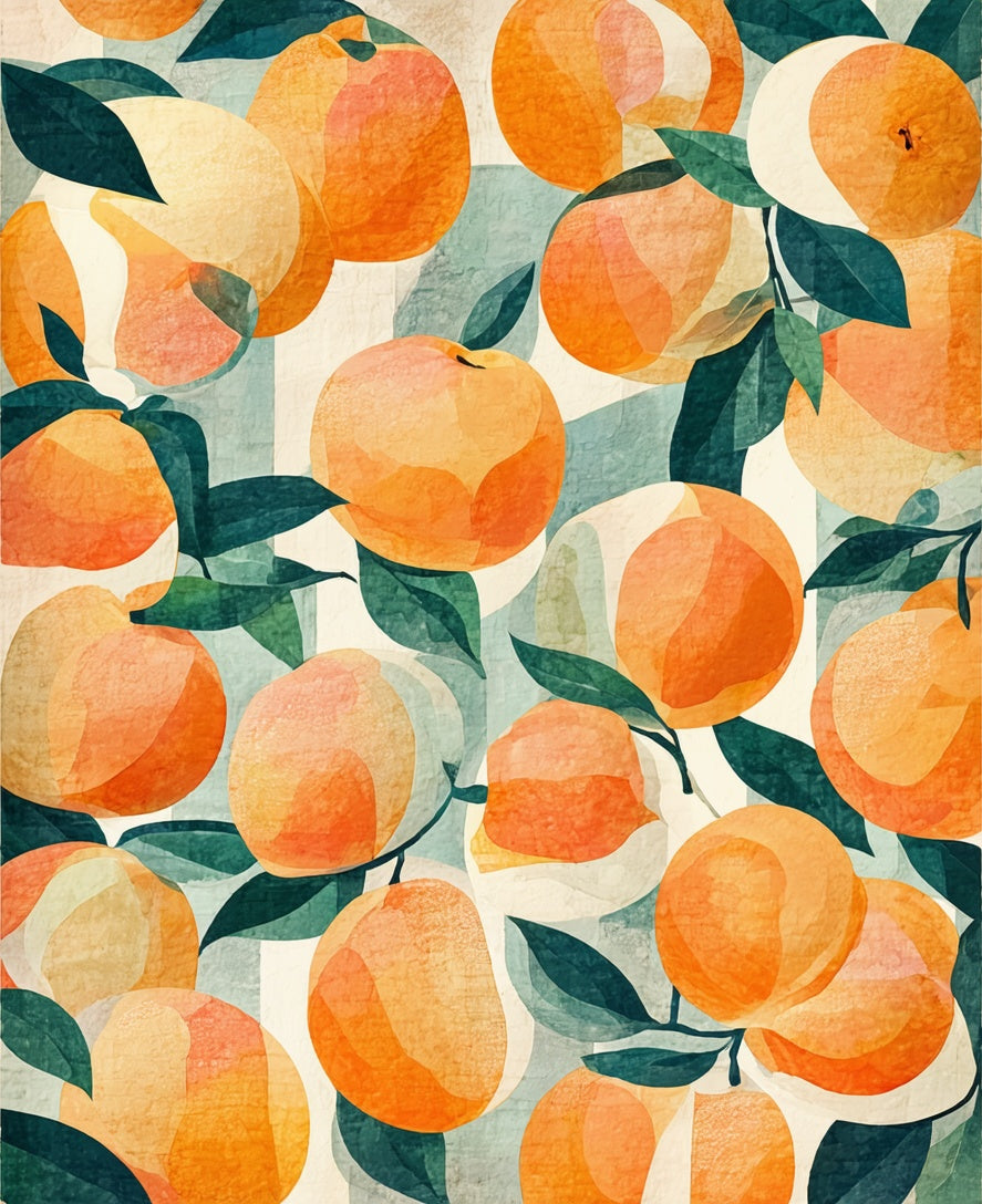 Orange and Green Abstract Fruit Motif Colorful Area(Orange)