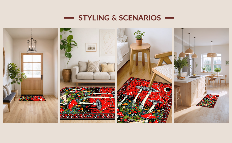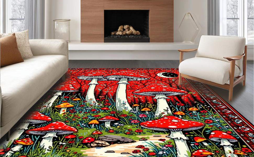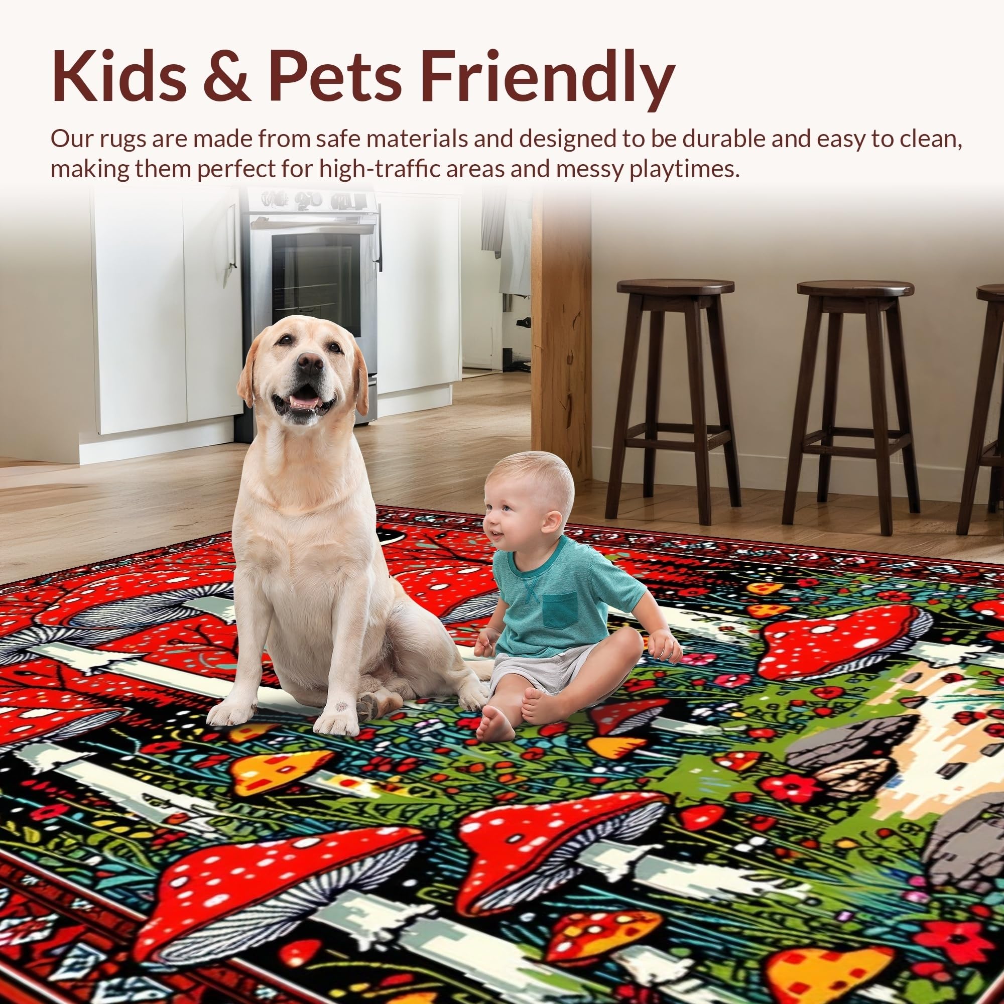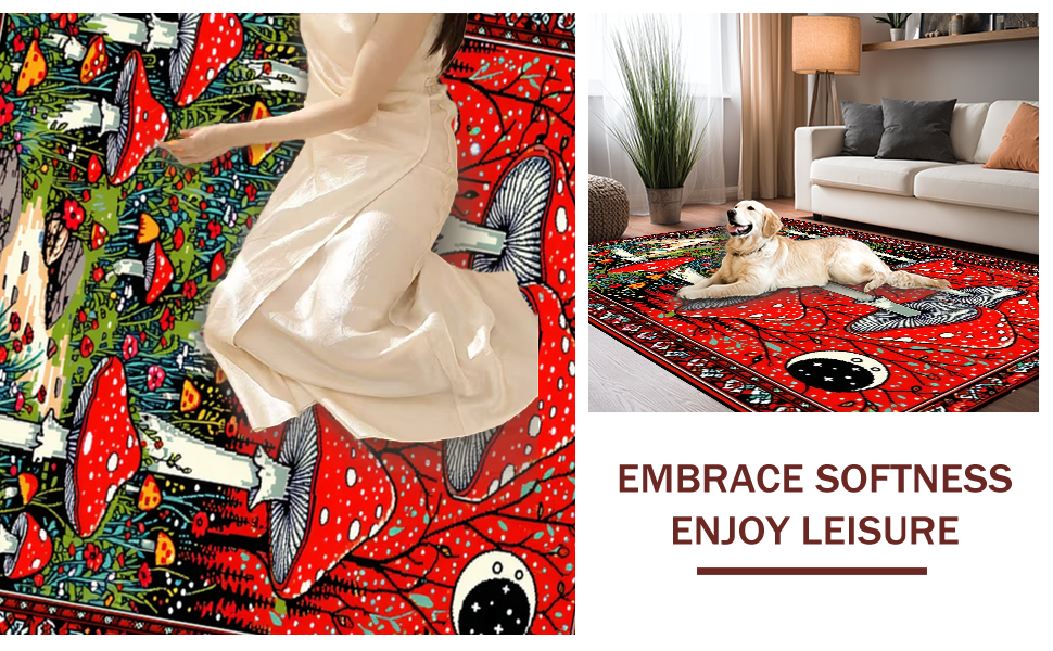 Ultra Soft Area Rug, Non Slip, Stain Resistant, Washable Area Rugs for Living Room, Bedroom, Organic Free-Spirited Design Elements(Red) Overview: