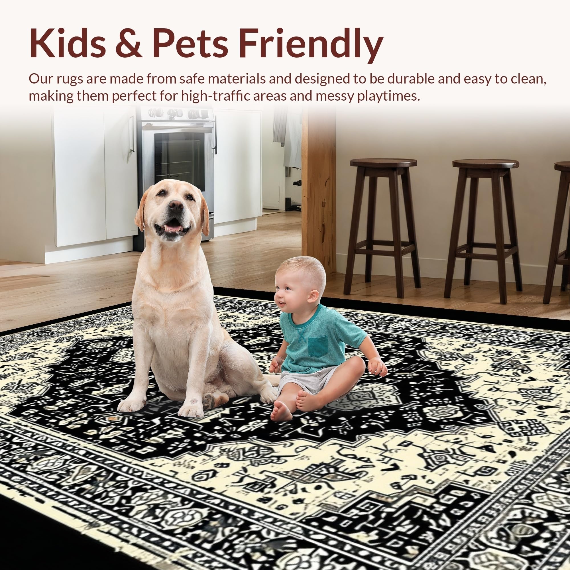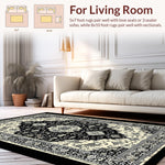 Ultra Soft Area Rug, Non Slip, Stain Resistant, Washable Area Rugs for Living Room, Bedroom, Oriental Distressed Black Ivory Living Room Rug(Black) Overview: