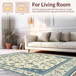 Ultra Soft Area Rug, Non Slip, Stain Resistant, Washable Area Rugs for Living Room, Bedroom, Oriental Twist Beige and Sky Blue Abstract Floral Design(Beige) Overview: