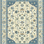 Oriental Twist Beige and Sky Blue Abstract Floral Design(Beige)