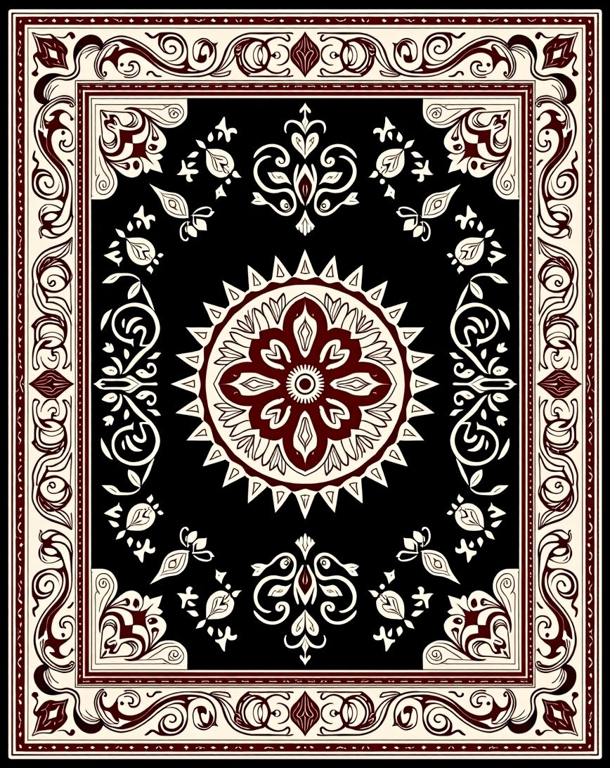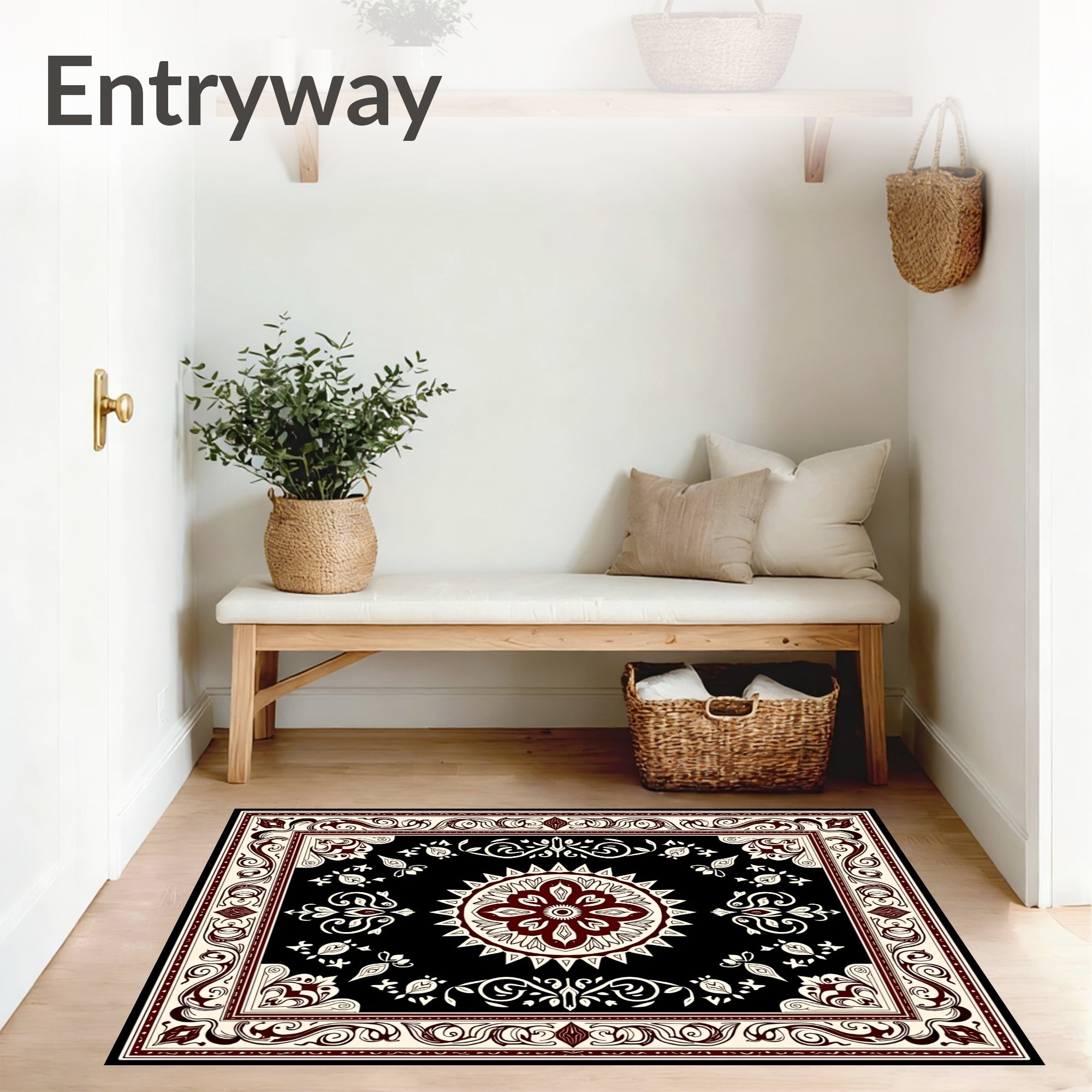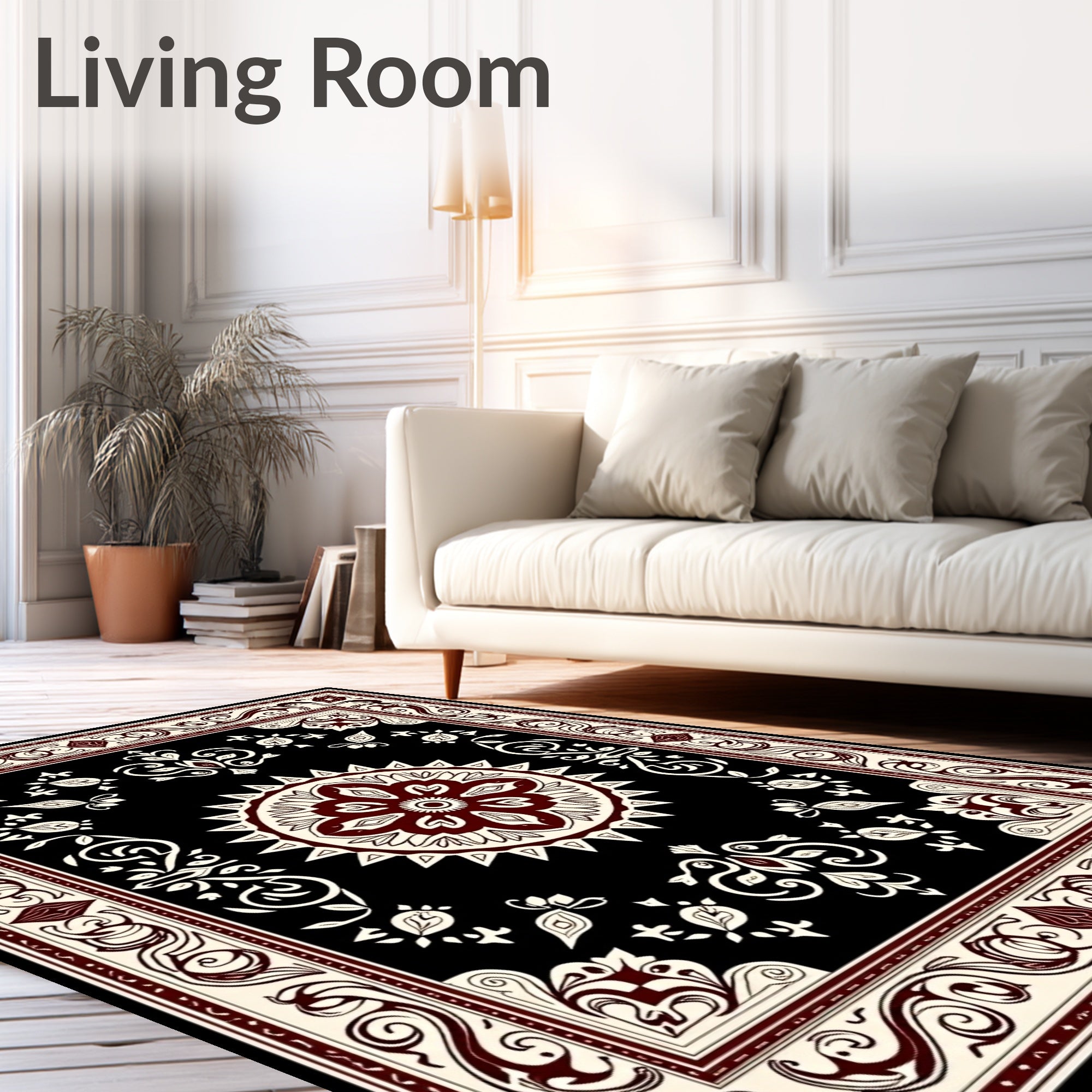 Ultra Soft Area Rug, Non Slip, Stain Resistant, Washable Area Rugs for Living Room, Bedroom, Ornamental Medallion Tapestry with Traditional Artistry(Black) Overview: