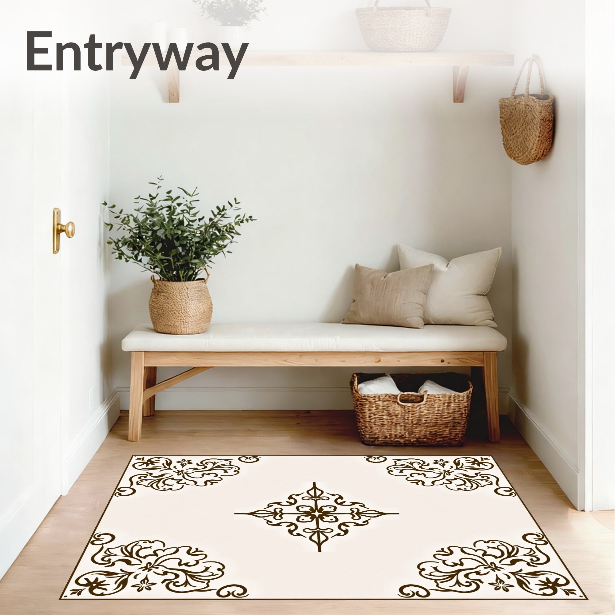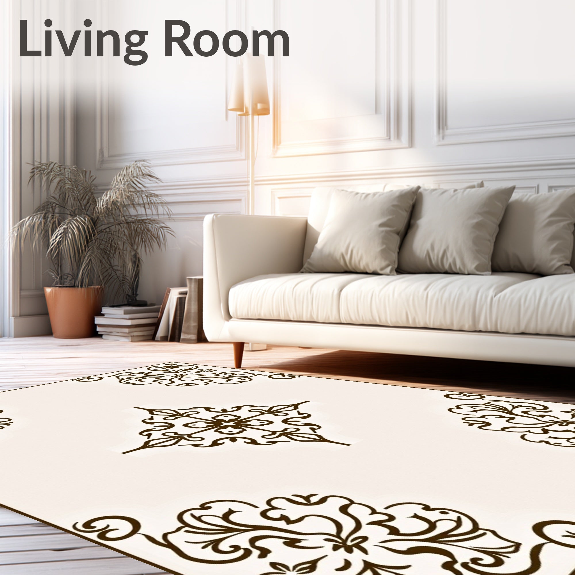 Flatwoven High Traffic Area Rug, Ornate Floral Scrollwork Damask Noble Sophisticated, Non Slip, Stain Resistant, Washable Area Rugs for Living Room, Bedroom (Ivory) Overview: