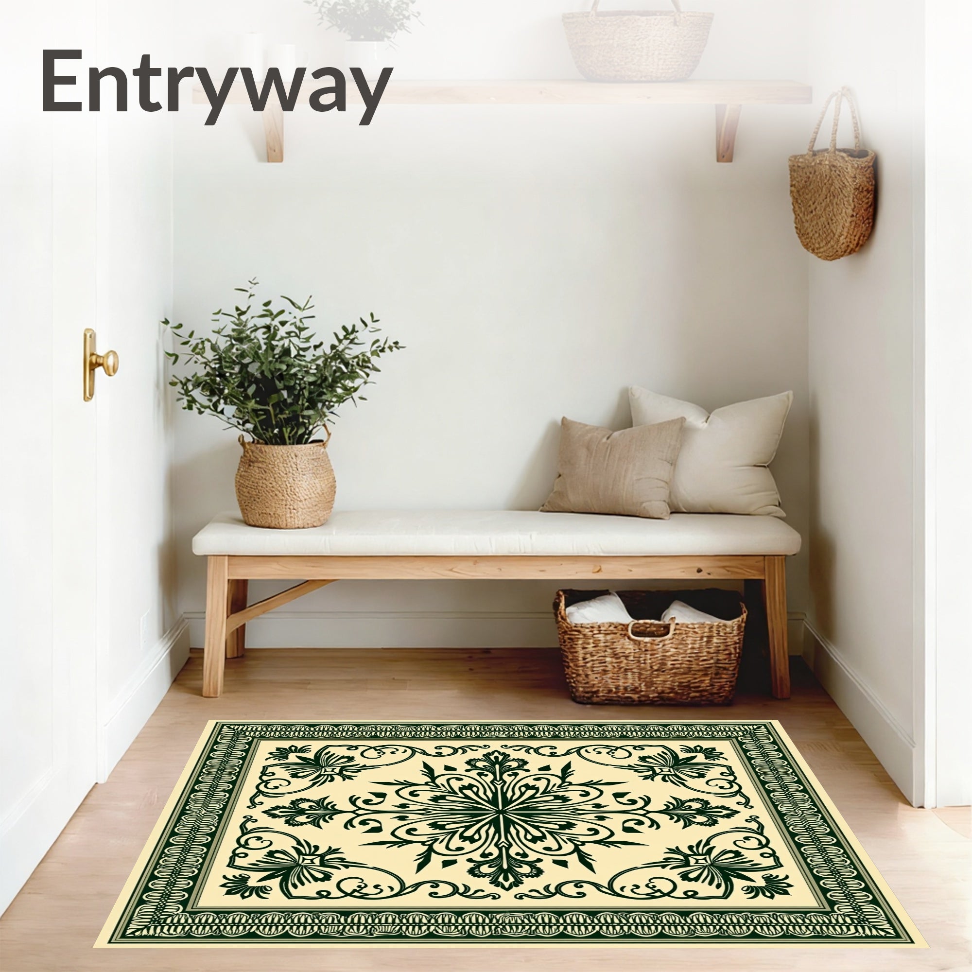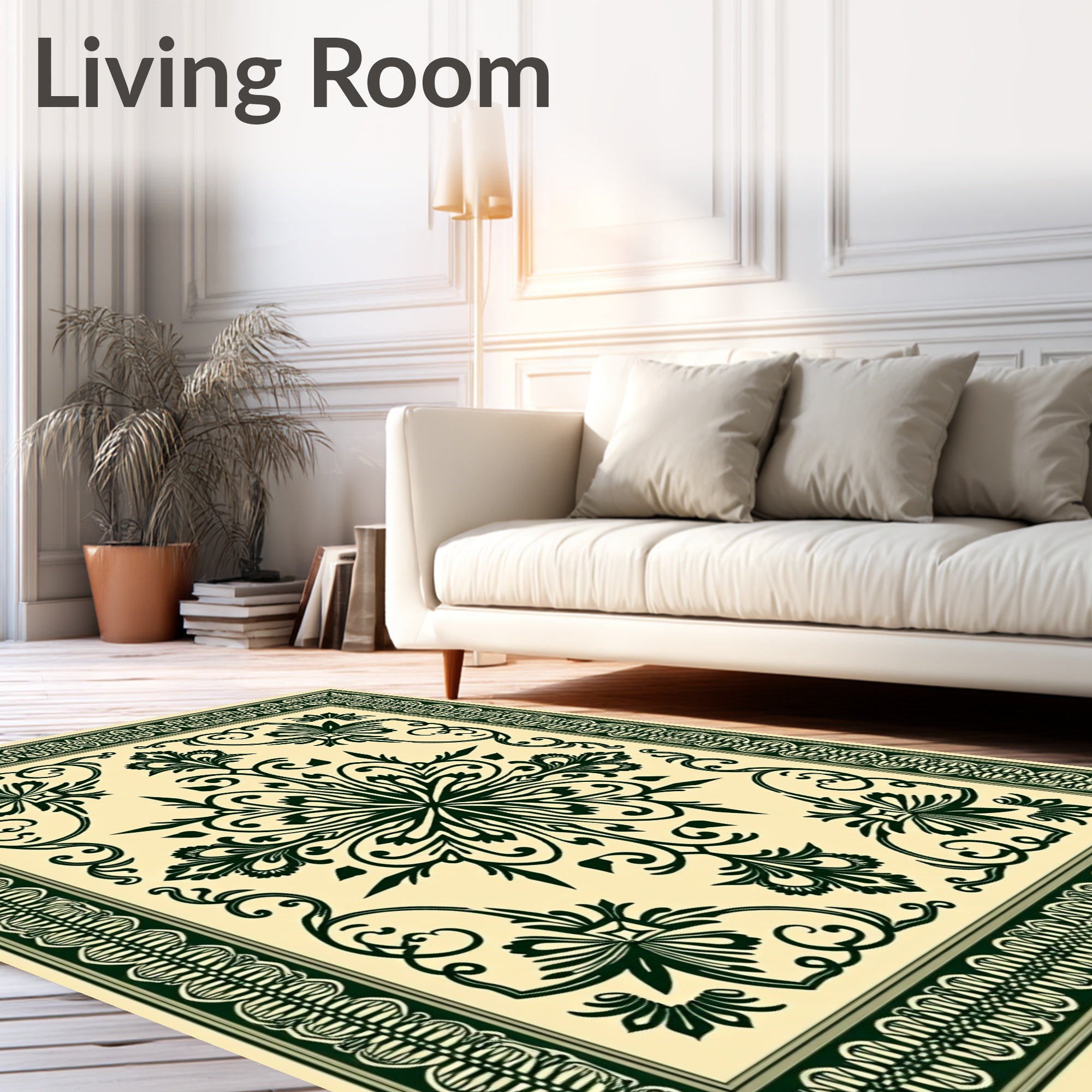 Ultra Soft Area Rug, Non Slip, Stain Resistant, Washable Area Rugs for Living Room, Bedroom, Ornate Medallion Damask with Flourishing Botanical(Ivory) Overview: