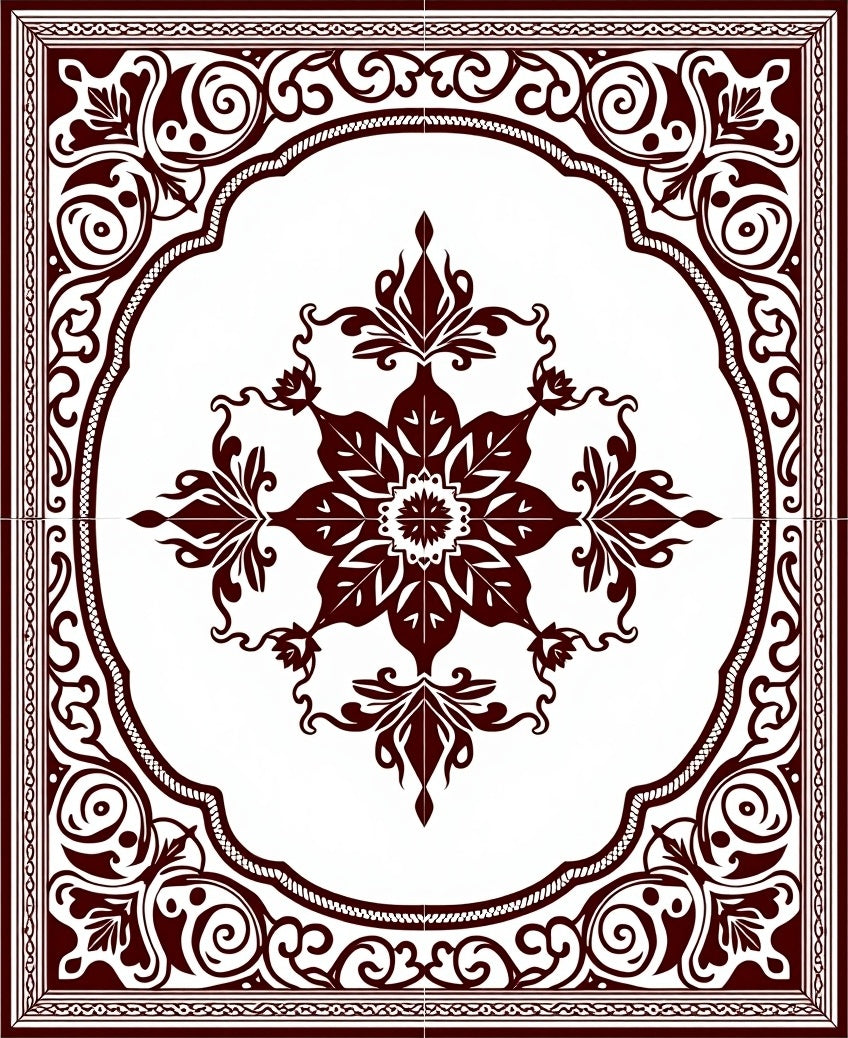 Ornate Medallion with Intricate Botanical Motifs(Brown)