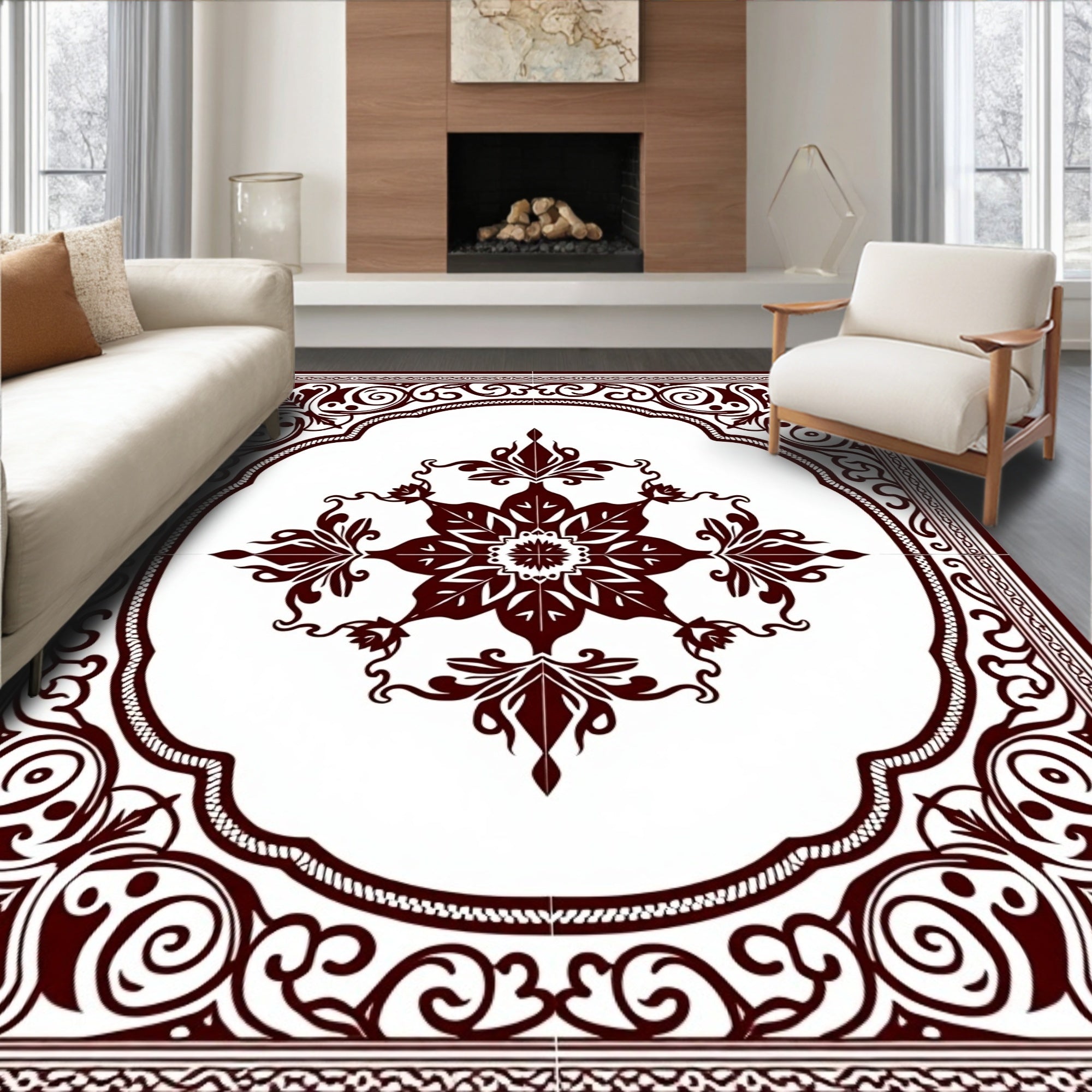 Flatwoven High Traffic Area Rug, Ornate Medallion with Intricate Botanical Motifs, Non Slip, Stain Resistant, Washable Area Rugs for Living Room, Bedroom (Brown) Overview: