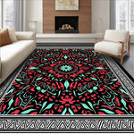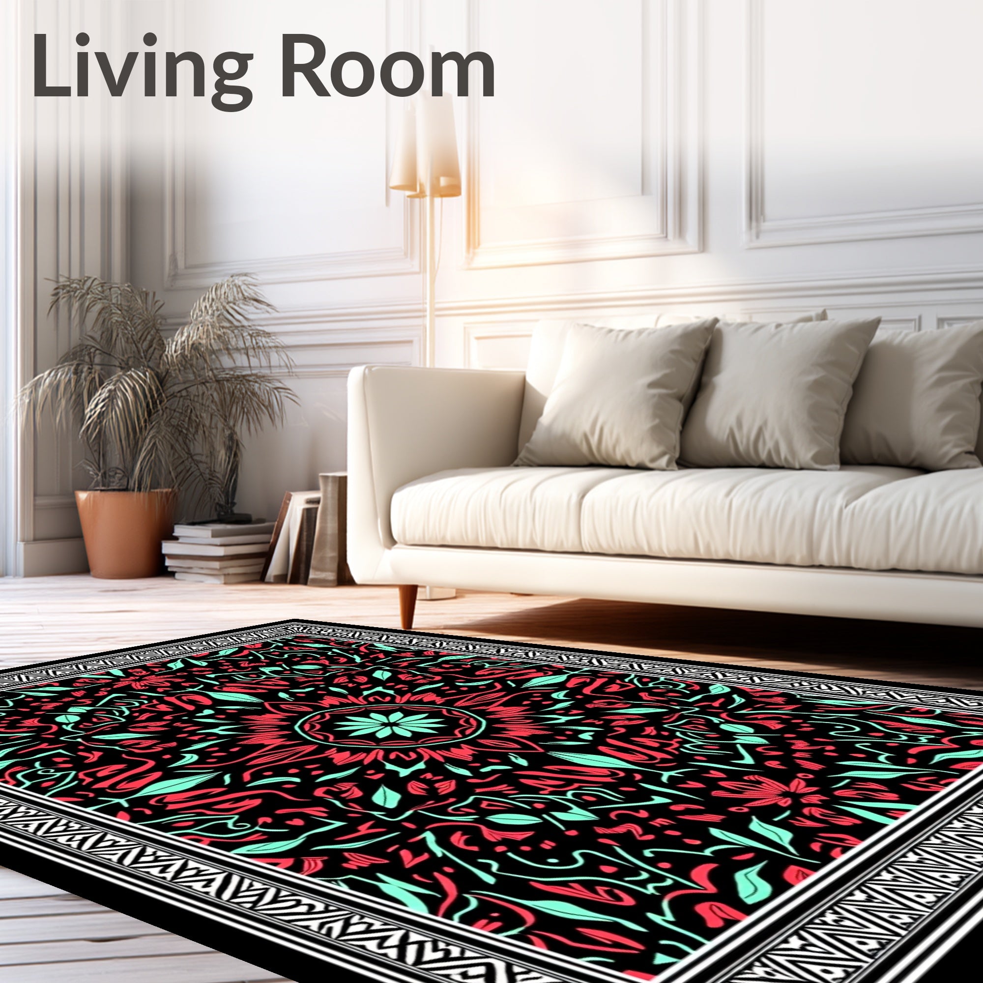Ultra Soft Area Rug, Non Slip, Stain Resistant, Washable Area Rugs for Living Room, Bedroom, Ornate Mistletoe Damask with Festive Botanical Tracery(Black) Overview: