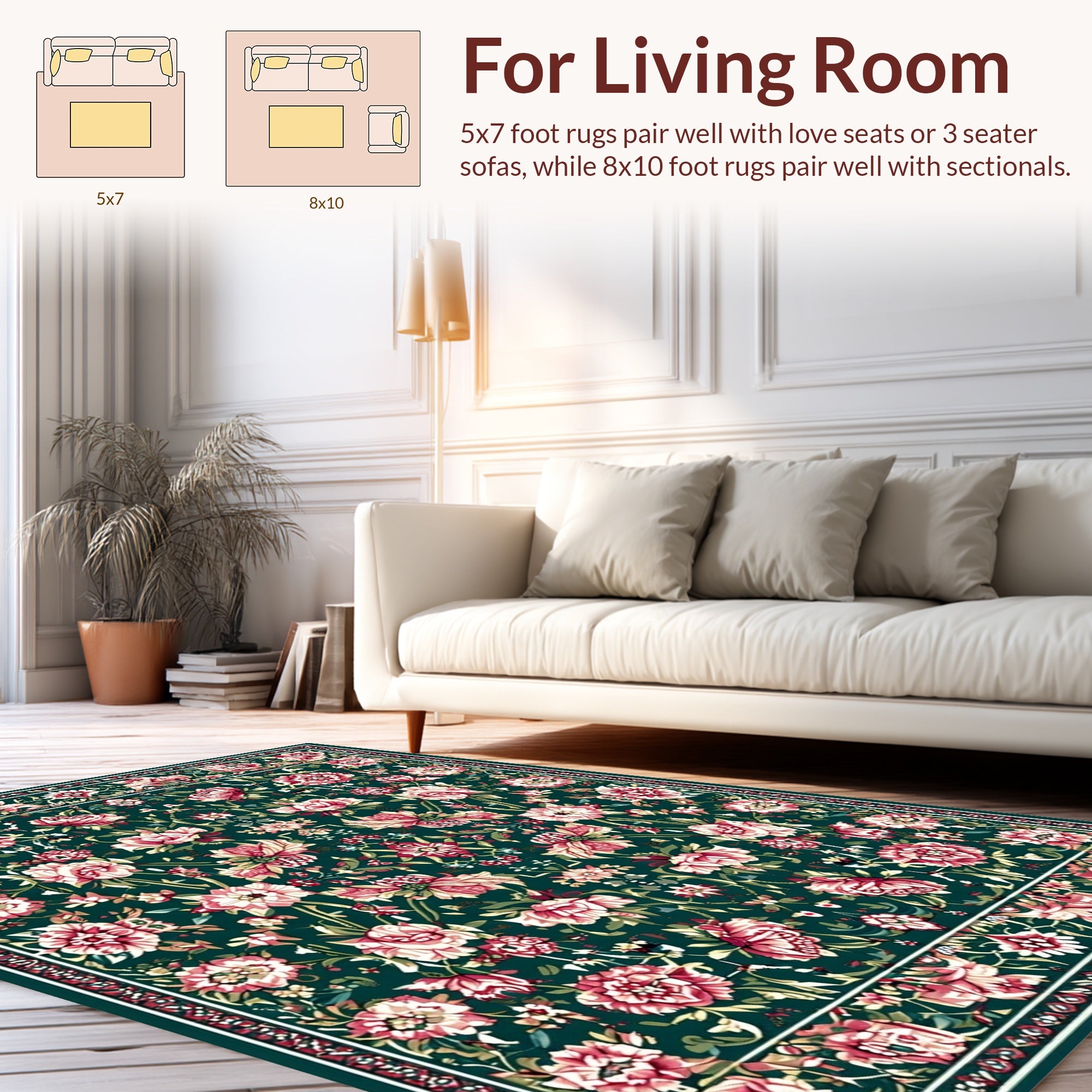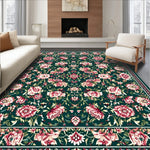 Flatwoven High Traffic Area Rug, Ornate Oriental Floral, Non Slip, Stain Resistant, Washable Area Rugs for Living Room, Bedroom (Green) Overview: