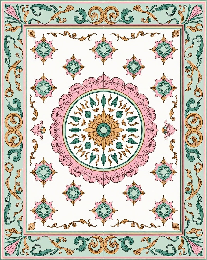 Ornate Palais Arabesque Motif with Flourishes and Vintage Charm(Pink)