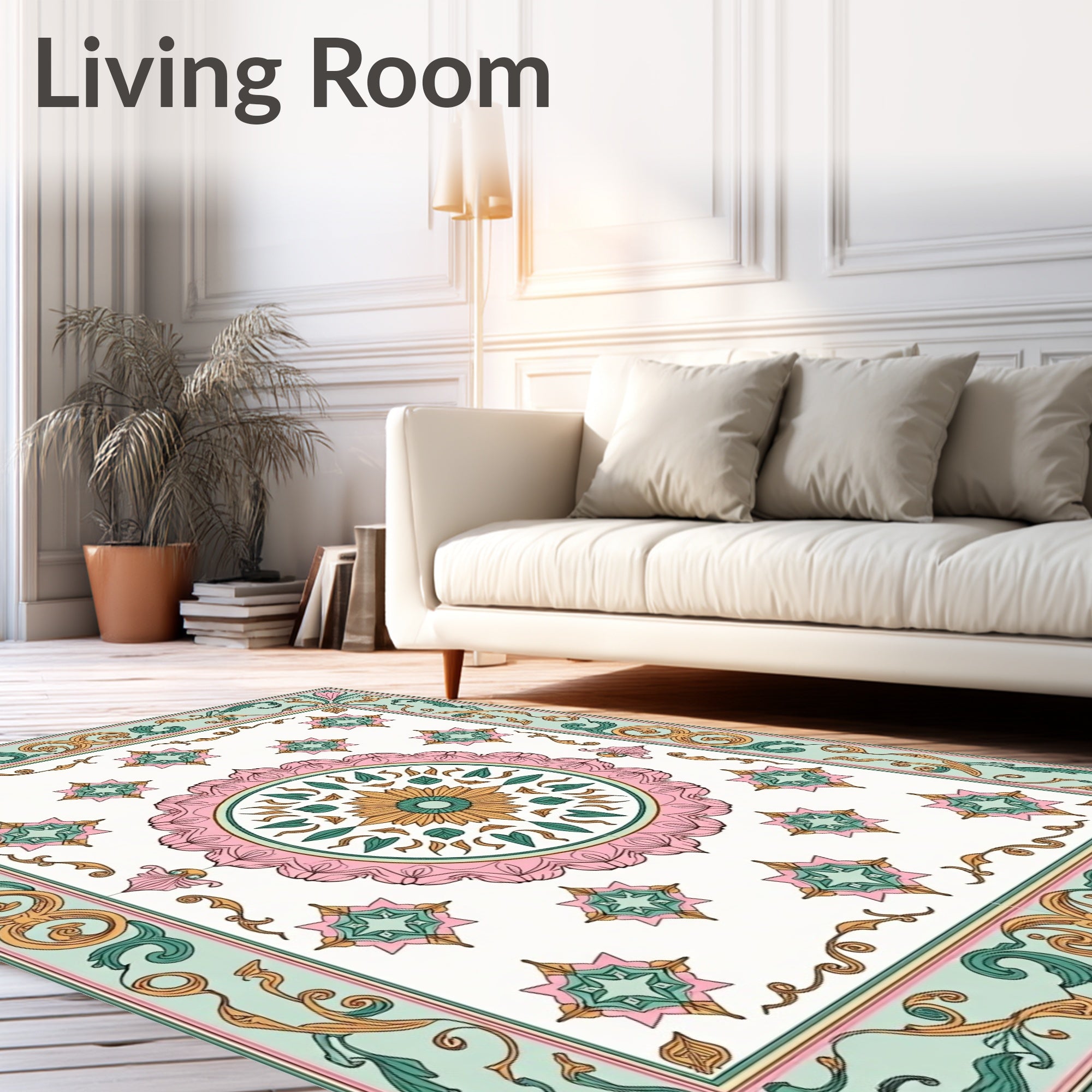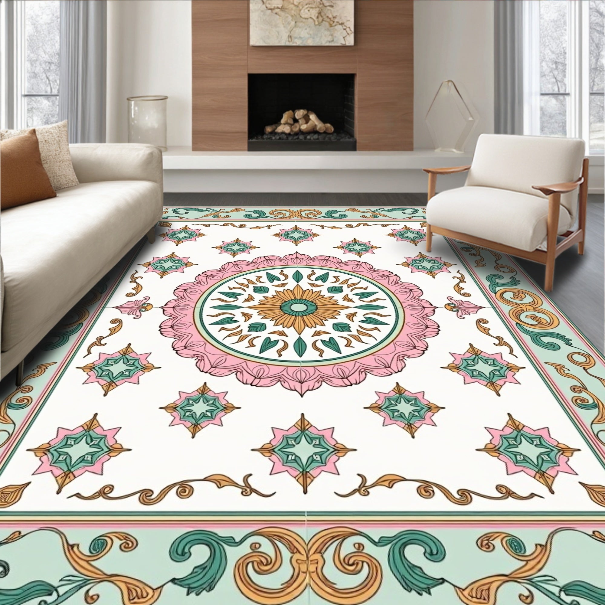 Ultra Soft Area Rug, Non Slip, Stain Resistant, Washable Area Rugs for Living Room, Bedroom, Ornate Palais Arabesque Motif with Flourishes and Vintage Charm(Pink) Overview: