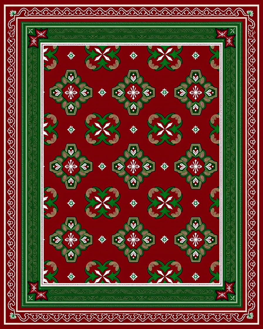 Ornate Quatrefoil Christmas with Decorative Border Motifs(Red)