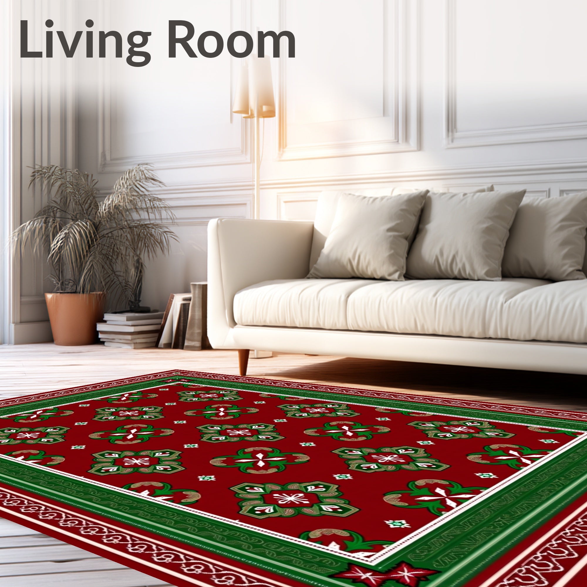 Ultra Soft Area Rug, Non Slip, Stain Resistant, Washable Area Rugs for Living Room, Bedroom, Ornate Quatrefoil Christmas with Decorative Border Motifs(Red) Overview: