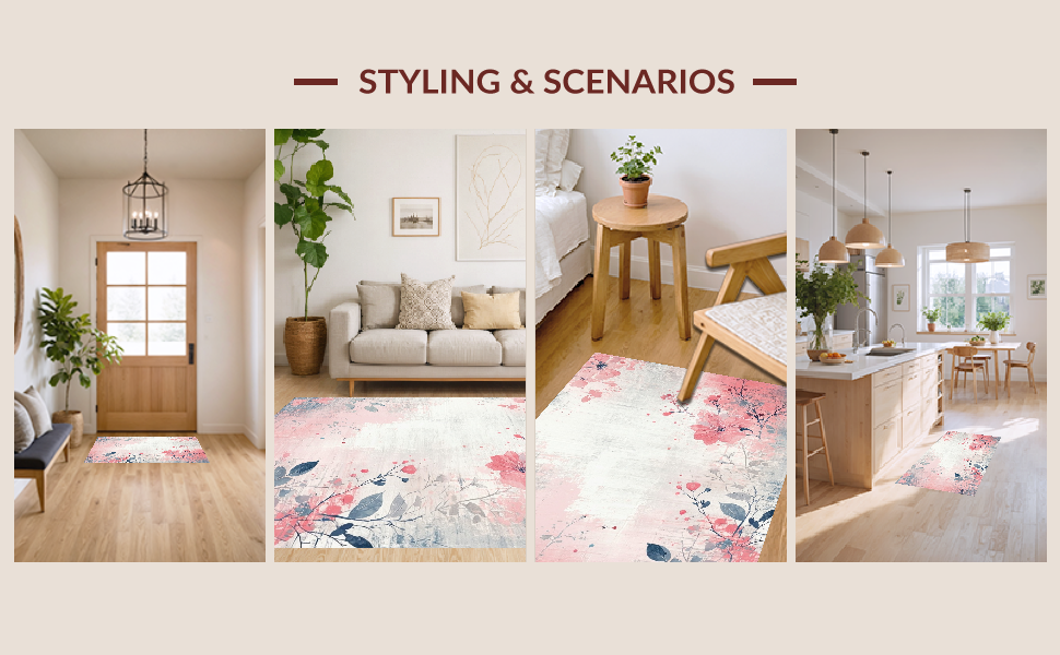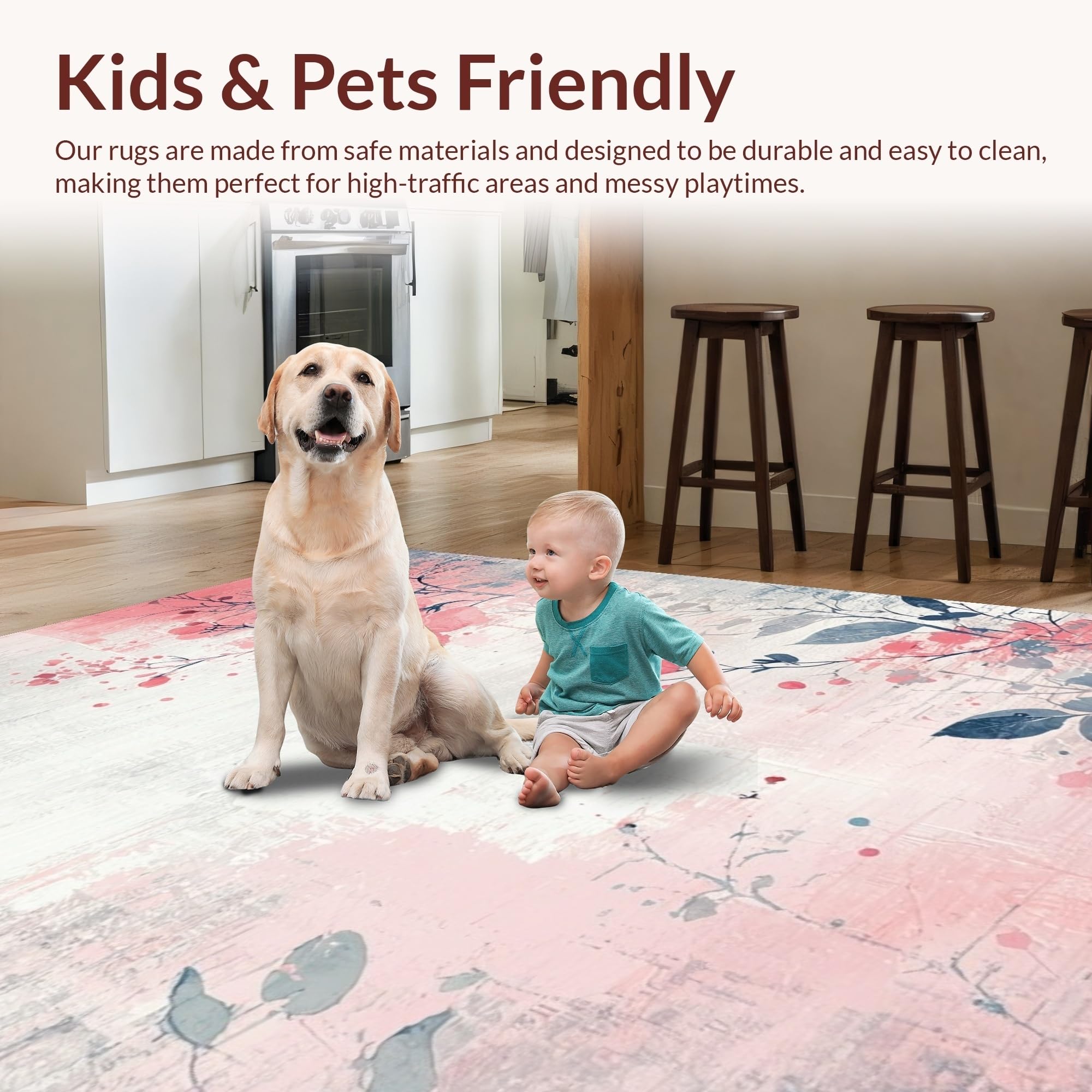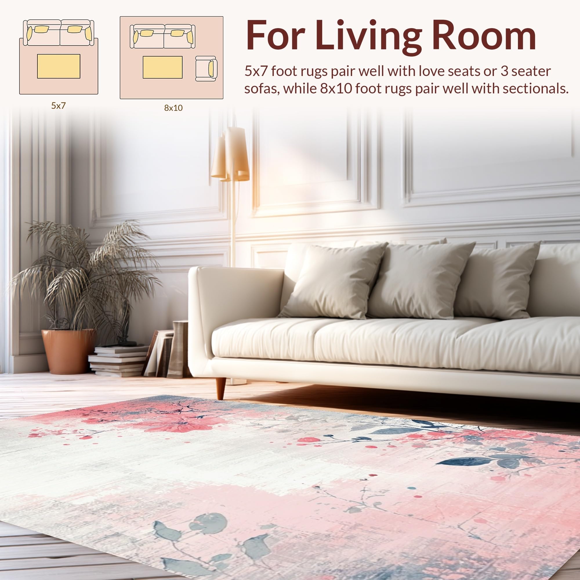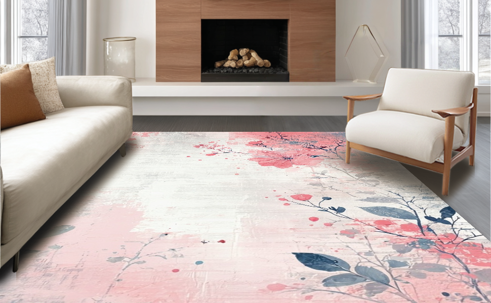Ultra Soft Area Rug, Non Slip, Stain Resistant, Washable Area Rugs for Living Room, Bedroom, Painted Petals Rug: Pink Gradient, Abstract Floral Carpet(Pink) Overview: