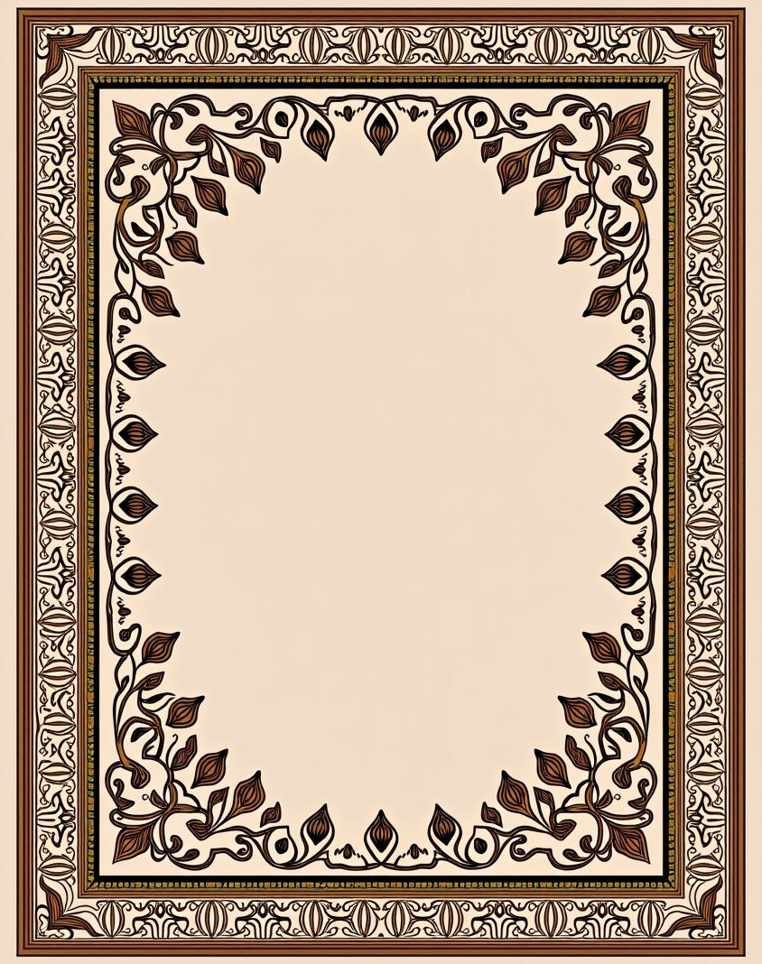 Paisley Cascade with Ornamental Border Framework(Brown)