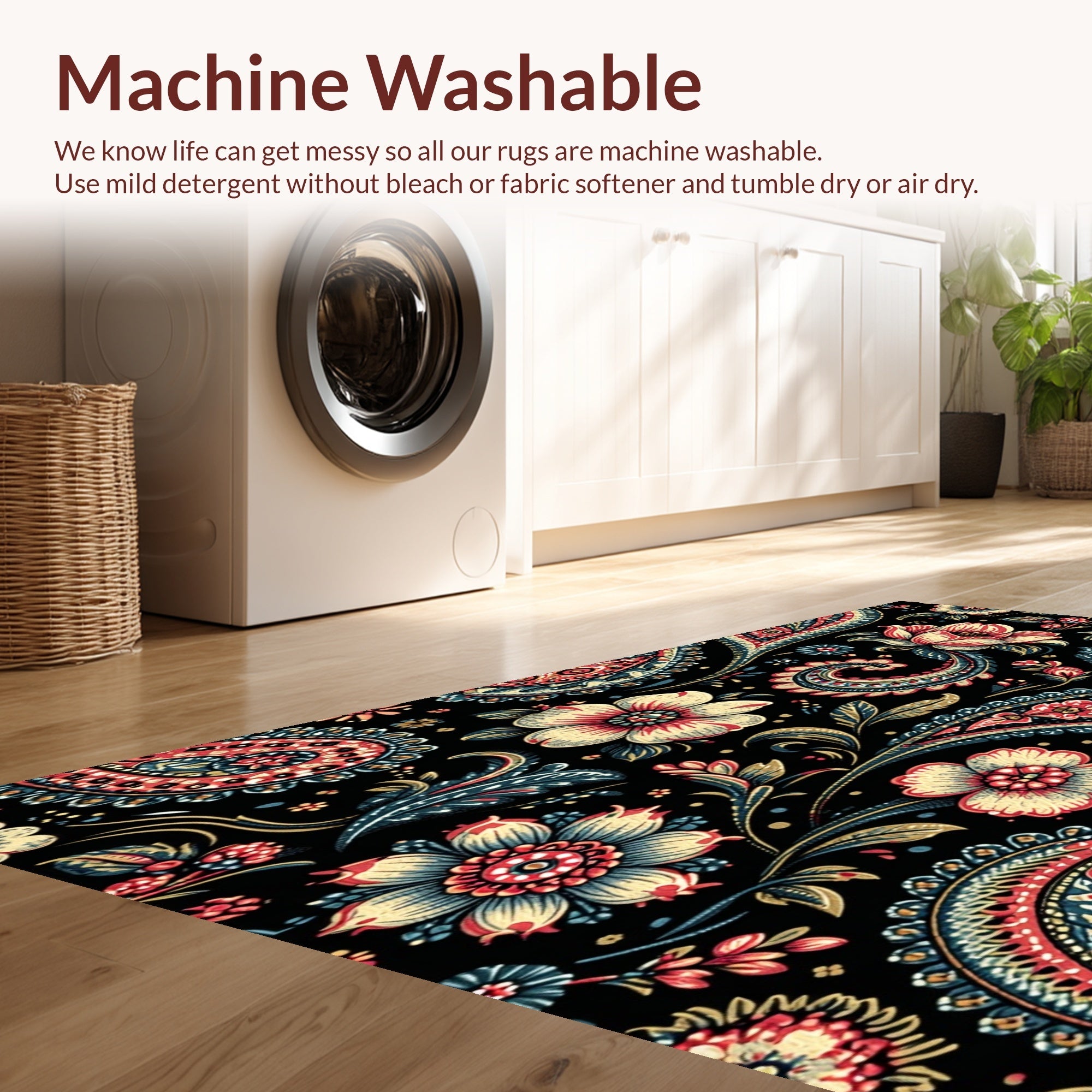 - Machine Washable: Our rugs can be easily thrown in the wash machine.
