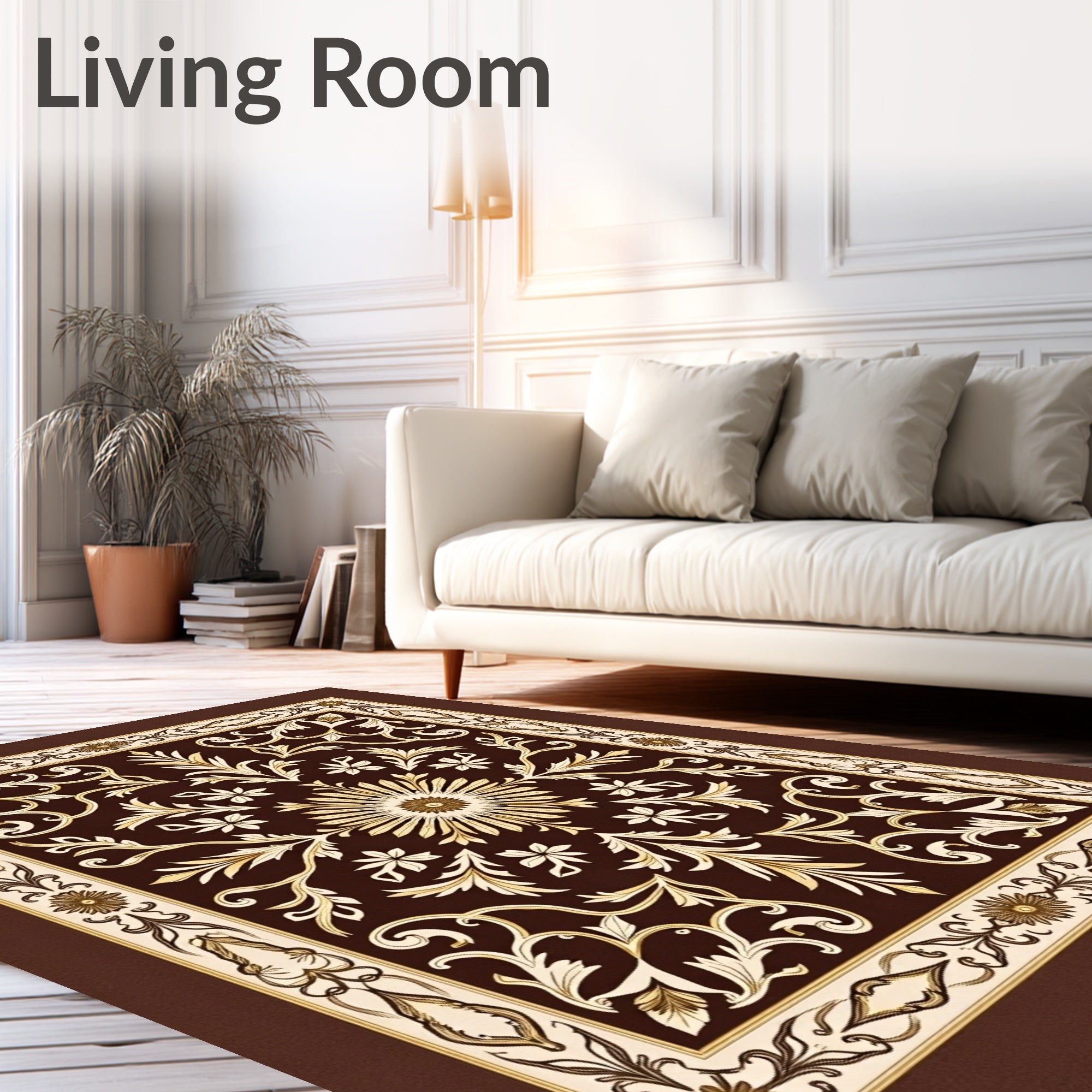 Flatwoven High Traffic Area Rug, Paisley Scrollwork with Vintage Botanical Flourish Accents, Non Slip, Stain Resistant, Washable Area Rugs for Living Room, Bedroom (Brown) Overview: