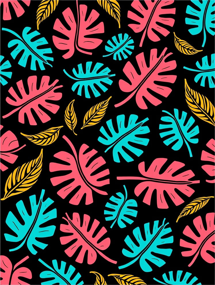 Palm Canopy with Interlocking Tropical Leaf Motifs(Pink)