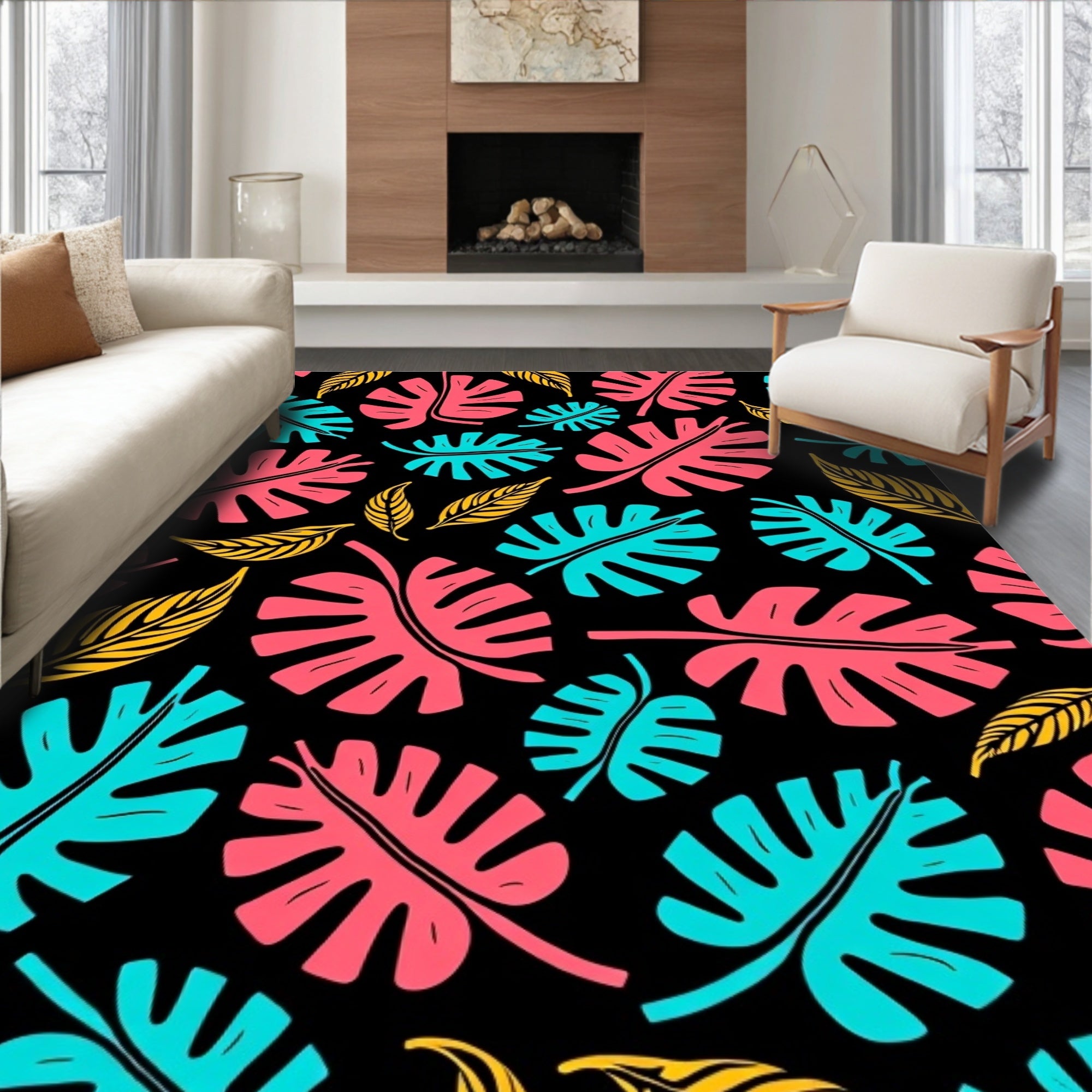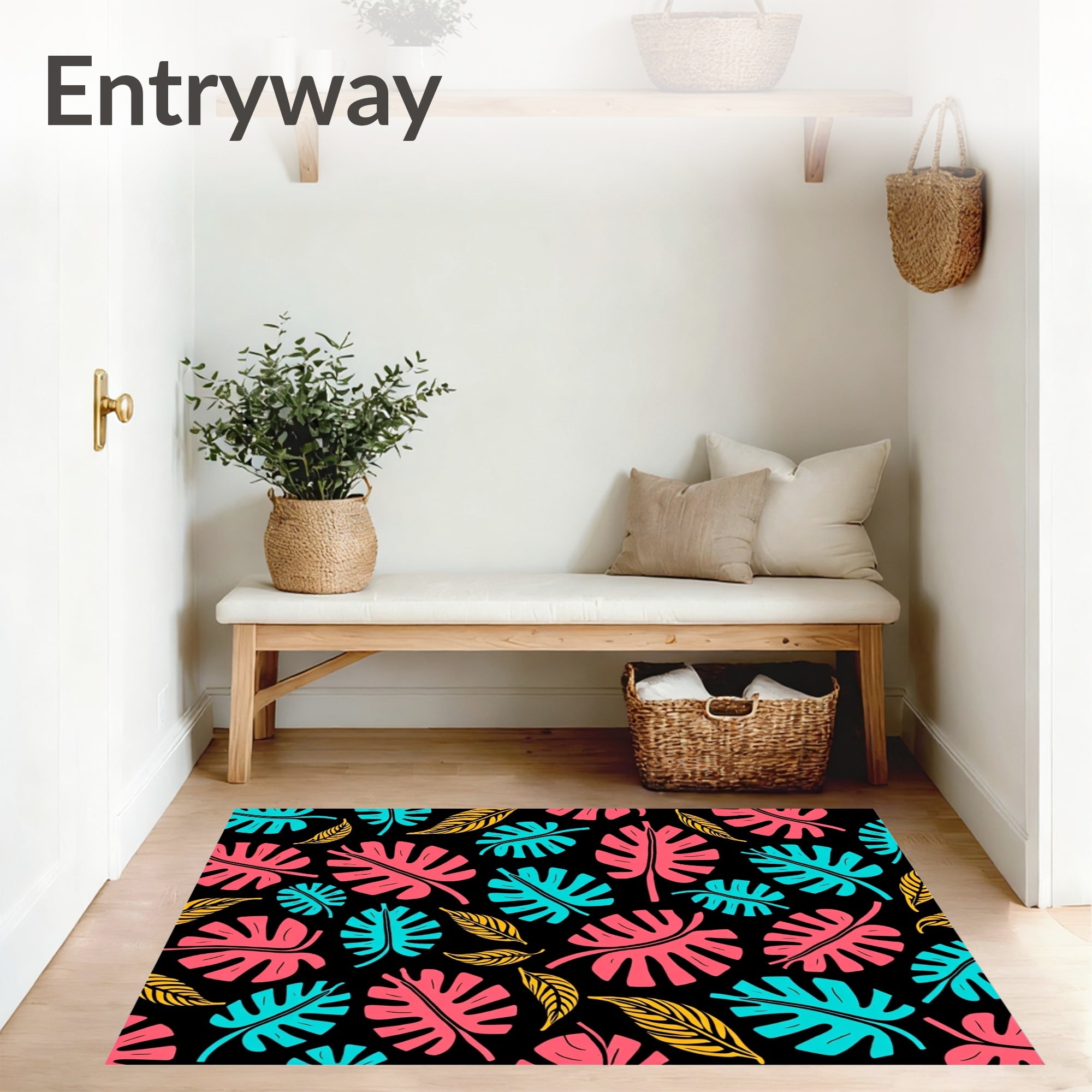 Flatwoven High Traffic Area Rug, Palm Canopy with Interlocking Tropical Leaf Motifs, Non Slip, Stain Resistant, Washable Area Rugs for Living Room, Bedroom (Pink) Overview: