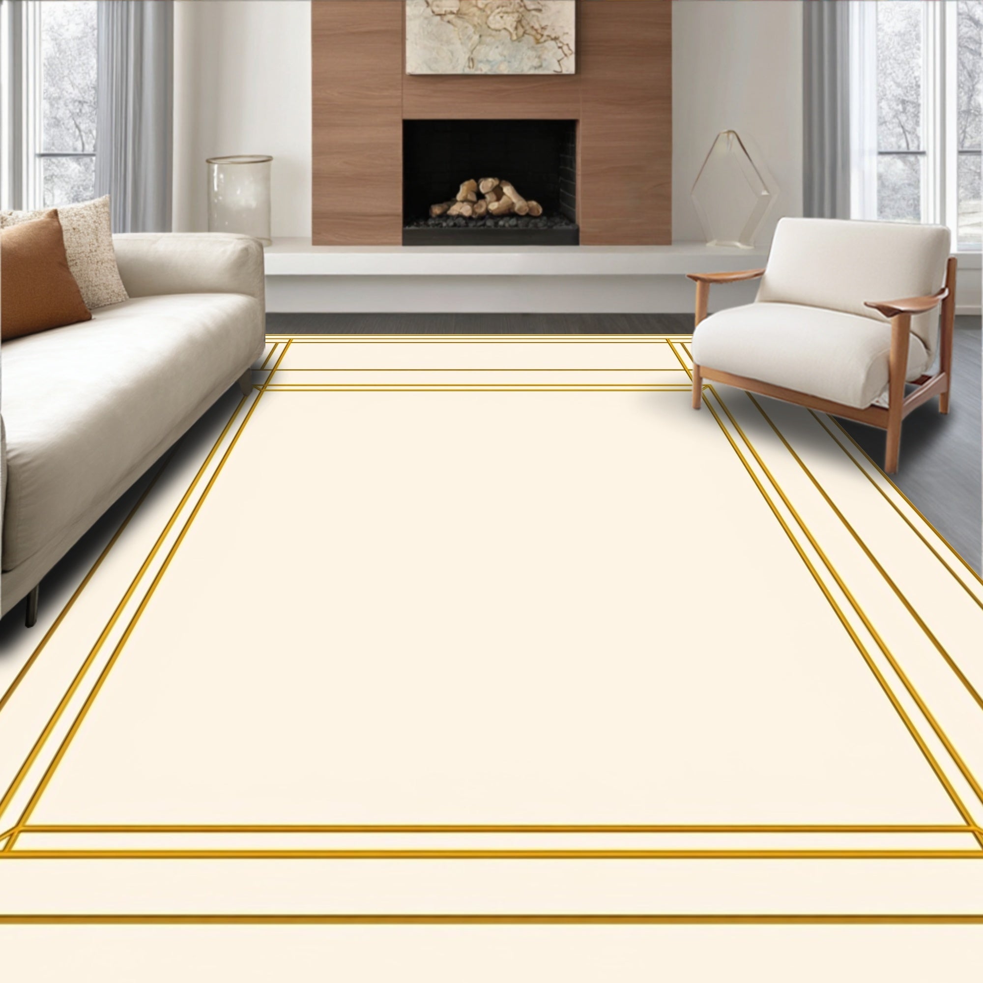Ultra Soft Area Rug, Non Slip, Stain Resistant, Washable Area Rugs for Living Room, Bedroom, Parquet Inspired Chess Board Style Interlocking Square(Gold) Overview: