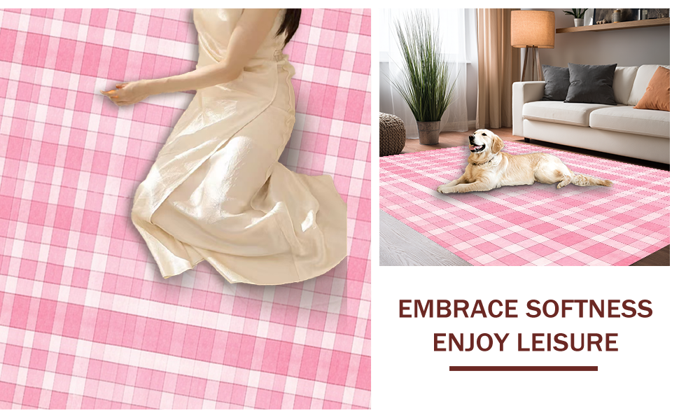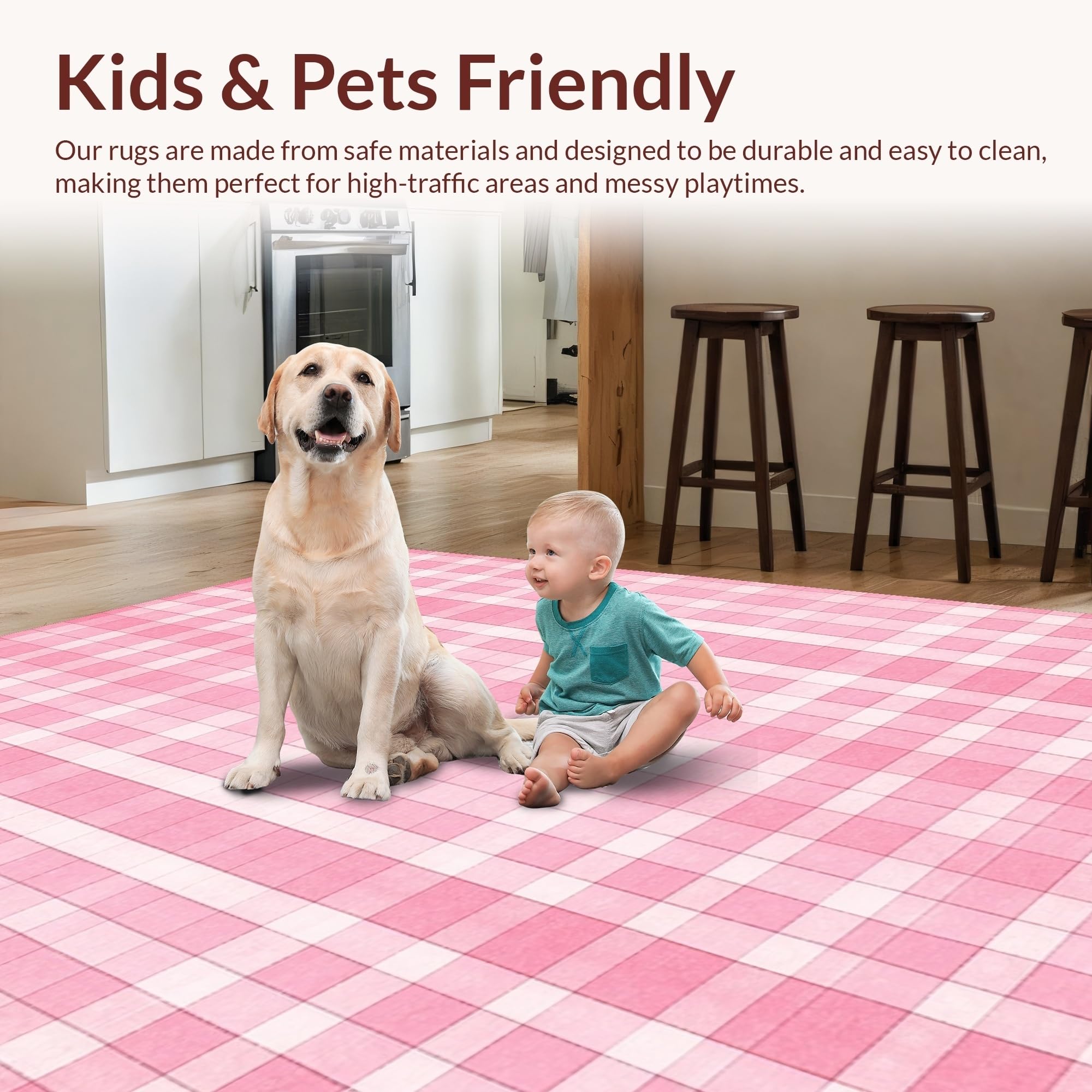 Ultra Soft Area Rug, Non Slip, Stain Resistant, Washable Area Rugs for Living Room, Bedroom, Pastel Abstract Checkerboard Texture(Pink) Overview: