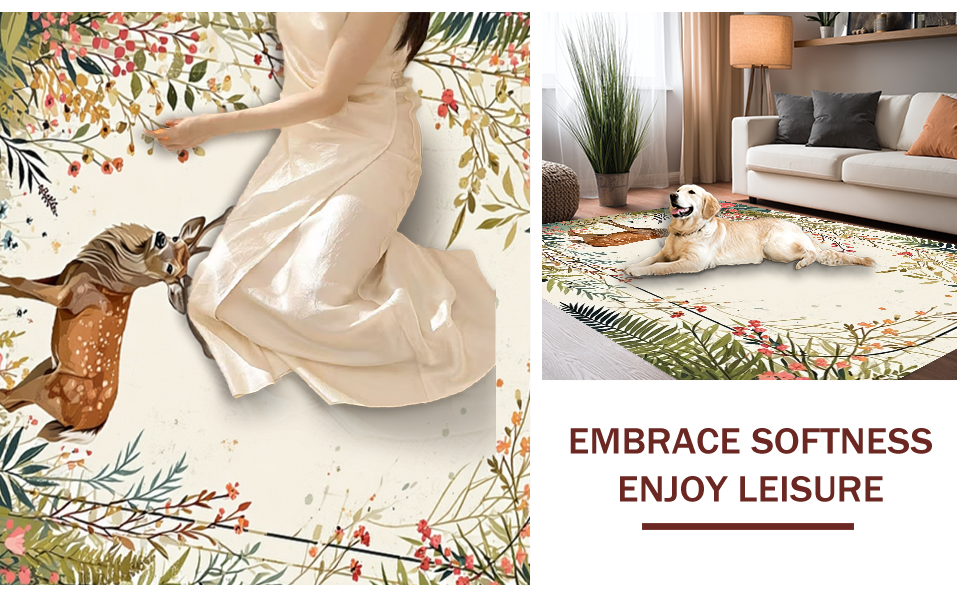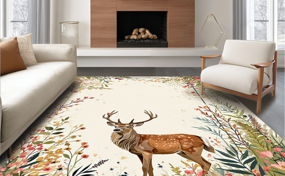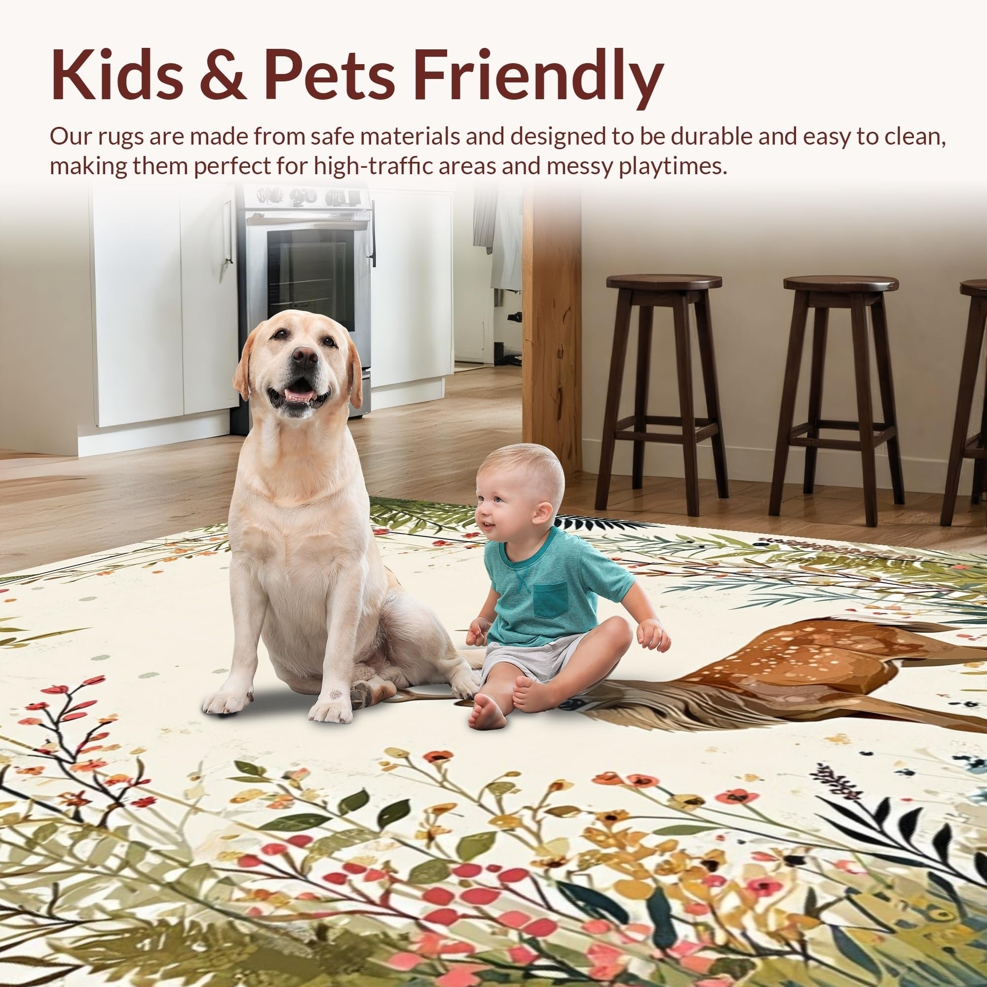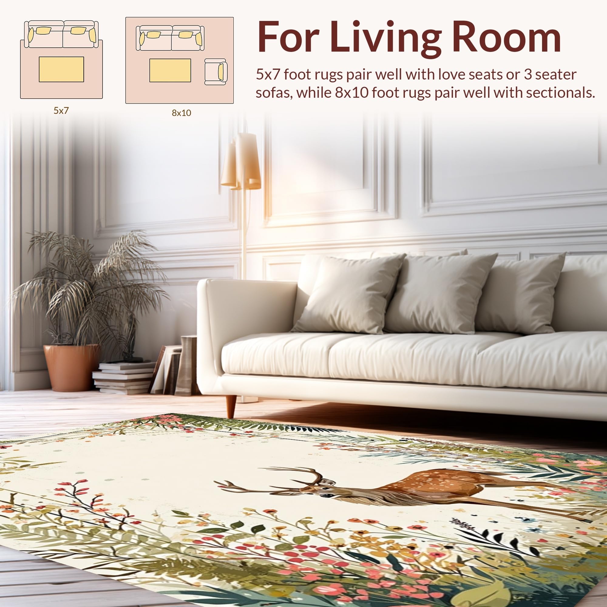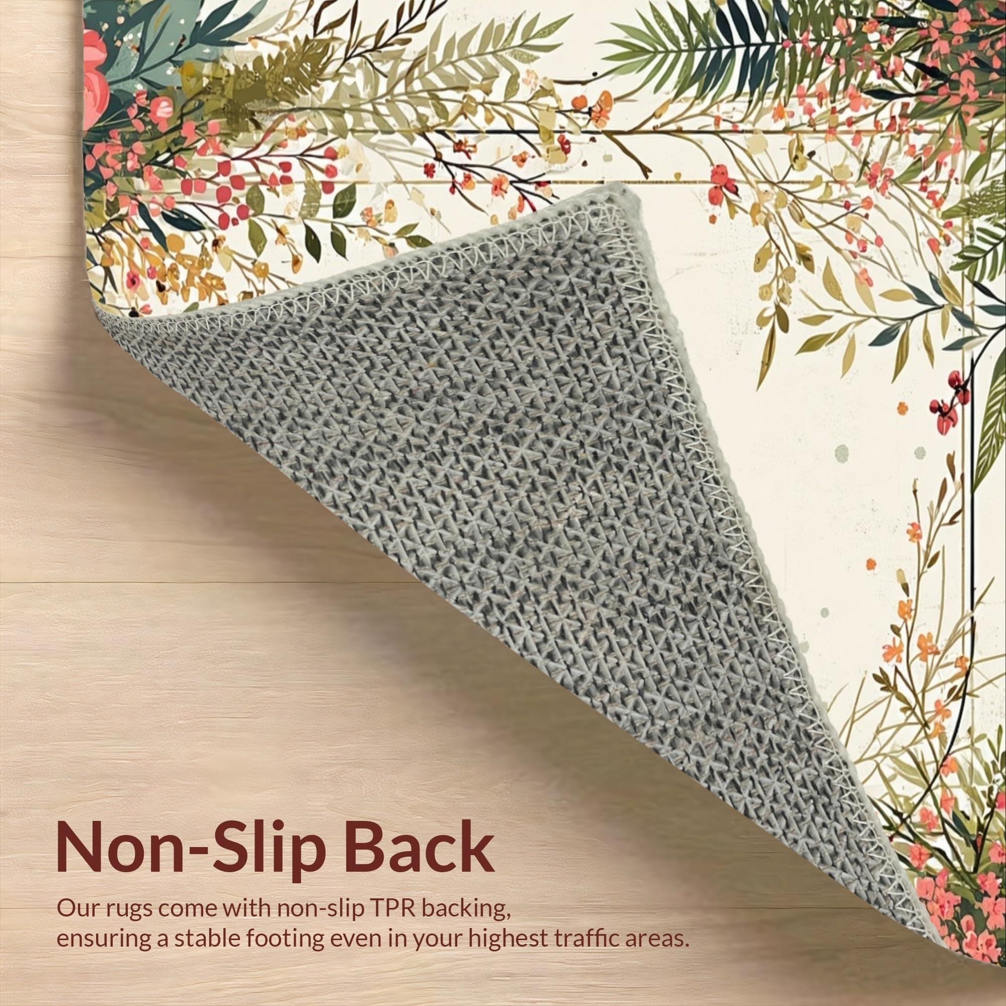 Ultra Soft Area Rug, Non Slip, Stain Resistant, Washable Area Rugs for Living Room, Bedroom, Pastel Floral Rustic Charm(Beige) Overview: