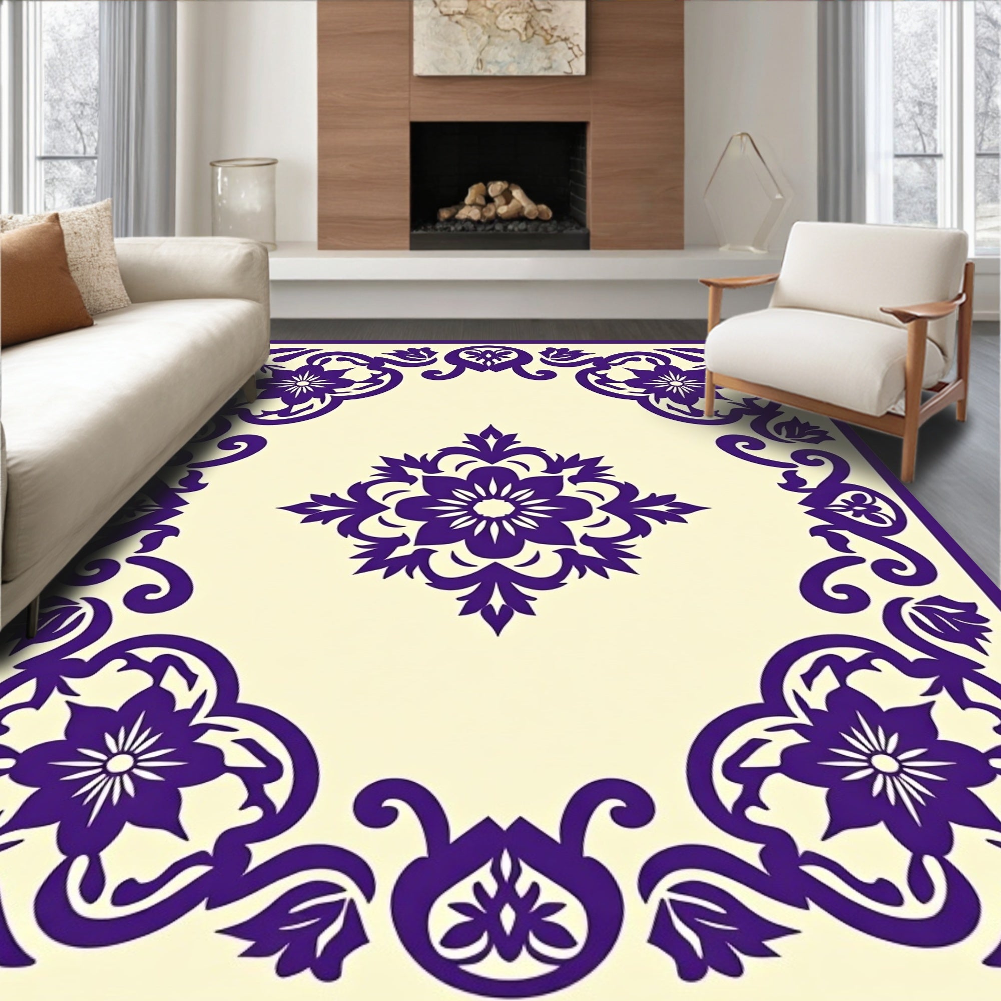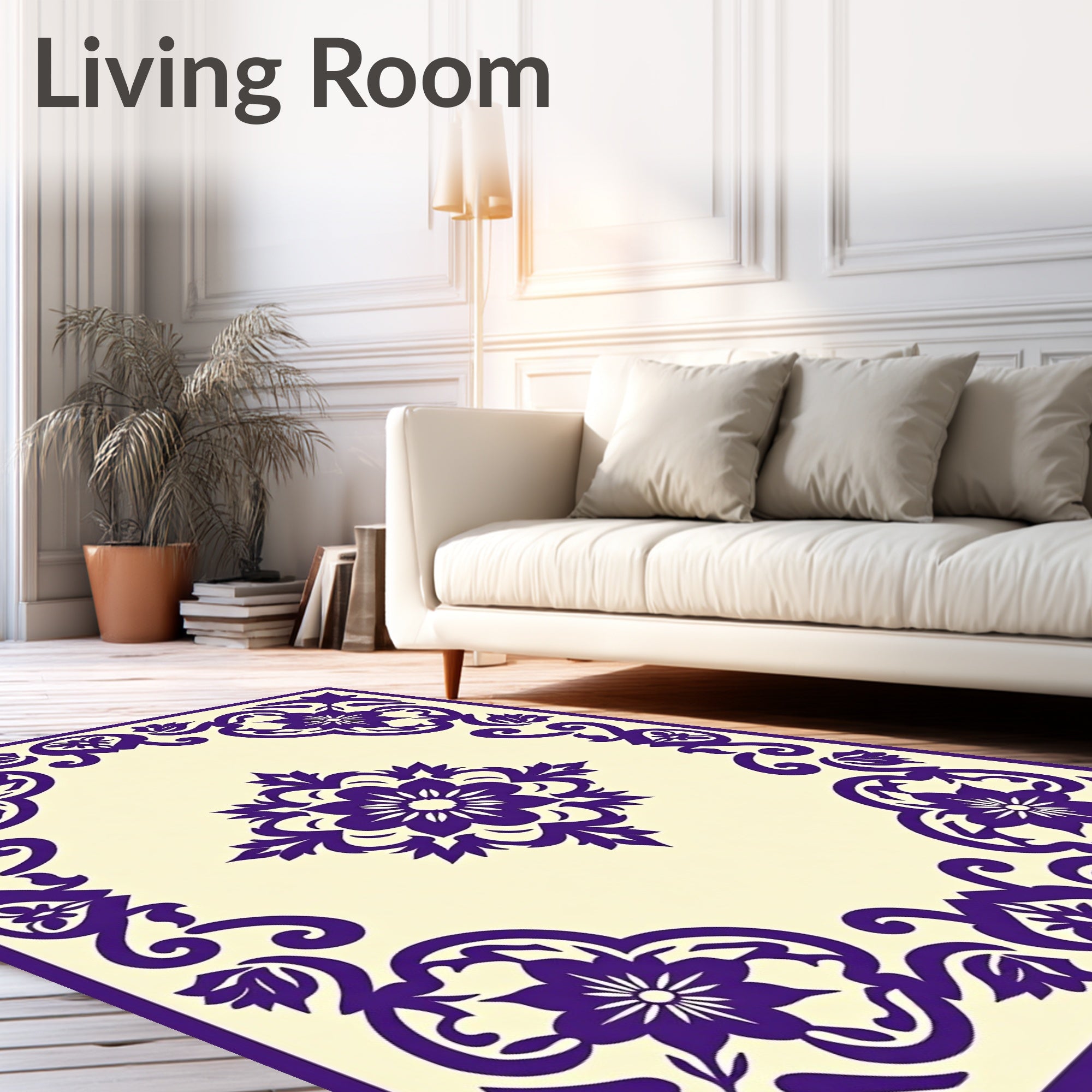 Ultra Soft Area Rug, Non Slip, Stain Resistant, Washable Area Rugs for Living Room, Bedroom, Pastel Plum Medallion with Baroque Inspired Details(Purple) Overview: