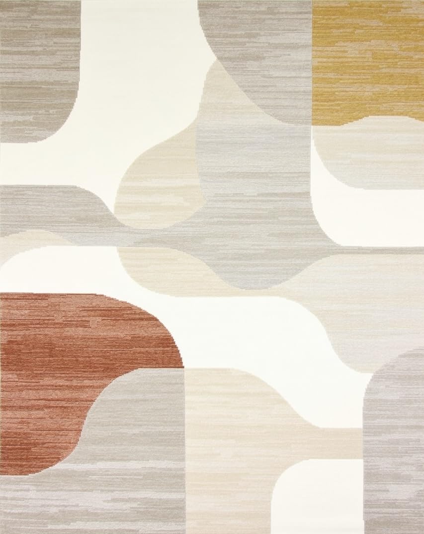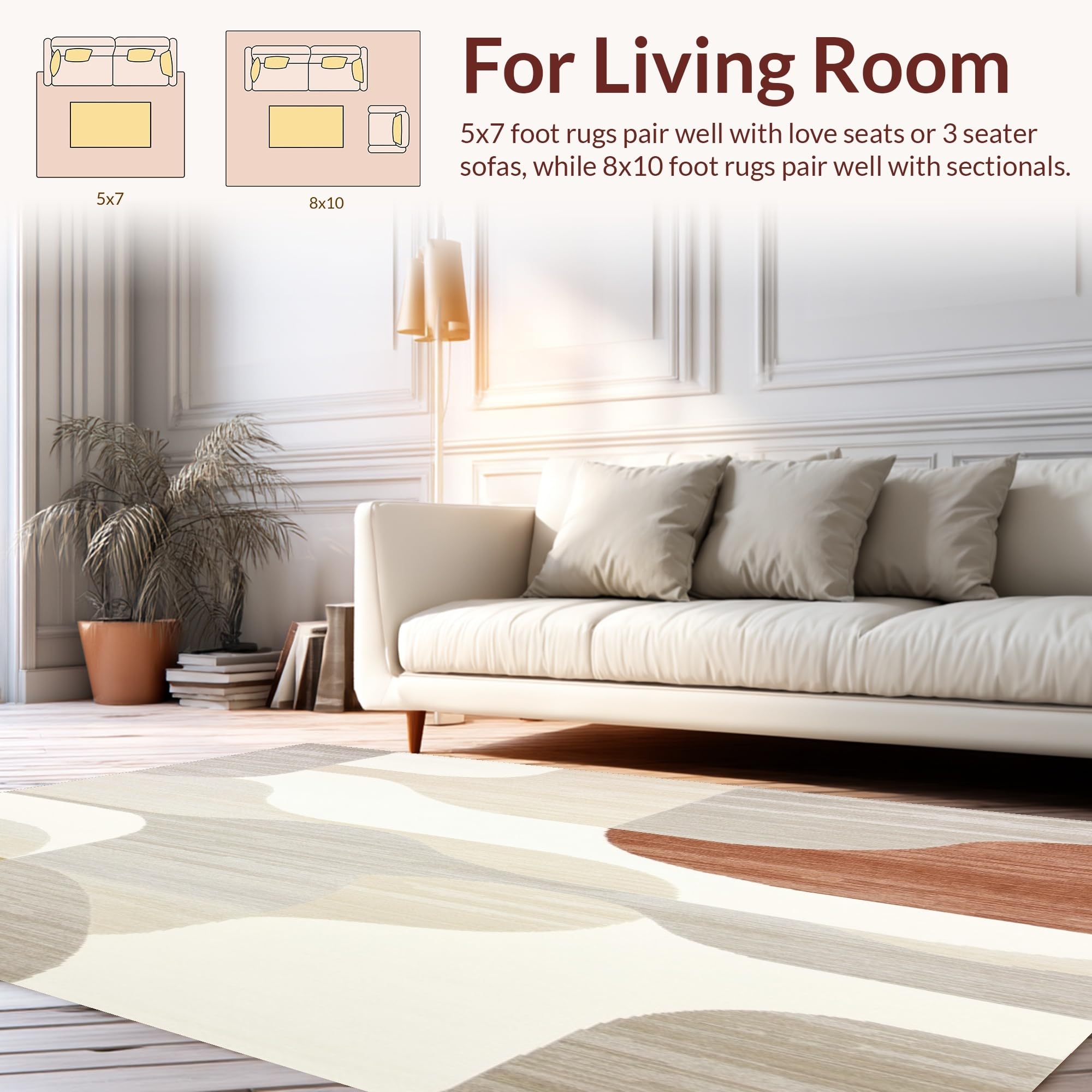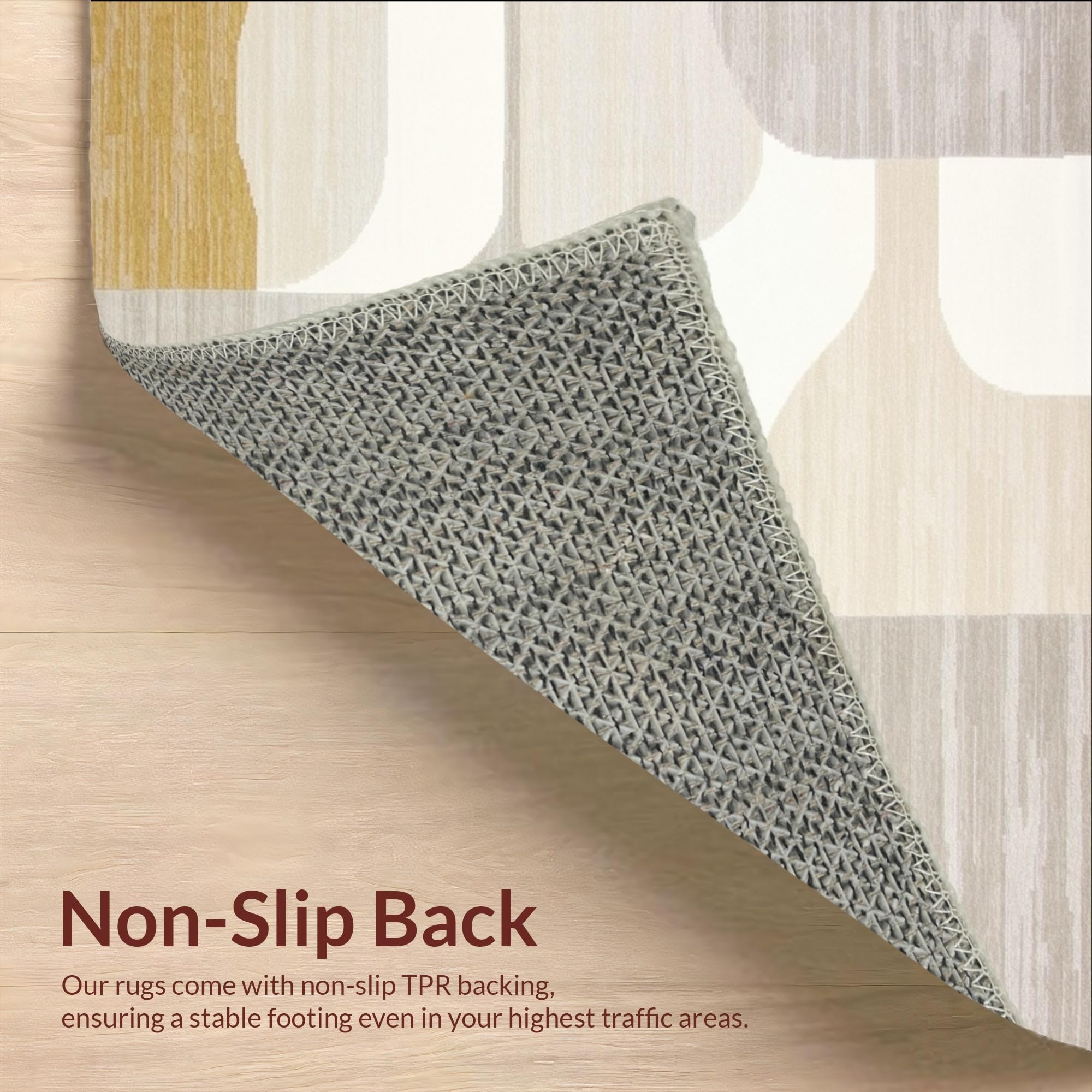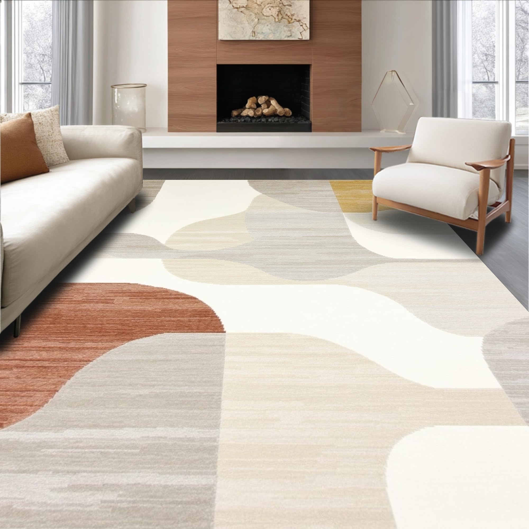 Ultra Soft Area Rug, Non Slip, Stain Resistant, Washable Area Rugs for Living Room, Bedroom, Patio Abstract Beige Design with Weather Resistant Style(Beige) Overview: