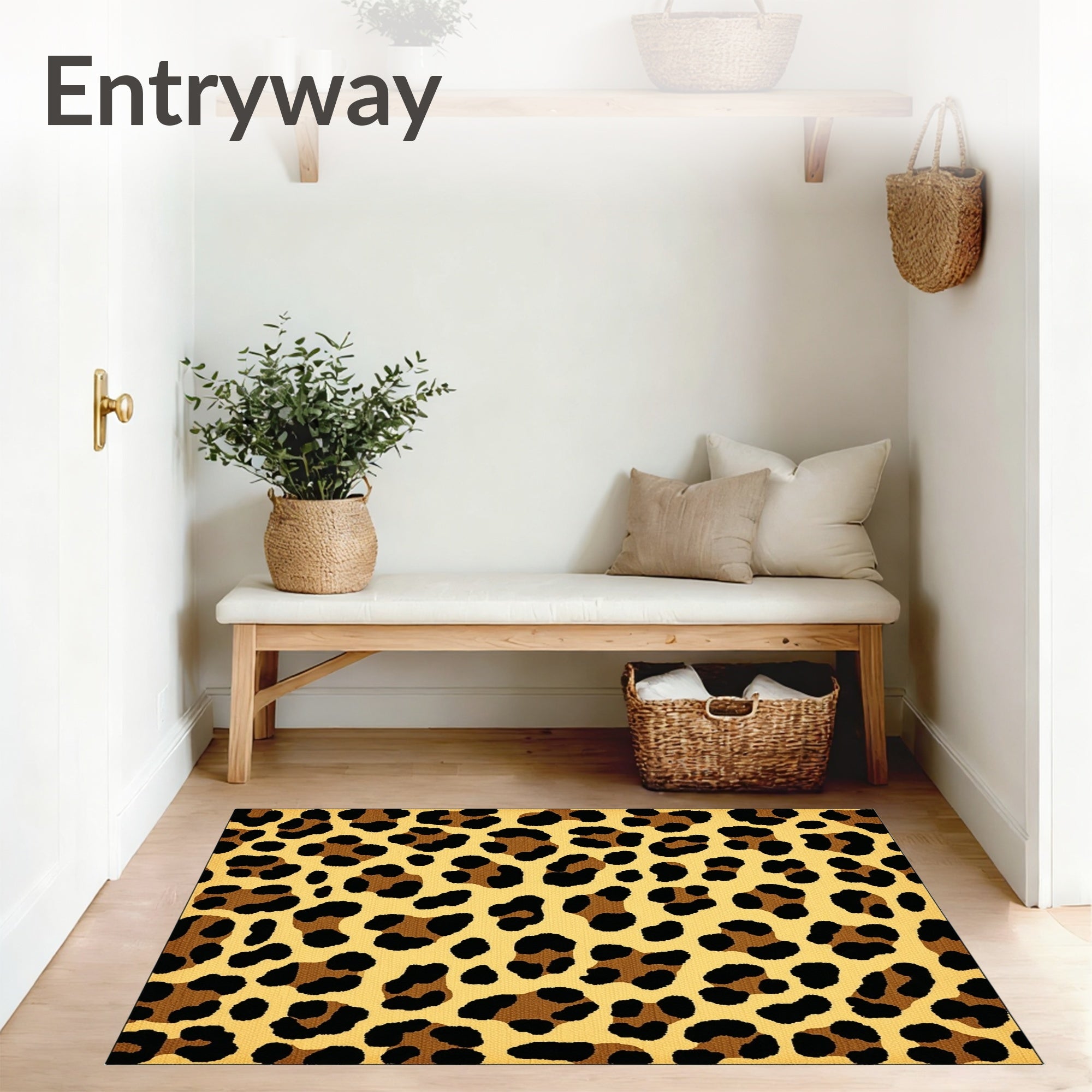 Ultra Soft Area Rug, Non Slip, Stain Resistant, Washable Area Rugs for Living Room, Bedroom, Patio Leopard Print Design Non Shedding(Beige) Overview: