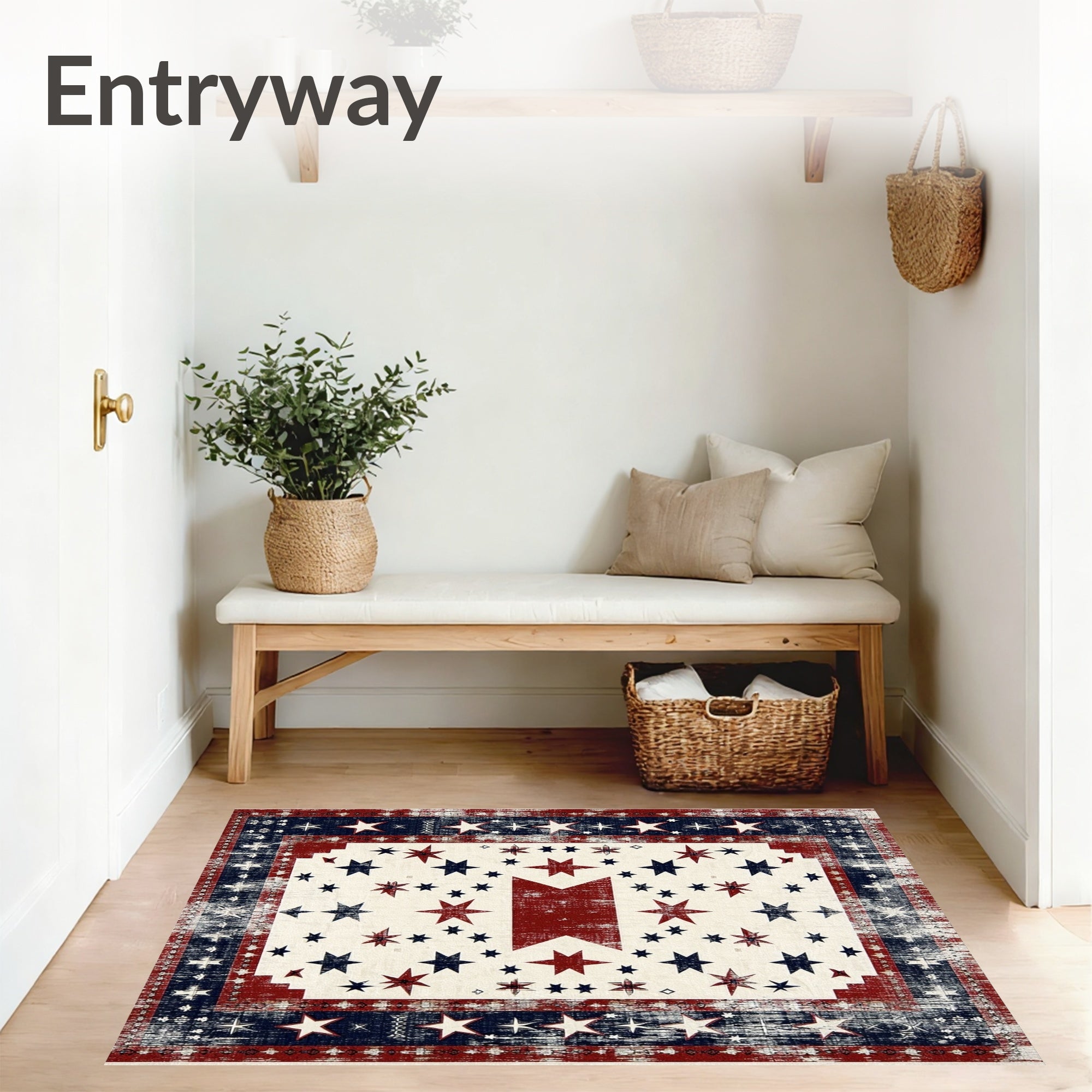 Ultra Soft Area Rug, Non Slip, Stain Resistant, Washable Area Rugs for Living Room, Bedroom, Patriot Frontier Runner Vintage Country Floor(Red) Overview: