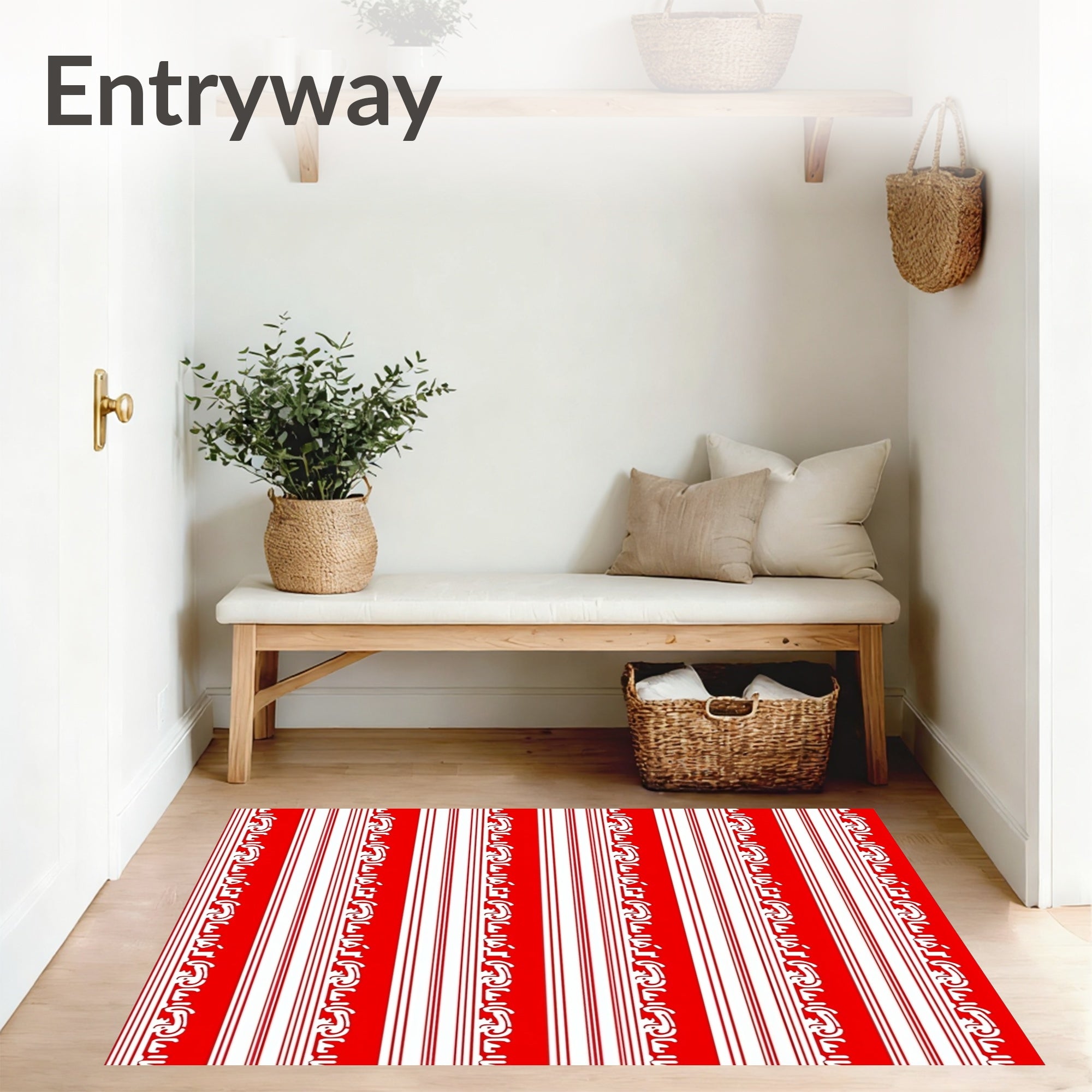 Ultra Soft Area Rug, Non Slip, Stain Resistant, Washable Area Rugs for Living Room, Bedroom, Peppermint Swirl Seasonal Entryway Accent(Red) Overview: