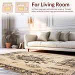 Ultra Soft Area Rug, Non Slip, Stain Resistant, Washable Area Rugs for Living Room, Bedroom, Pet Friendly Boho Floor With Vintage Medallion Motif(Beige) Overview: