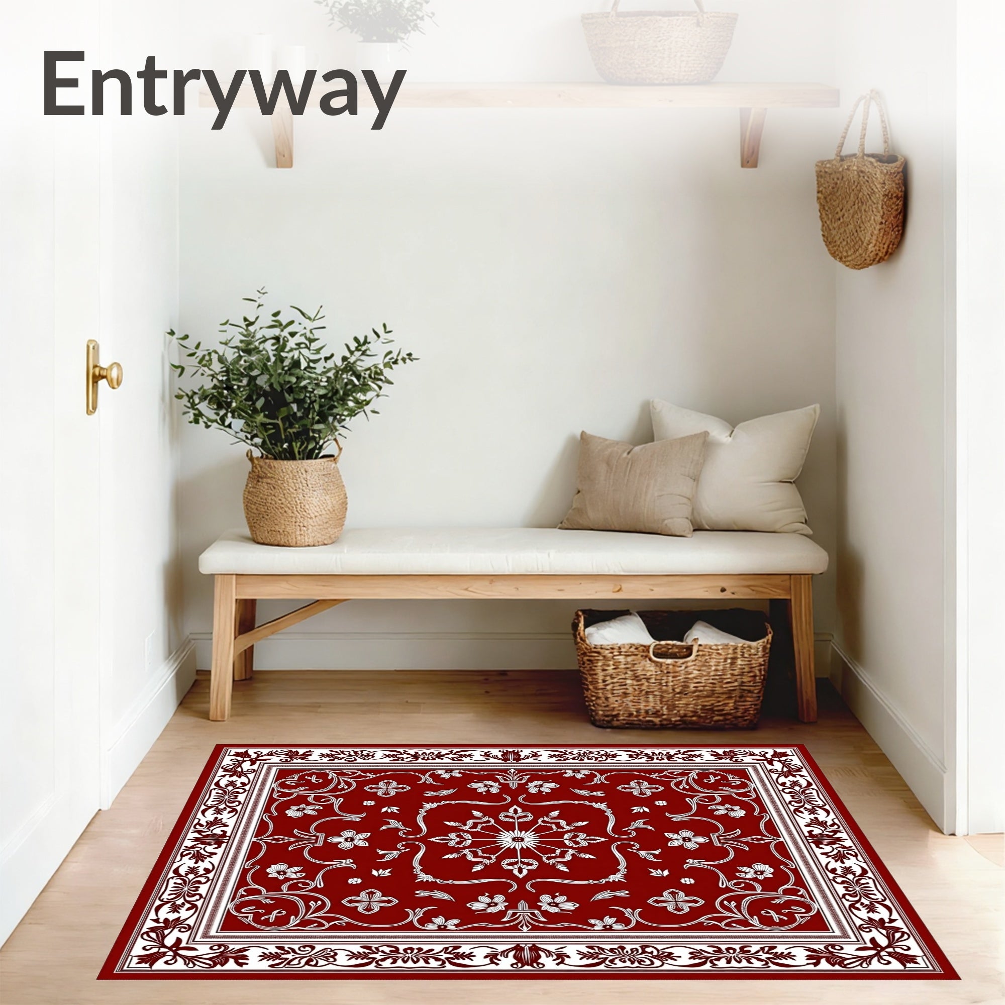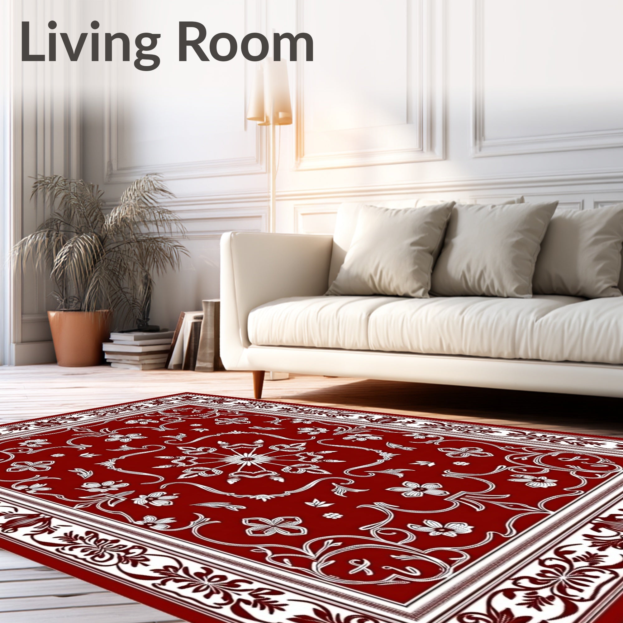 Ultra Soft Area Rug, Non Slip, Stain Resistant, Washable Area Rugs for Living Room, Bedroom, Petal Intricate Stylized Luxury(Red) Overview: