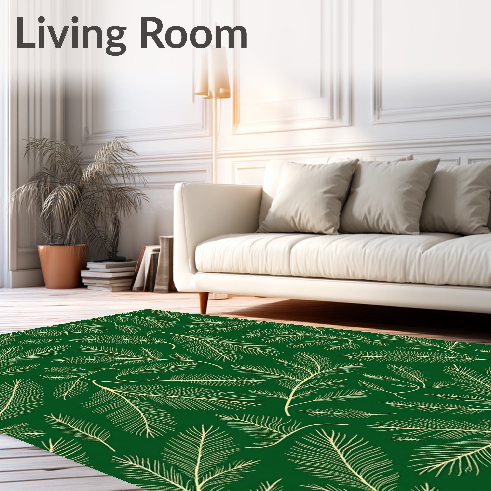 Ultra Soft Area Rug, Non Slip, Stain Resistant, Washable Area Rugs for Living Room, Bedroom, Pine Bough Area with Evergreen Swag(Green) Overview:
