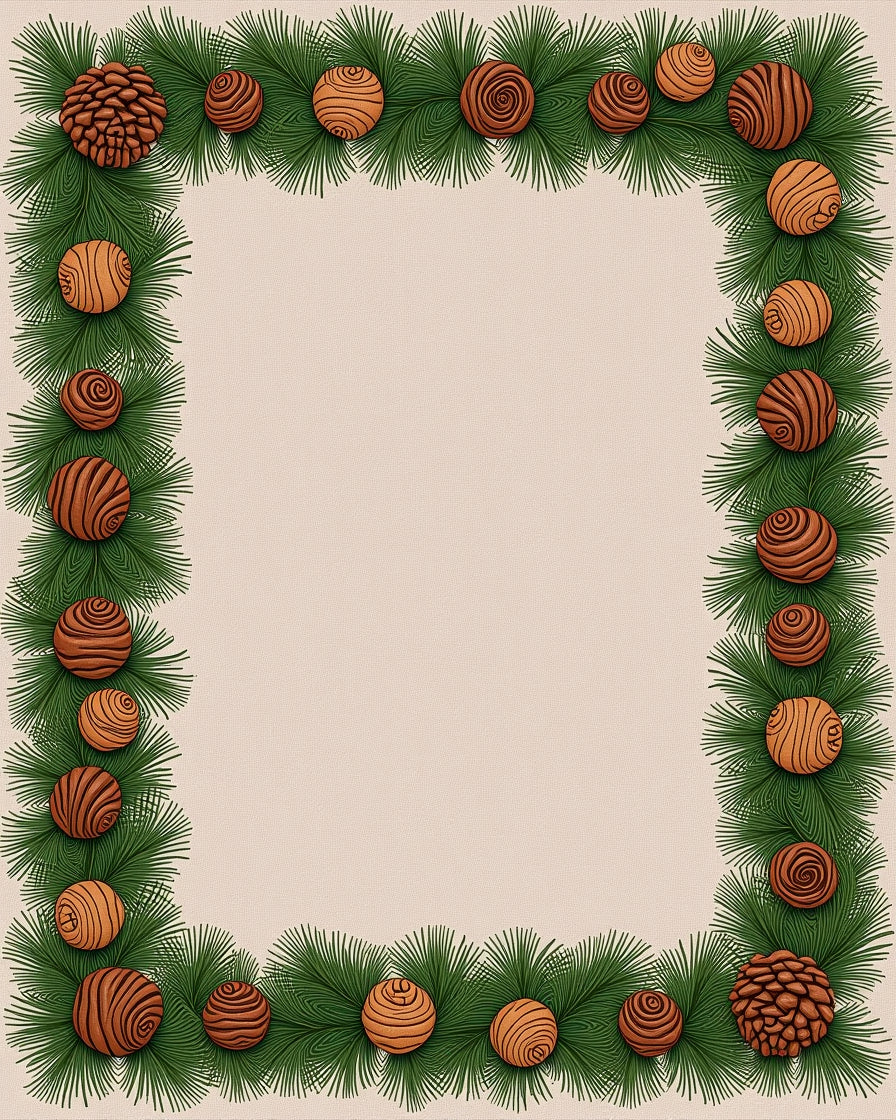 Pine Cone Doormat with Evergreen Branch Border(Green)